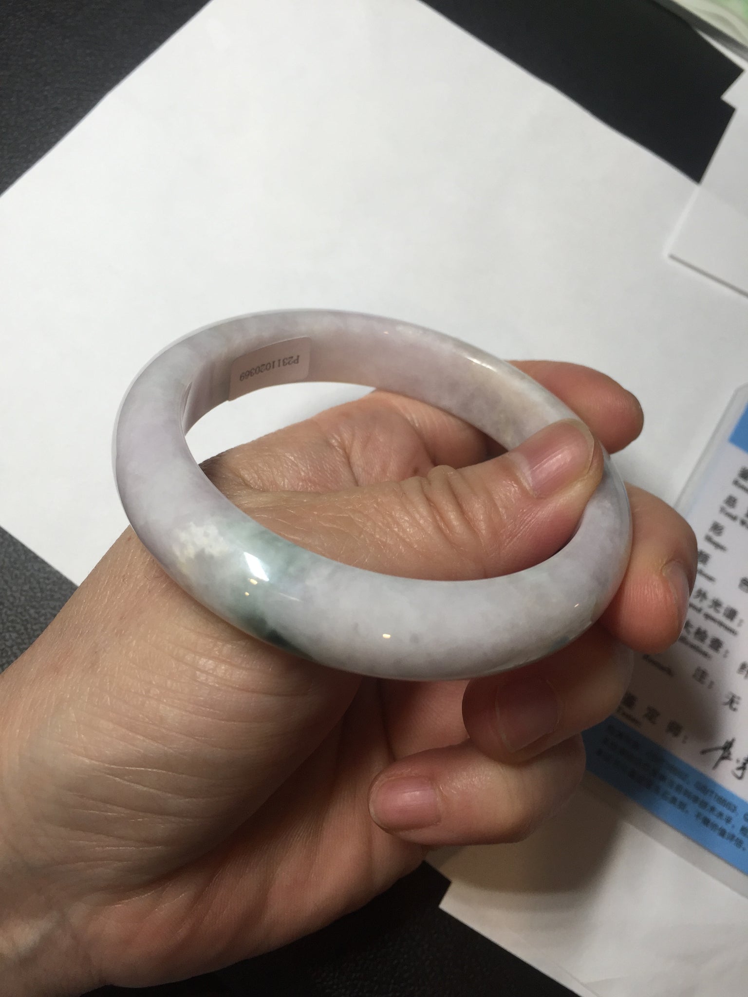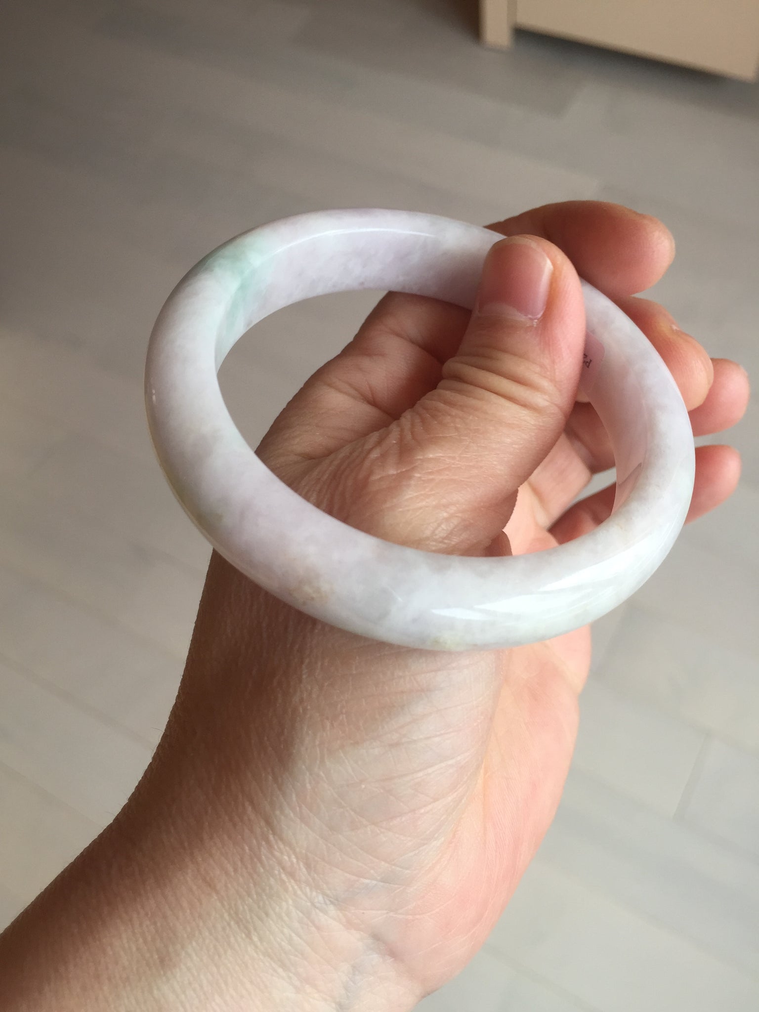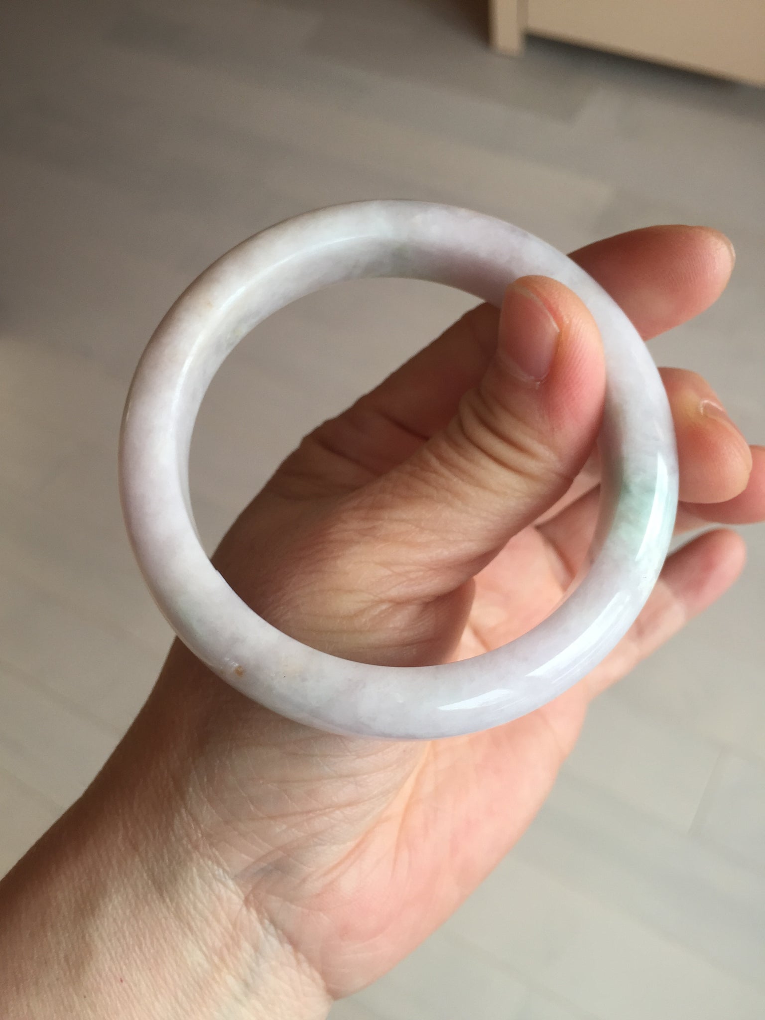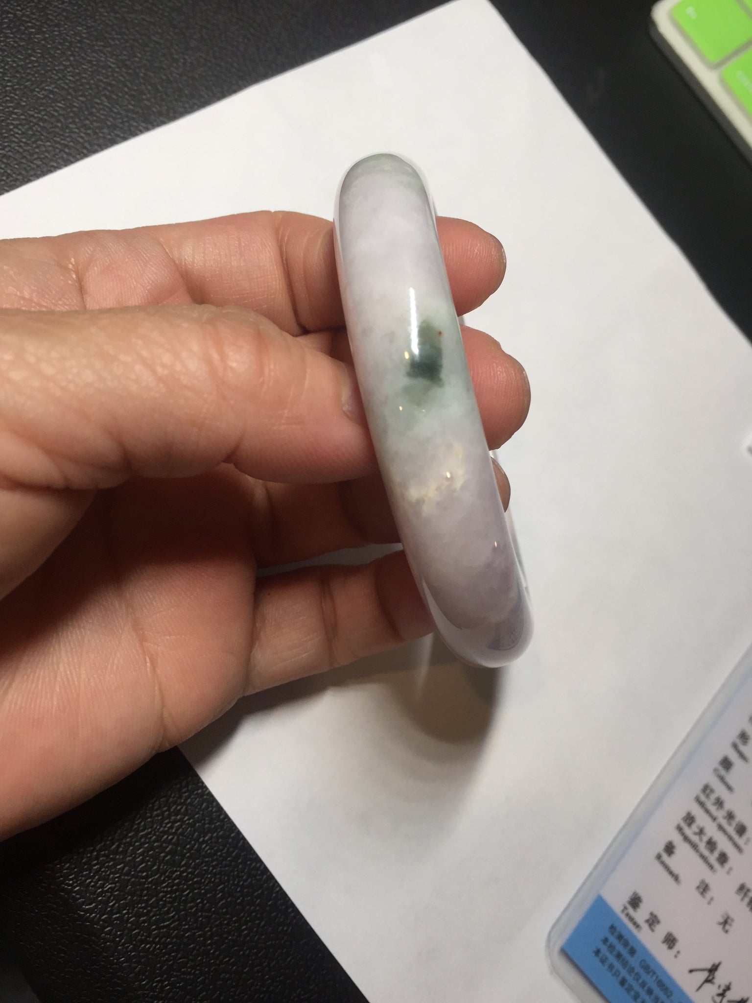 57.5mm Certified Type A 100% Natural sunny green/white/purple Jadeite Jade bangle BL5-0369