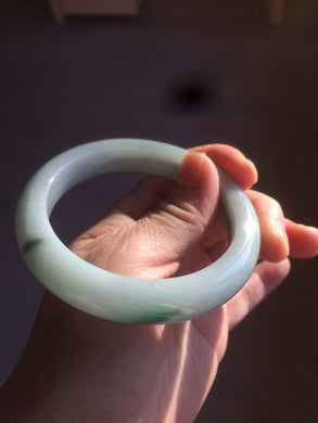 58.4mm certified Type A 100% Natural light green white Jadeite Jade bangle AF90-2939