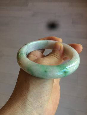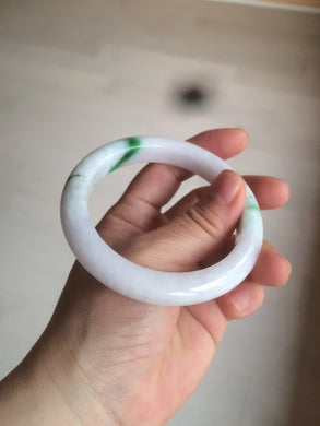 58mm Certified Type A 100% Natural green/white Jadeite Jade bangle AX79-4354