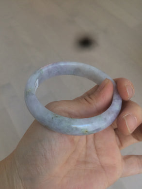 57.4mm certified Type A 100% Natural light green/purple/gray Jadeite Jade bangle AM39-0734