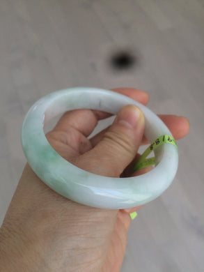 57.7mm certificated type A 100% Natural light green/white Jadeite Jade bangle AB54-0003
