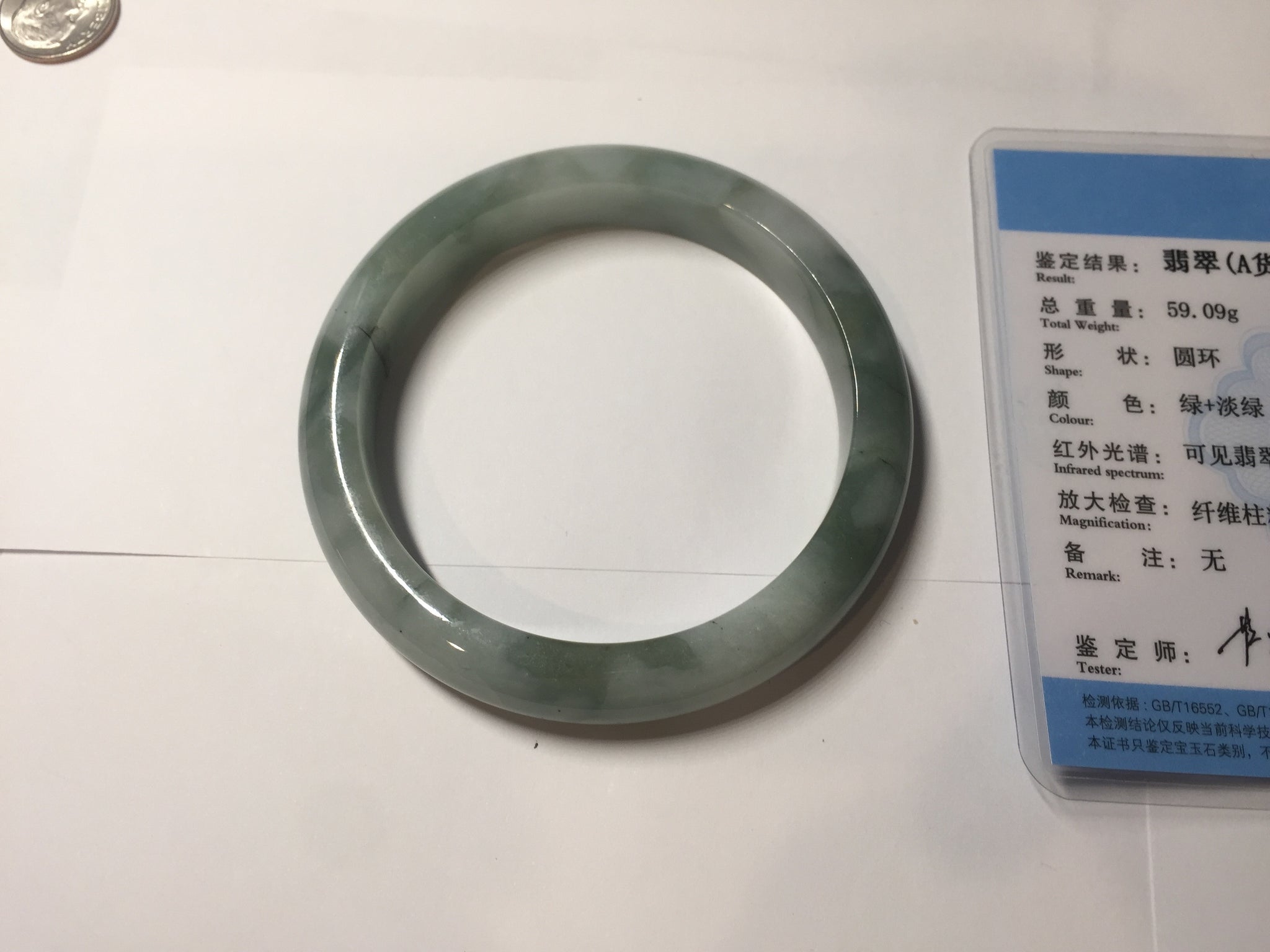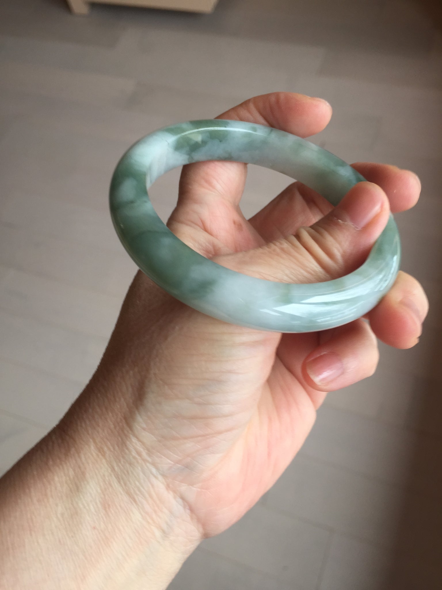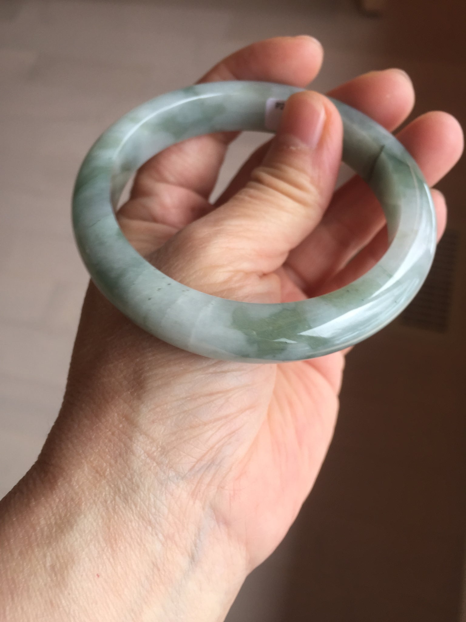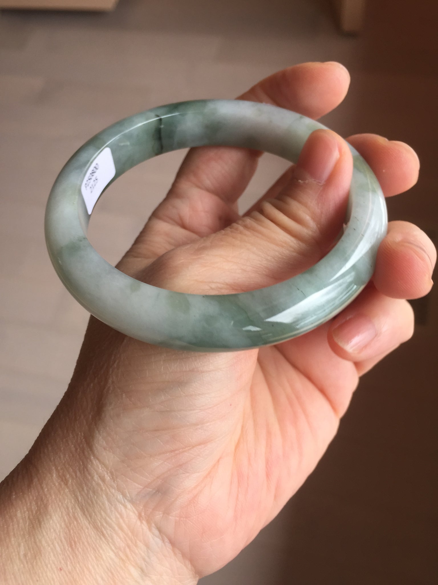 One color root crack. The bangle is solid(Guaranteed). Makes high pitch sound when tapped. It connected to a cotton line with black rough spots on the other side. But this is not an around the bangle crack. Some hairlines. Some black color roots. Some black small rough surfaces. Some cotton lines, cotton areas, and cotton spots.