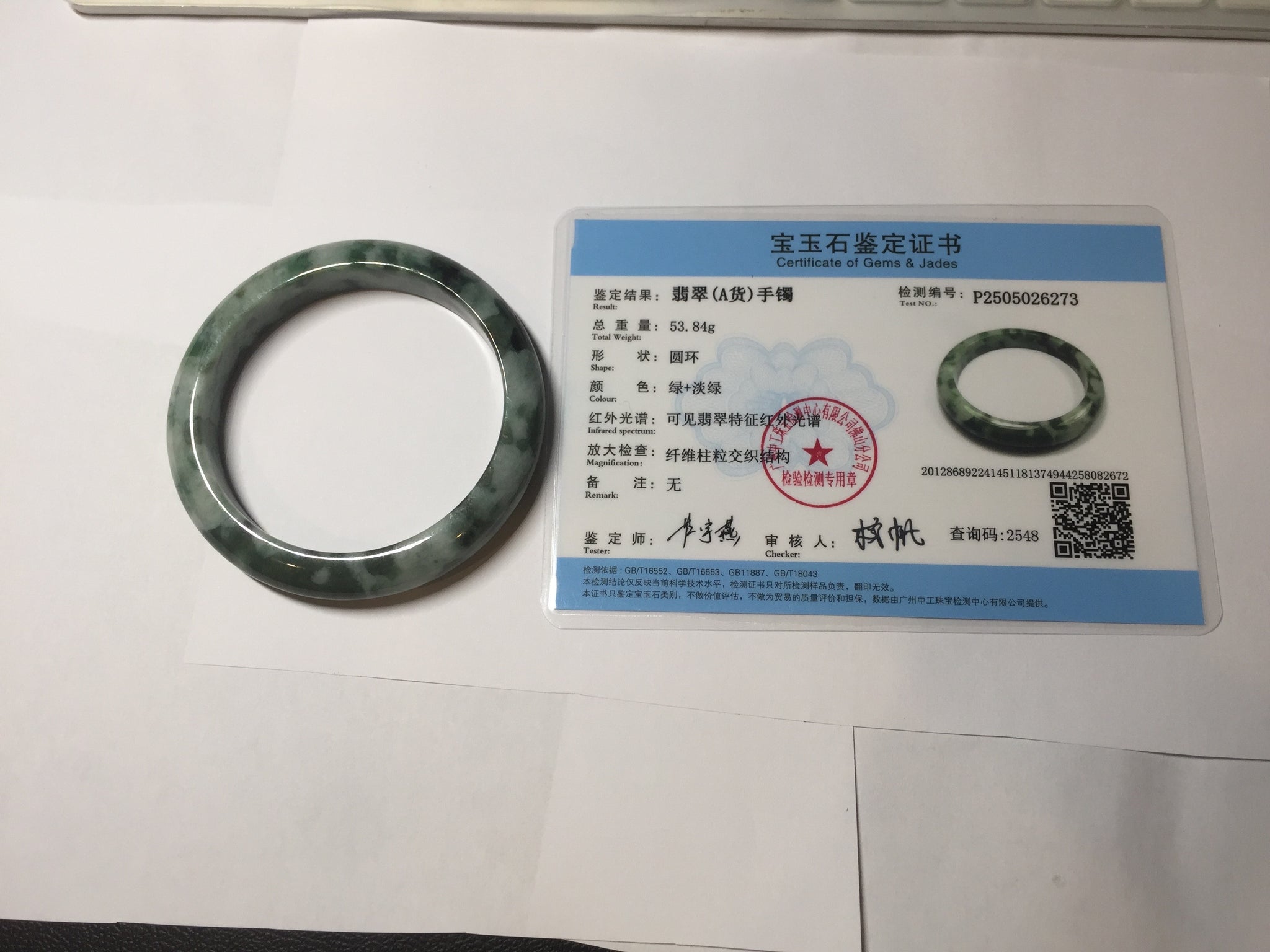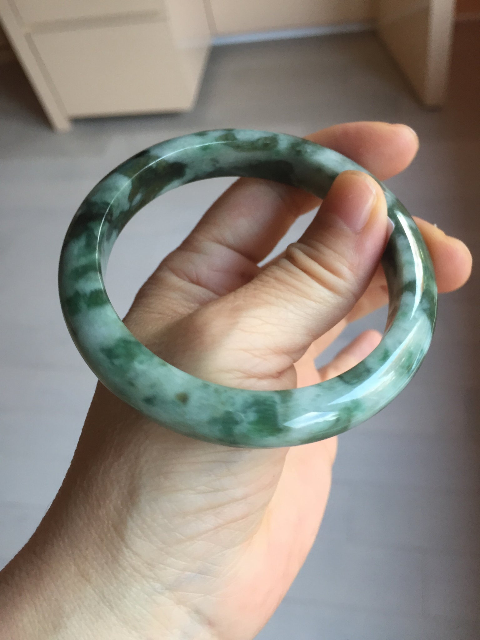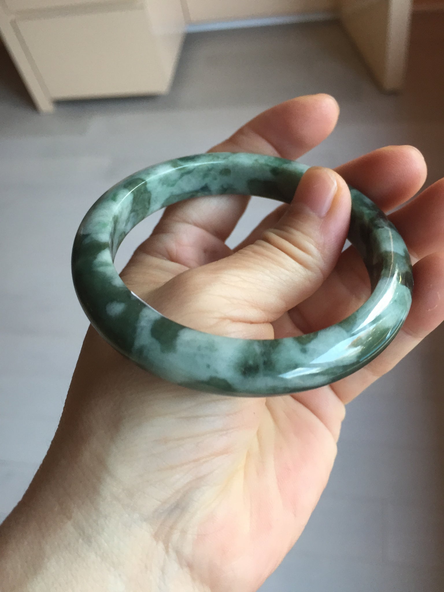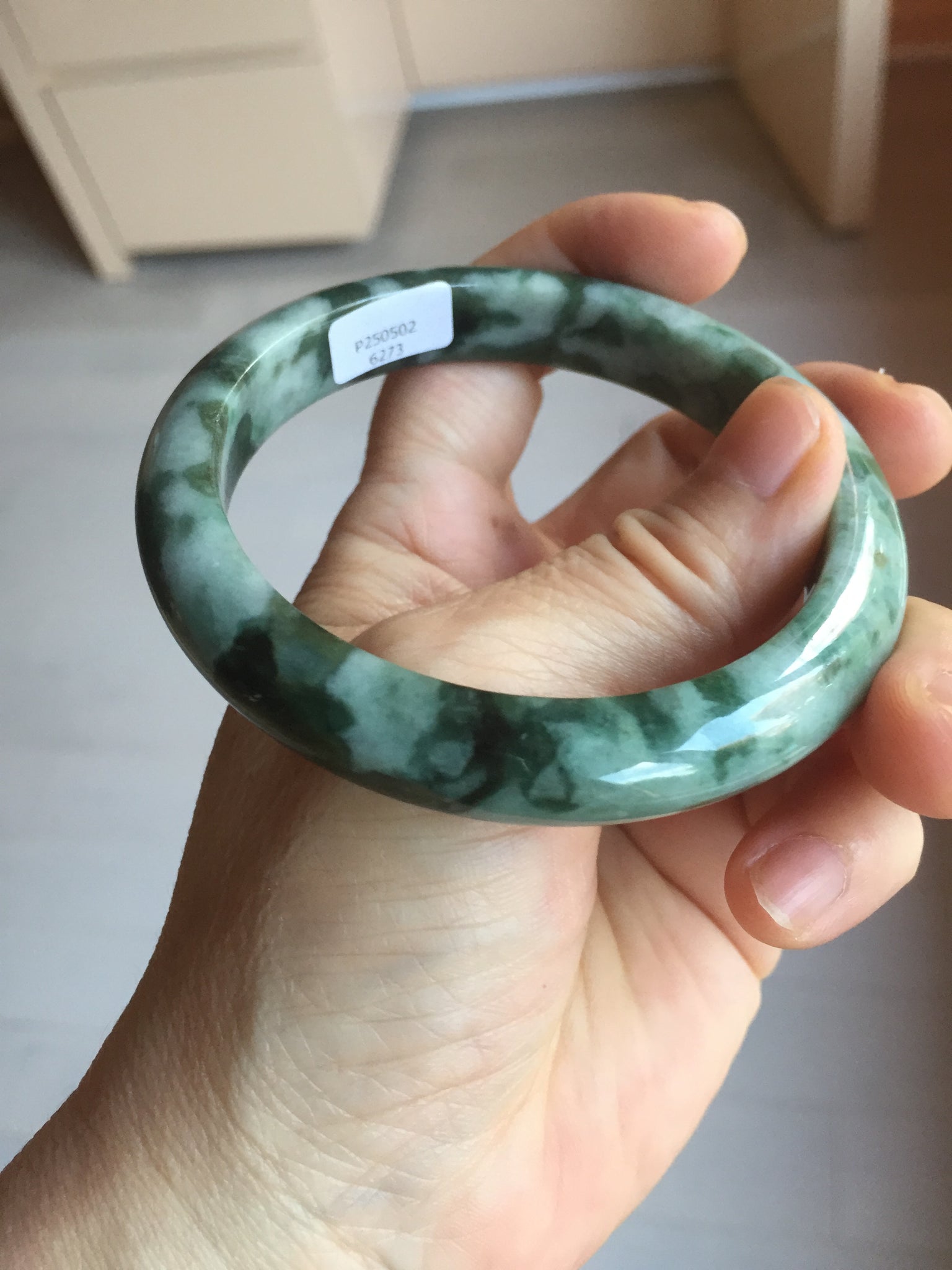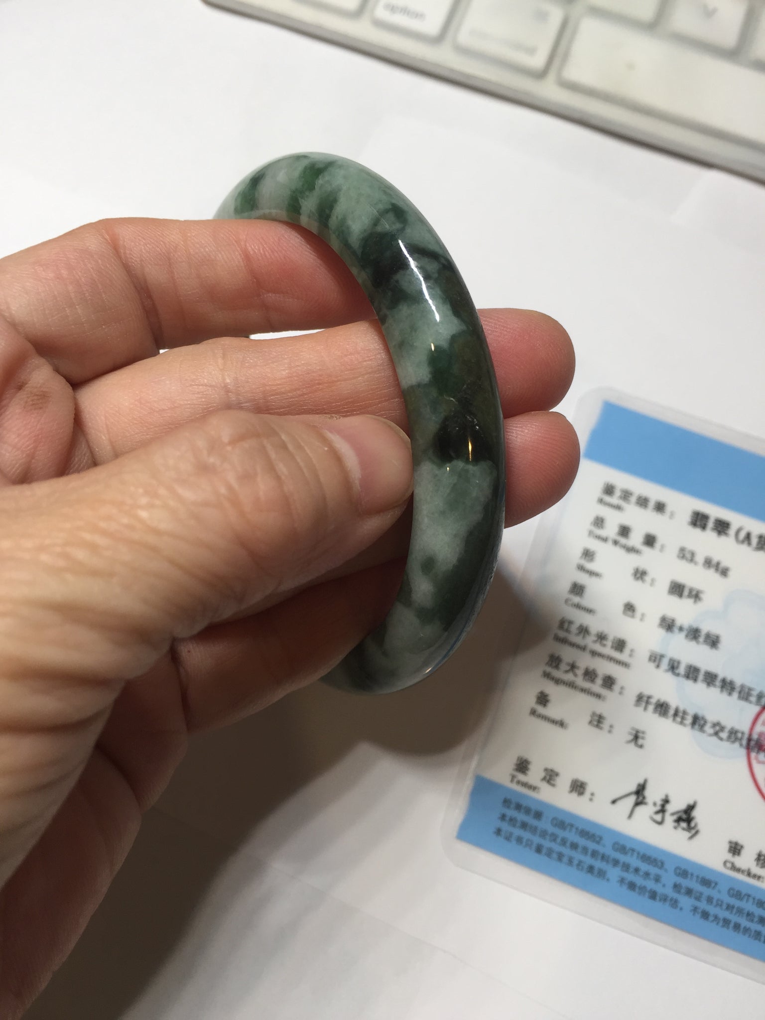 59.5mm Certified Type A 100% Natural dark green gray black camouflage color Jadeite bangle PD139-6273