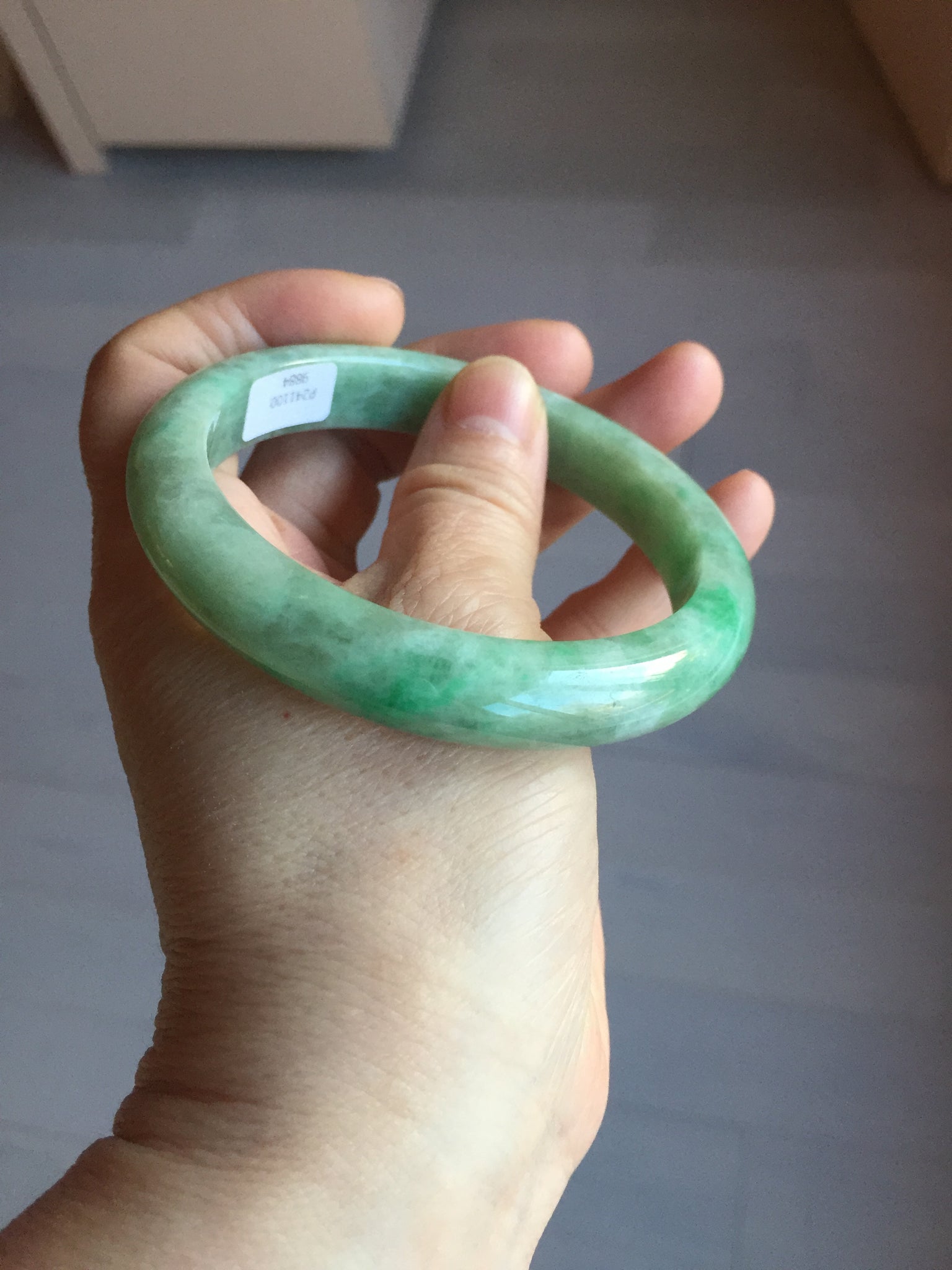 60mm Certified Type A 100% Natural sunny green gray Jadeite Jade bangle BG233-9884