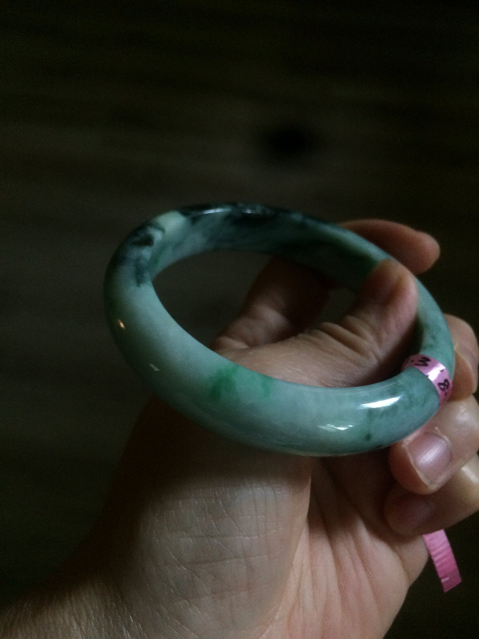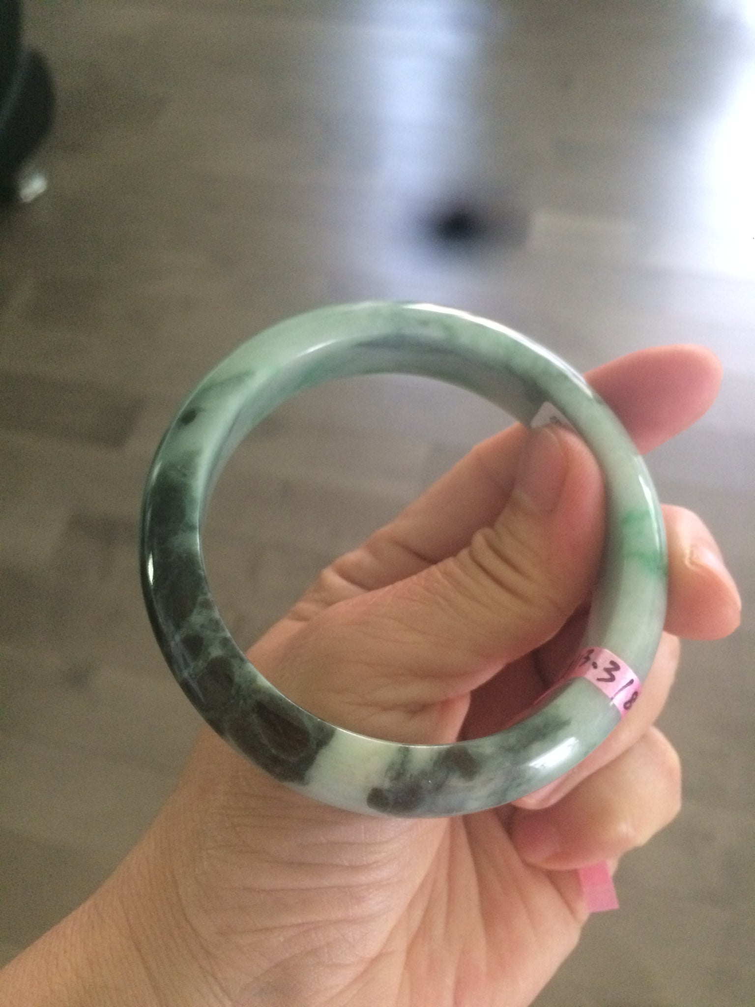 58mm certified type A 100% Natural sunny green/dark green jadeite jade bangle U57-0102