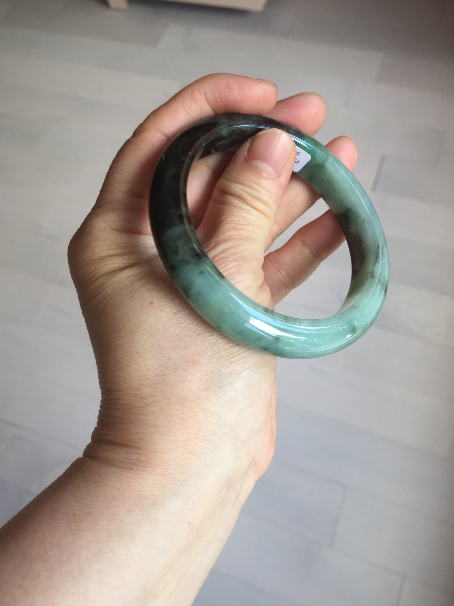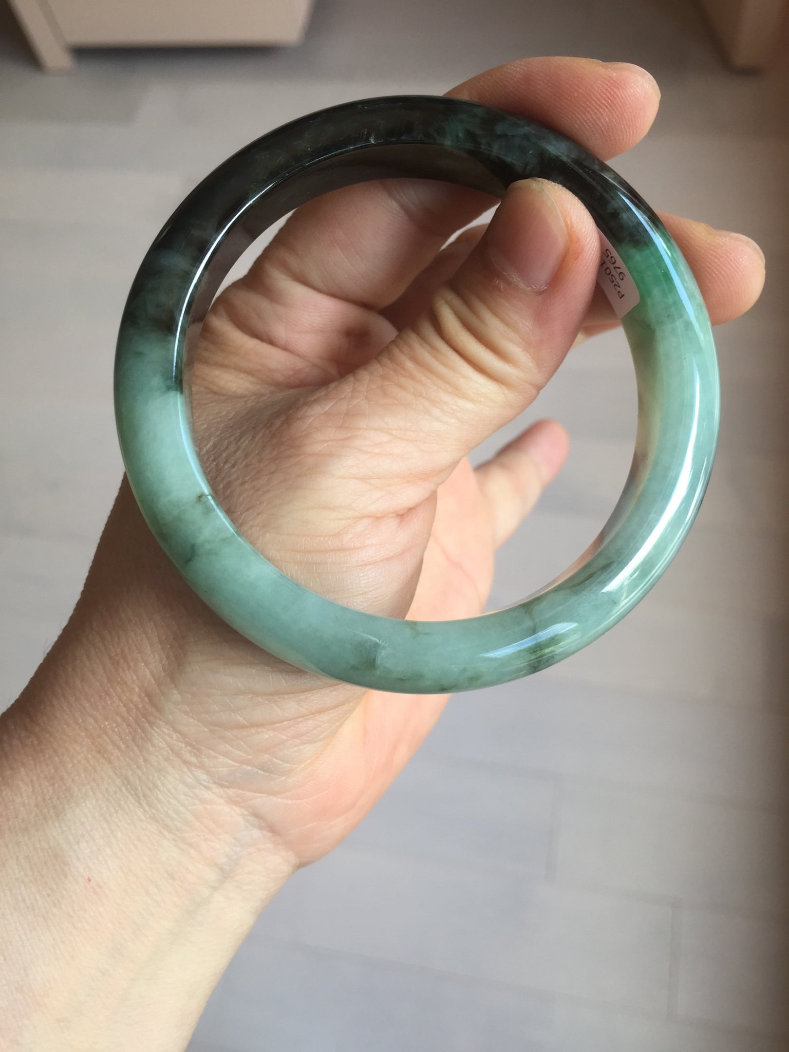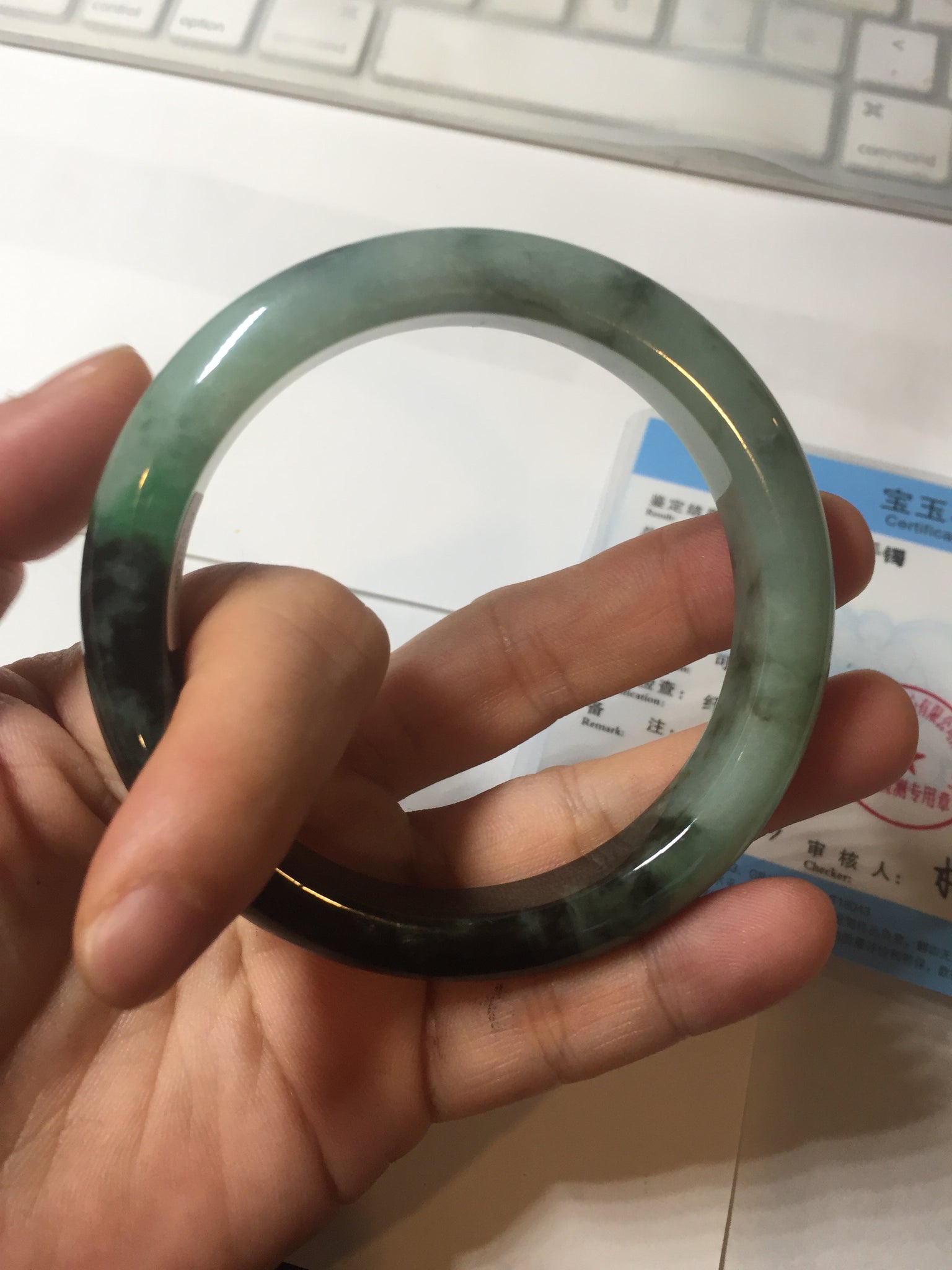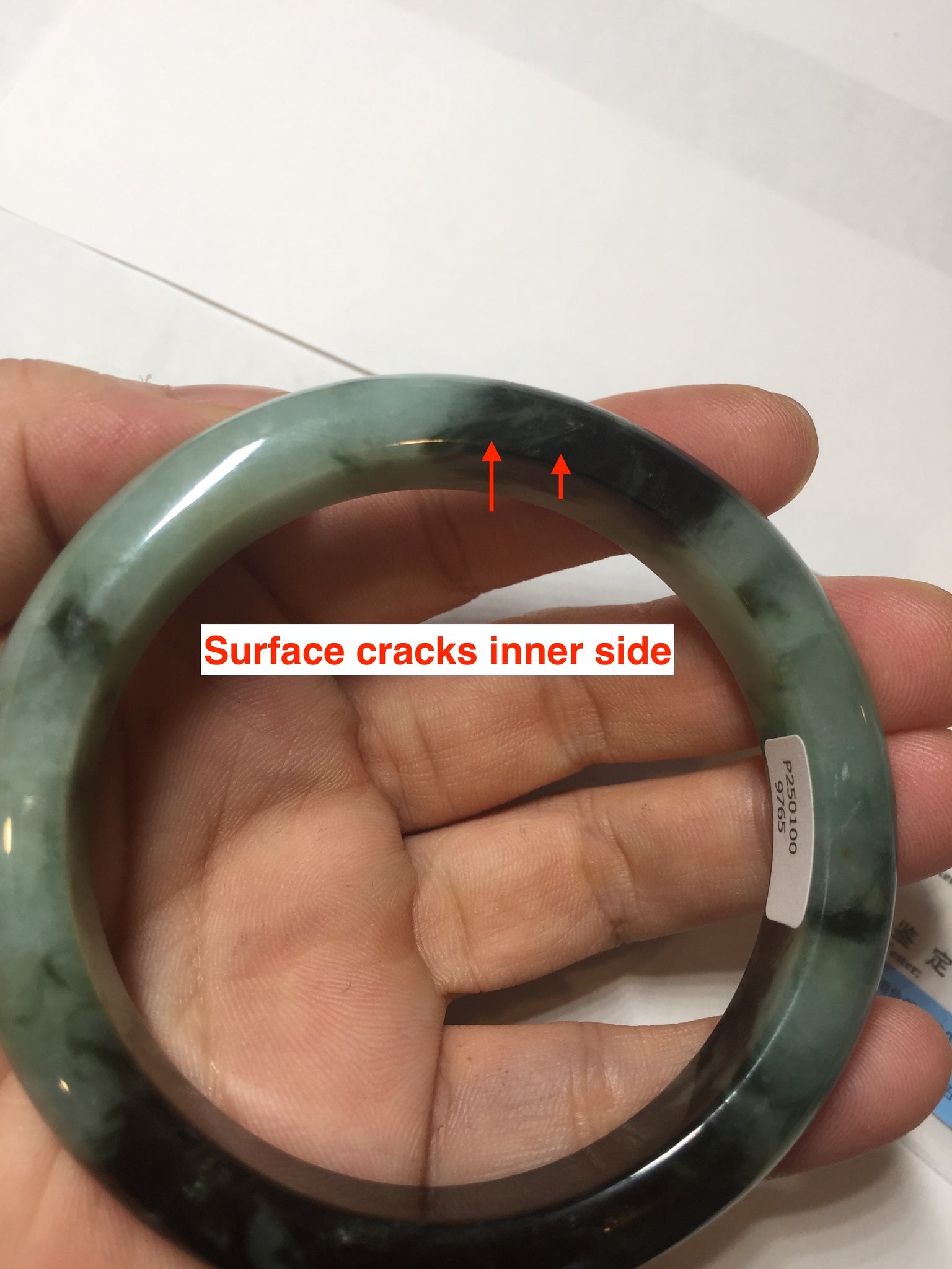 Imperfections: Some surface cracks. The bangle is solid (Guaranteed!). Some color roots, cotton lines, cotton areas and cotton spots. Not transparent. The sunny green area is just a small area.