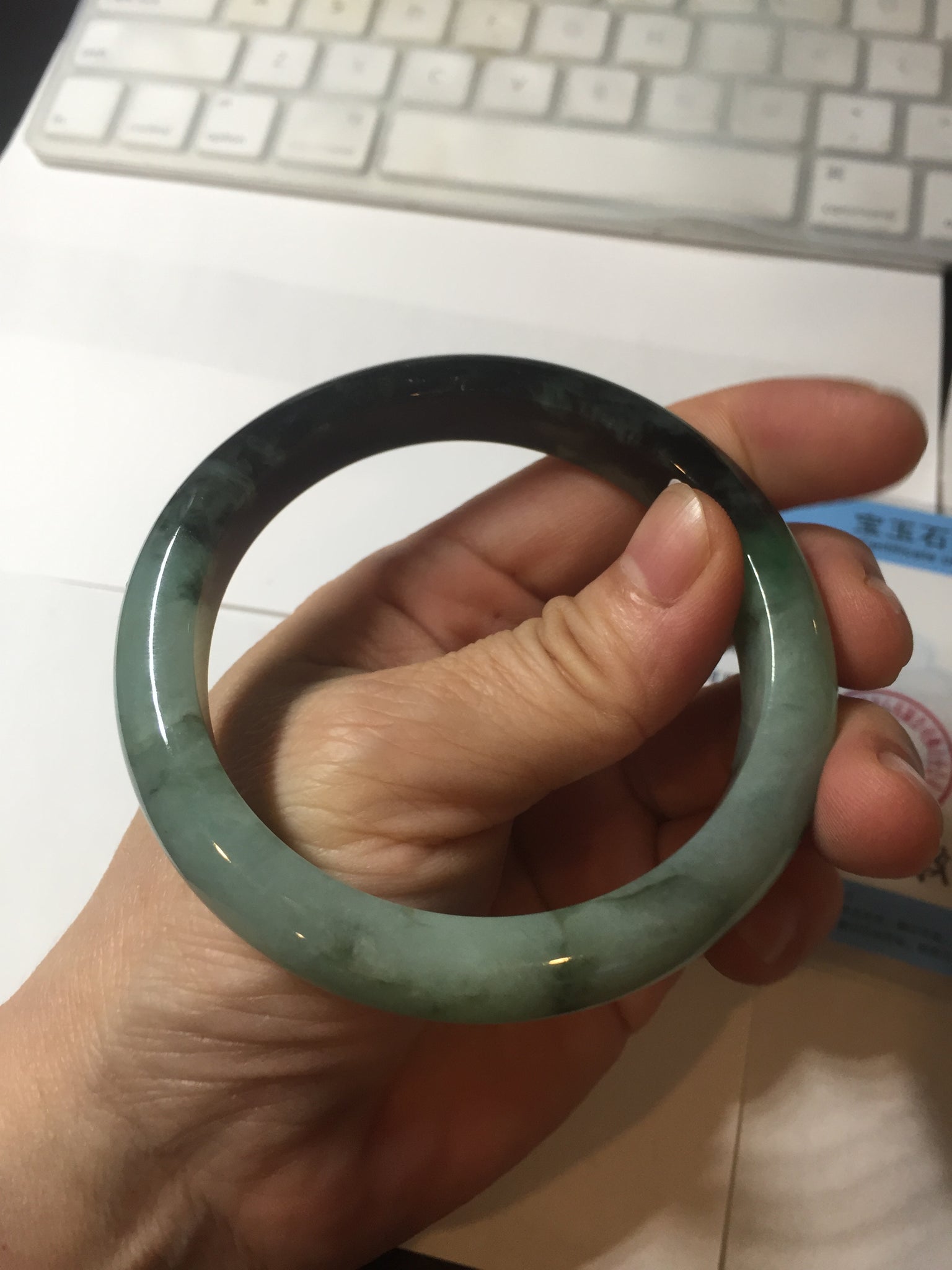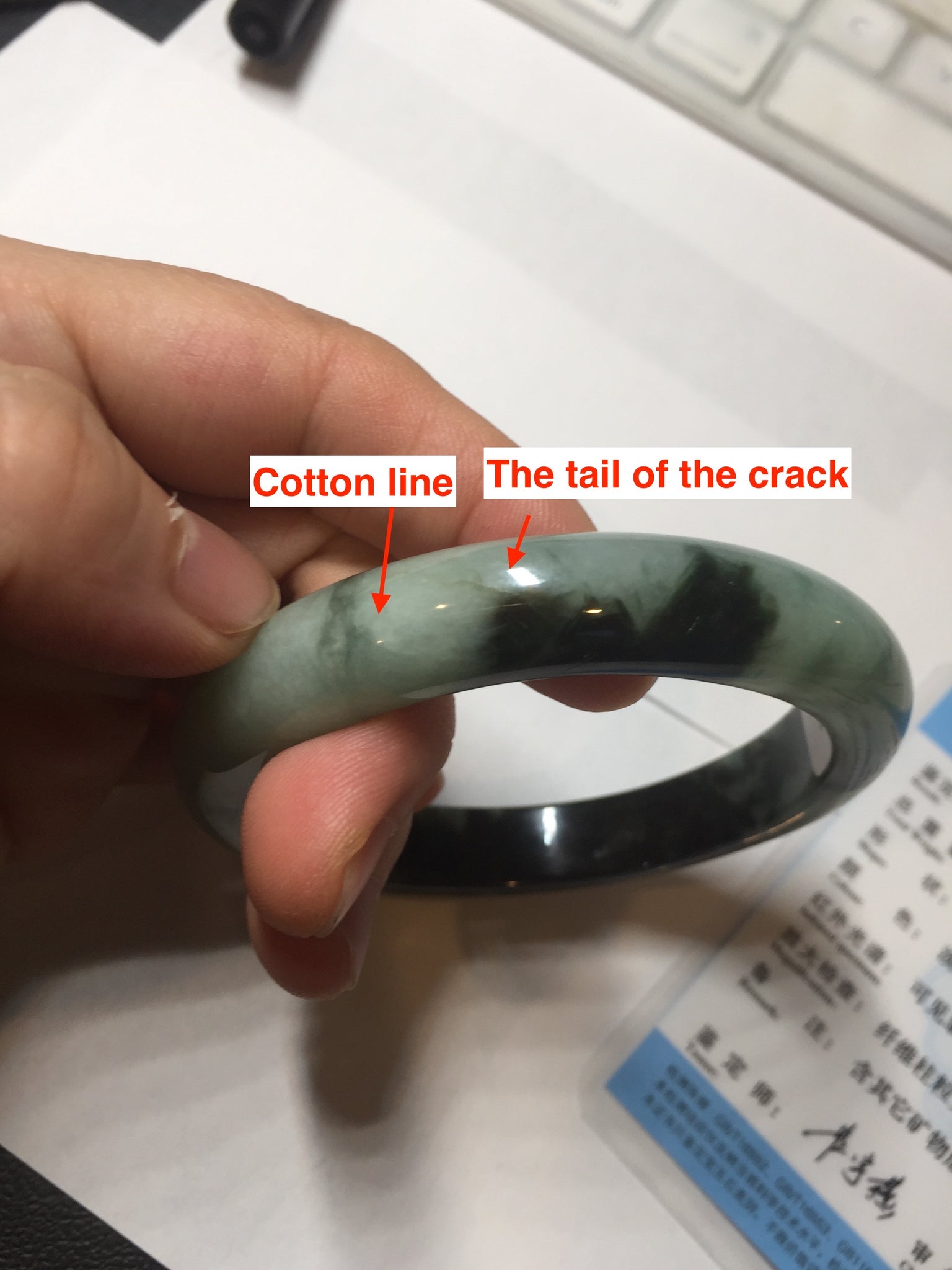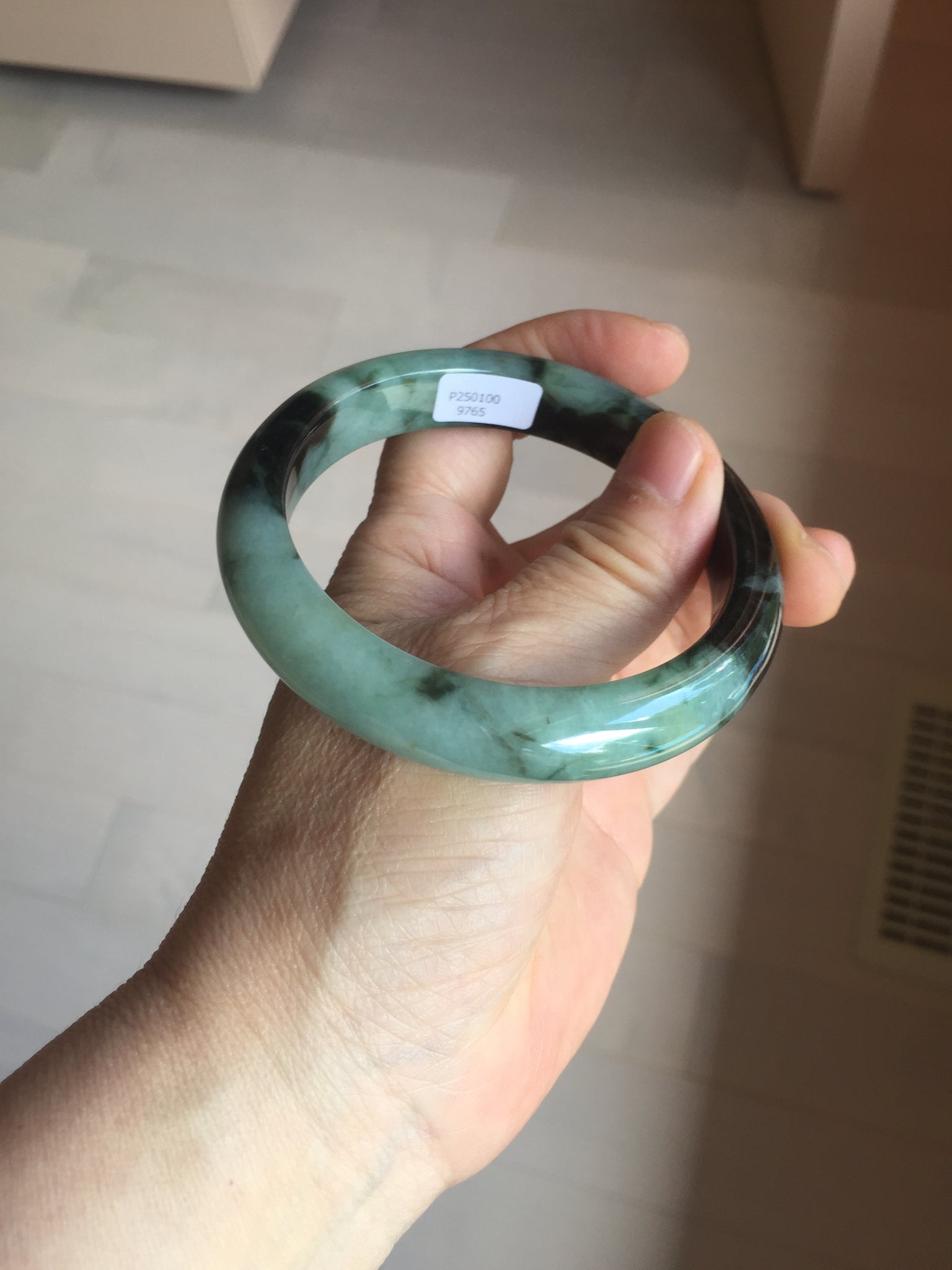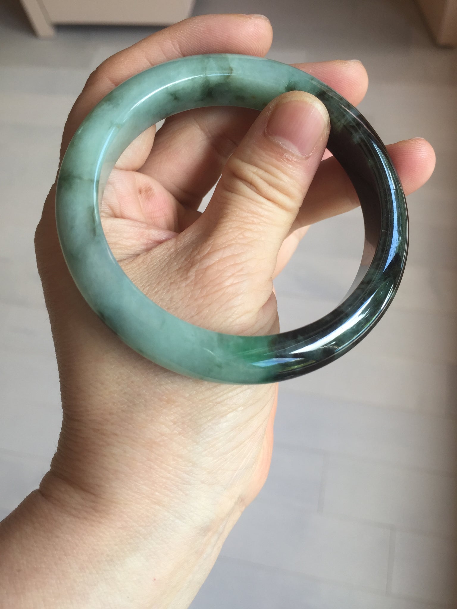 Imperfections: Some surface cracks. The bangle is solid (Guaranteed!). Some color roots, cotton lines, cotton areas and cotton spots. Not transparent. The sunny green area is just a small area.