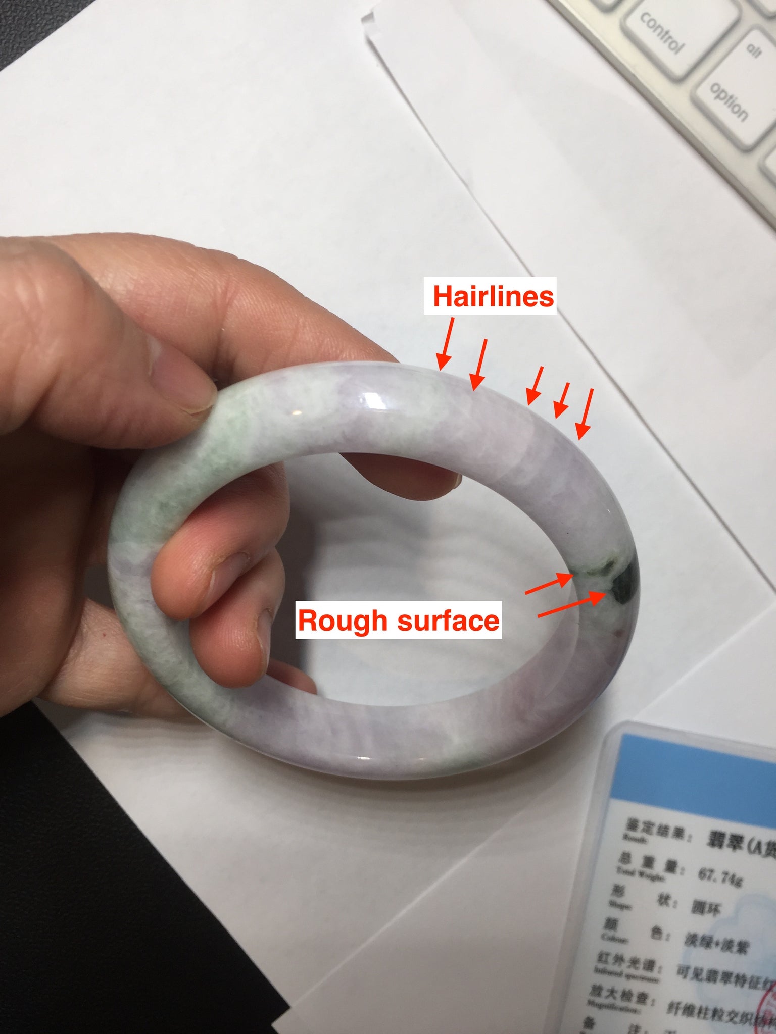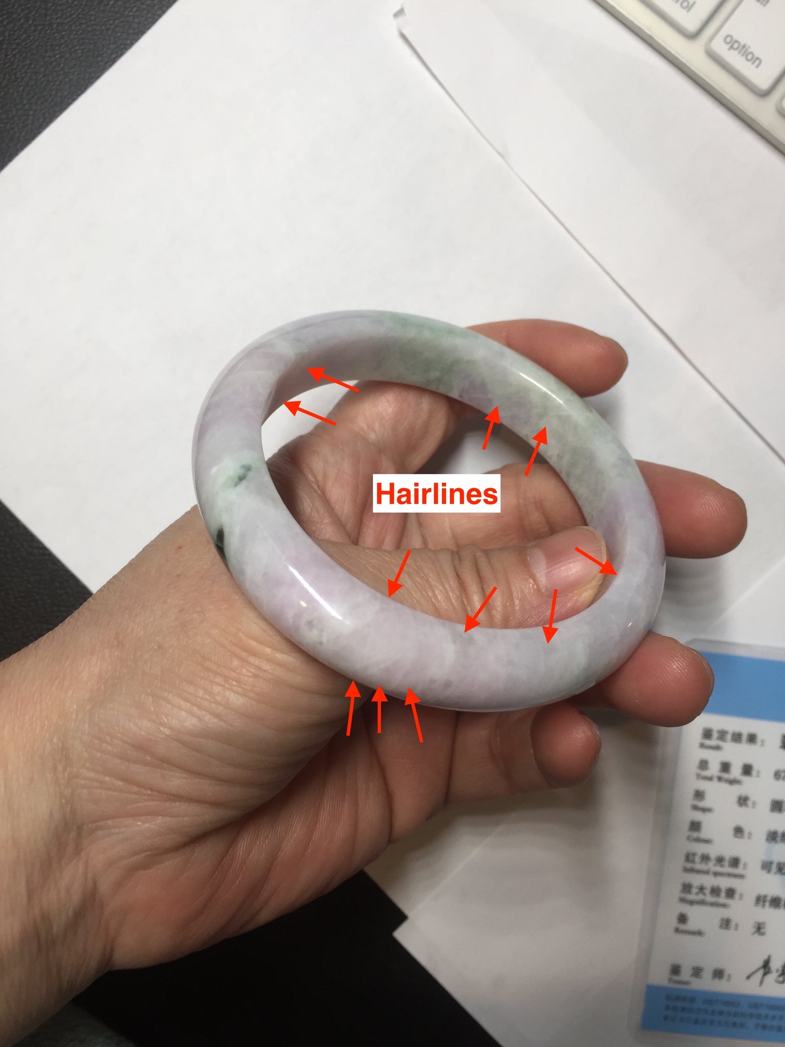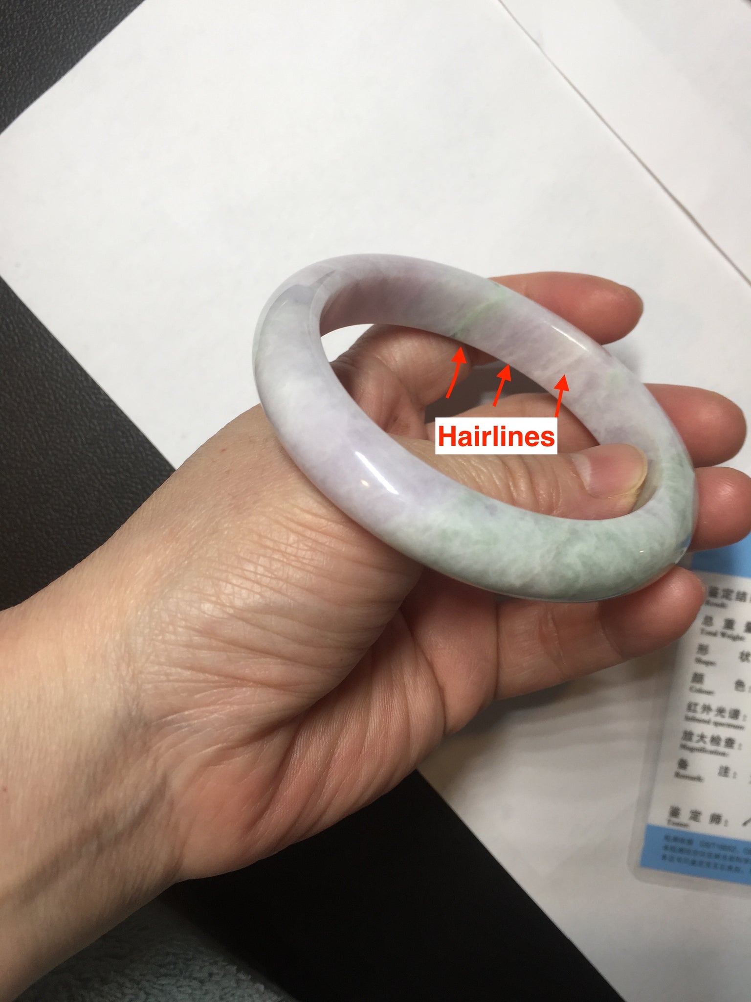 Jade root, or hairline root, and are not considered cracks. A crack is considered to be a crack you can feel that runs up and down the width of the bangle.