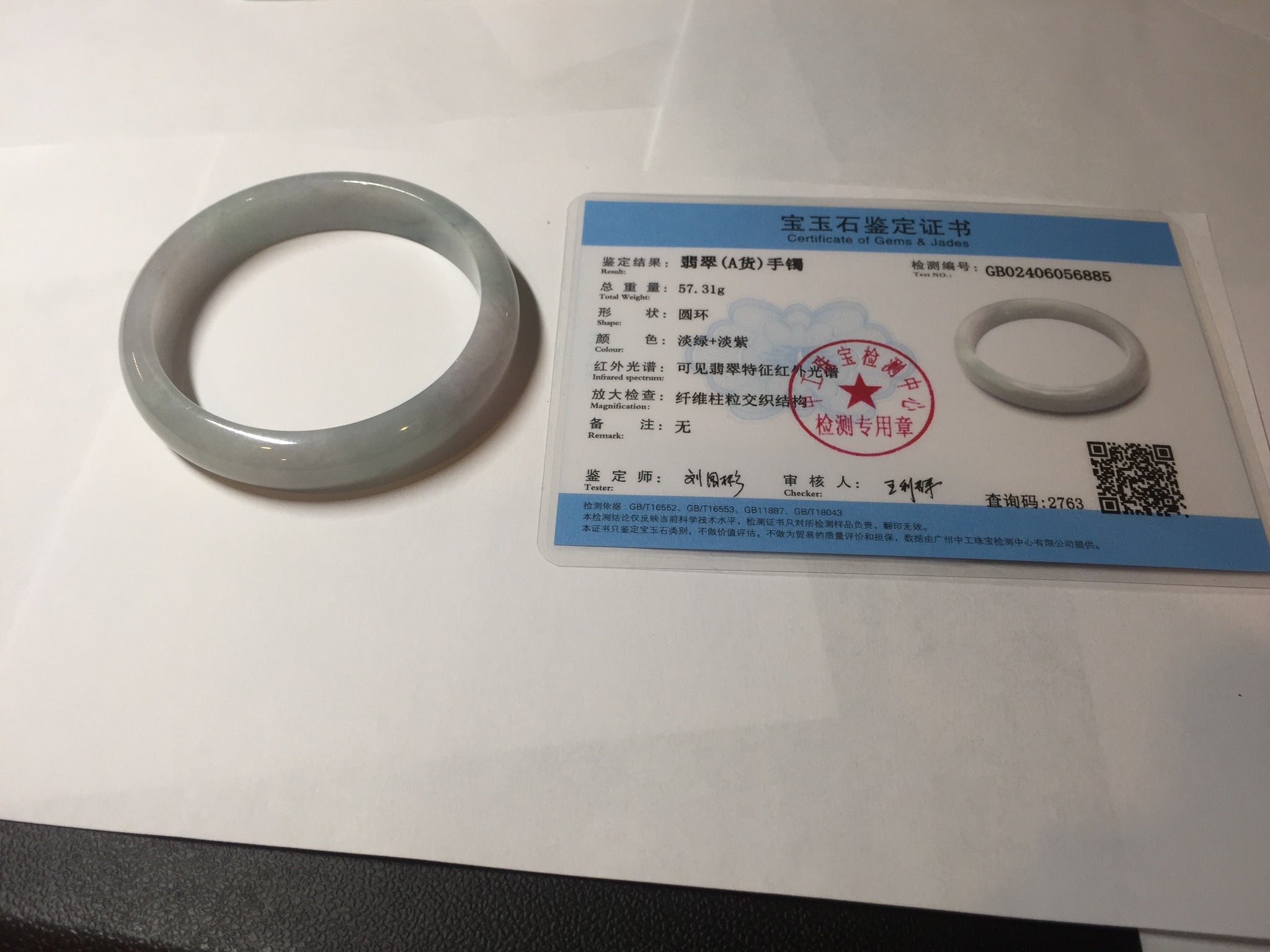 59.2mm Certified Type A 100% Natural green purple Jadeite Jade bangle BQ56-6885