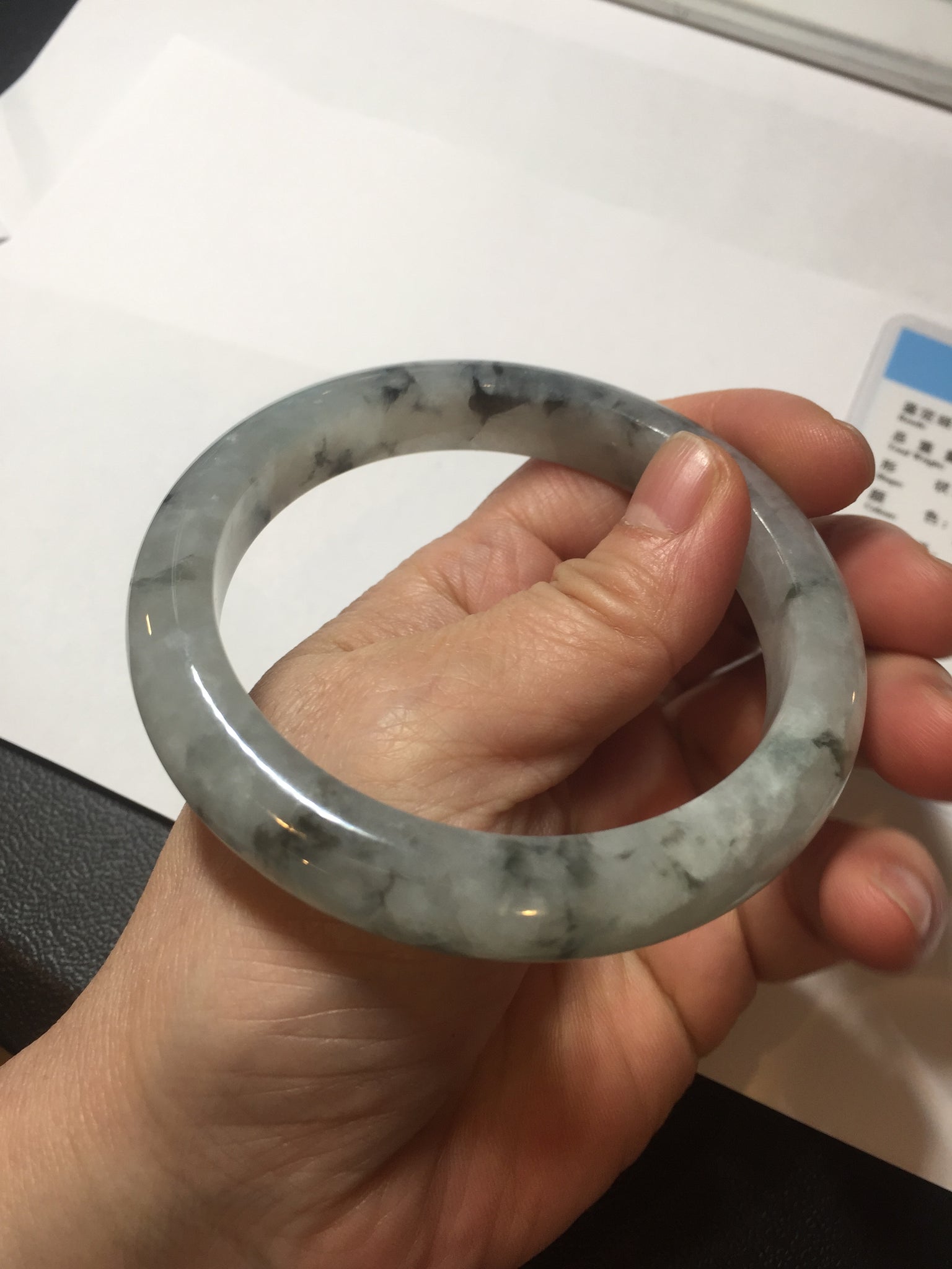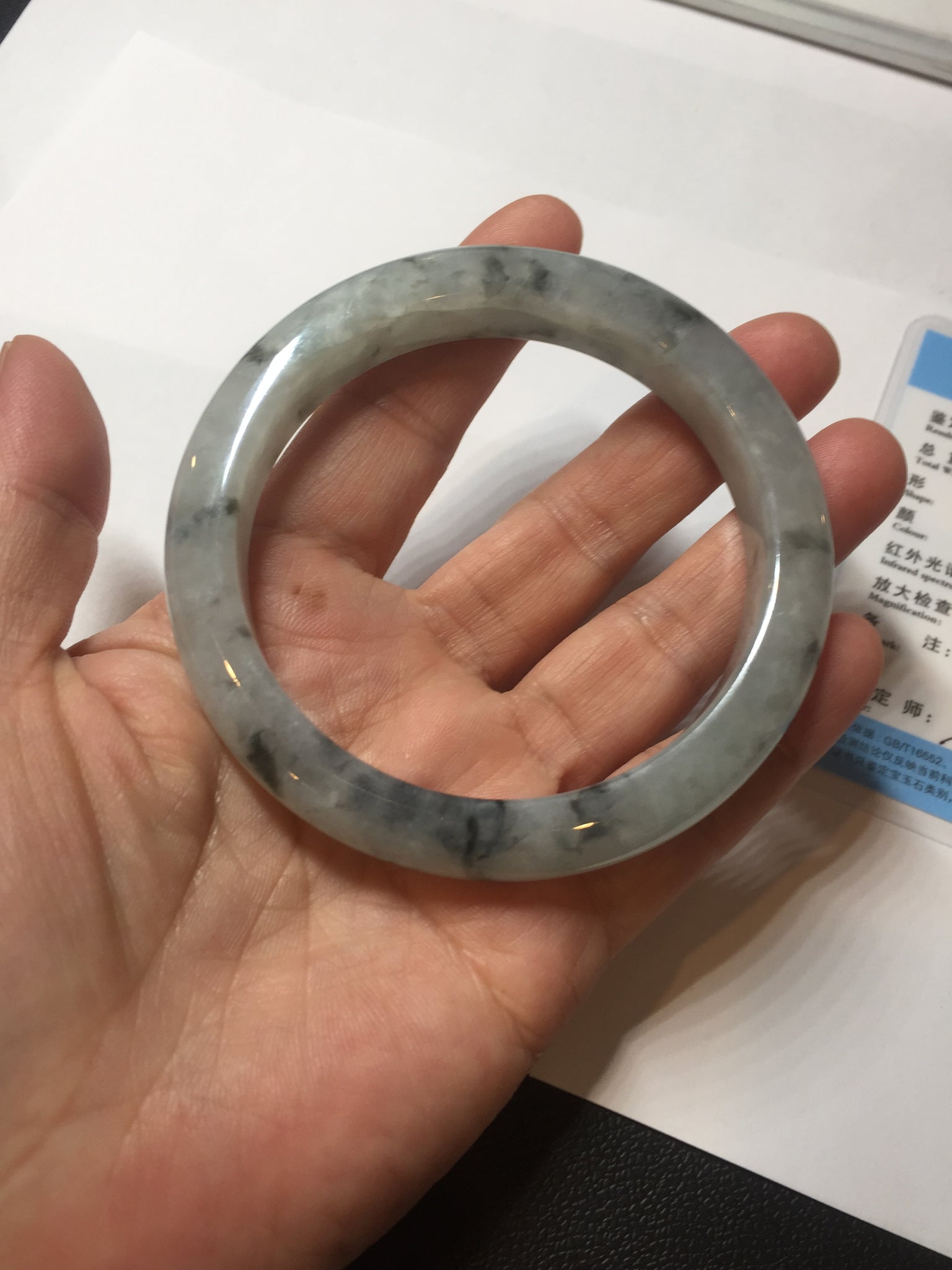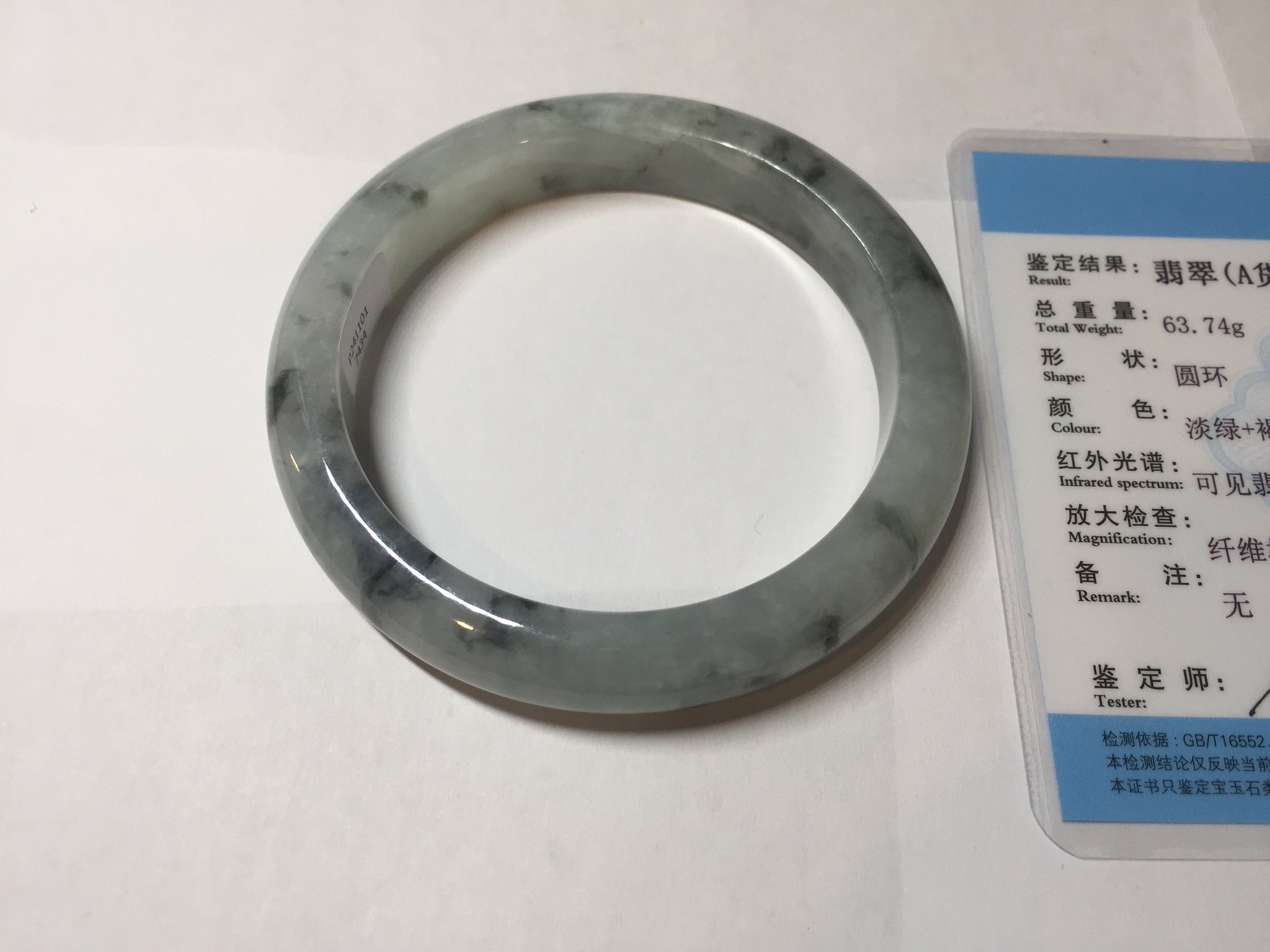 60mm certified Type A 100% Natural icy watery light green with green floating flowers Jadeite Jade bangle BK134-7434