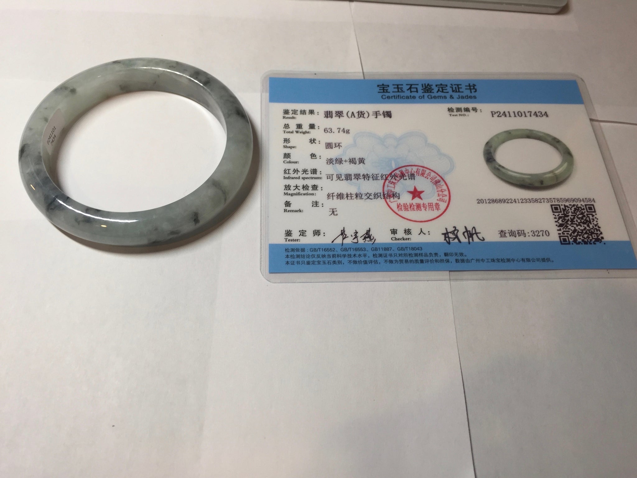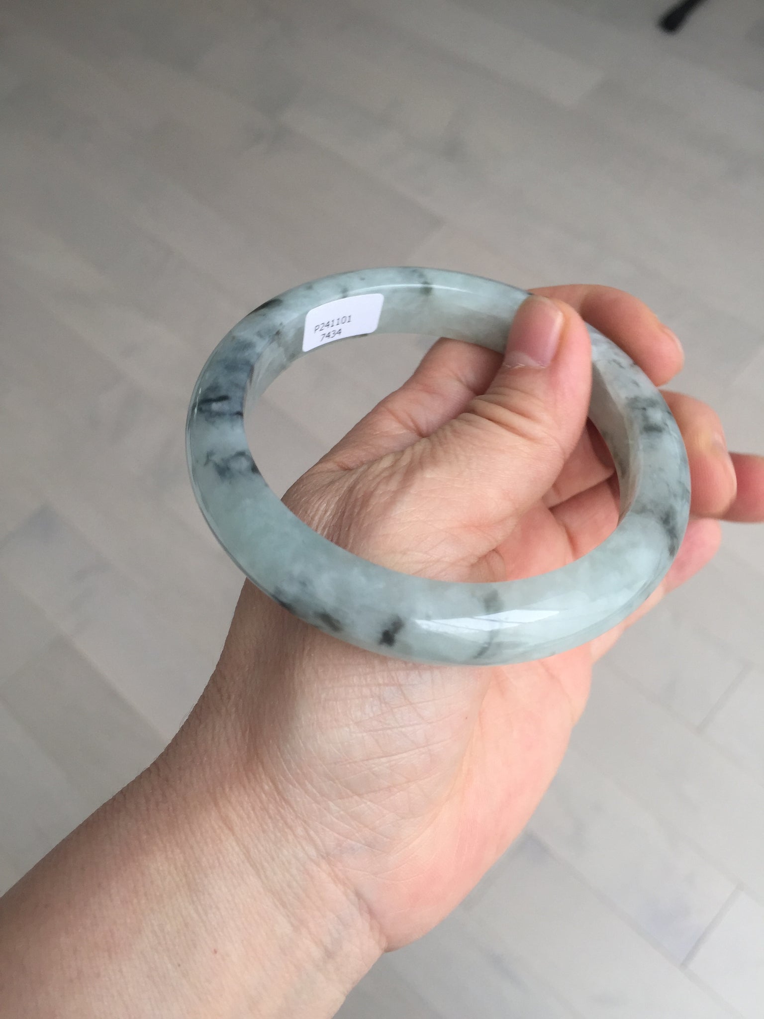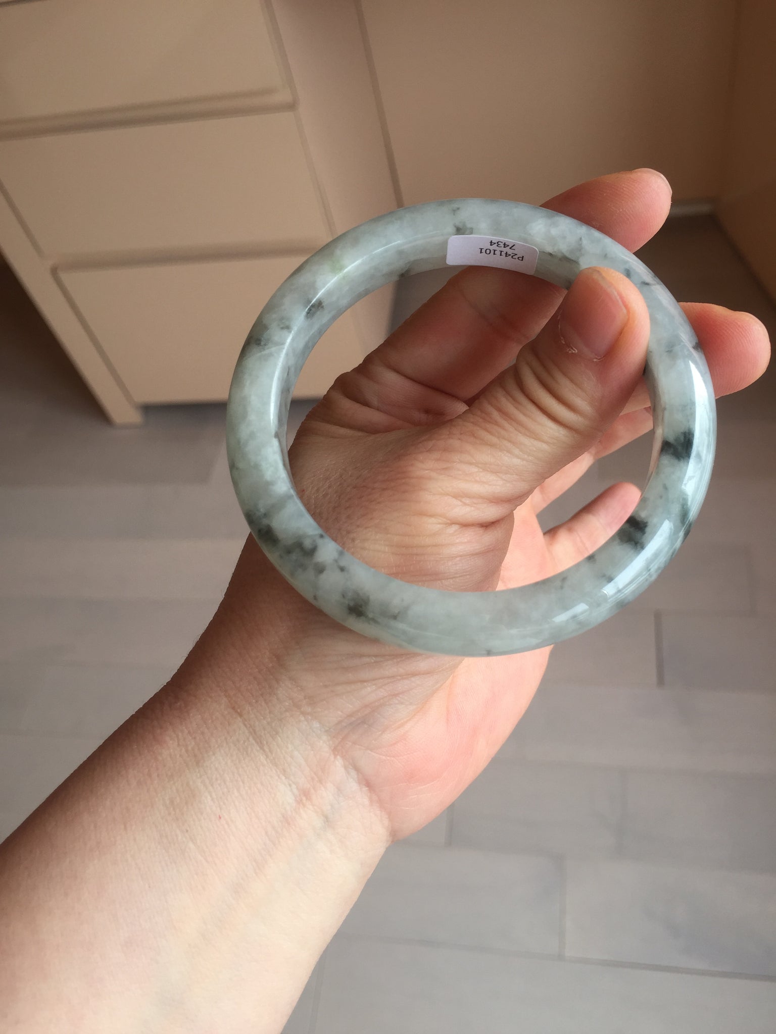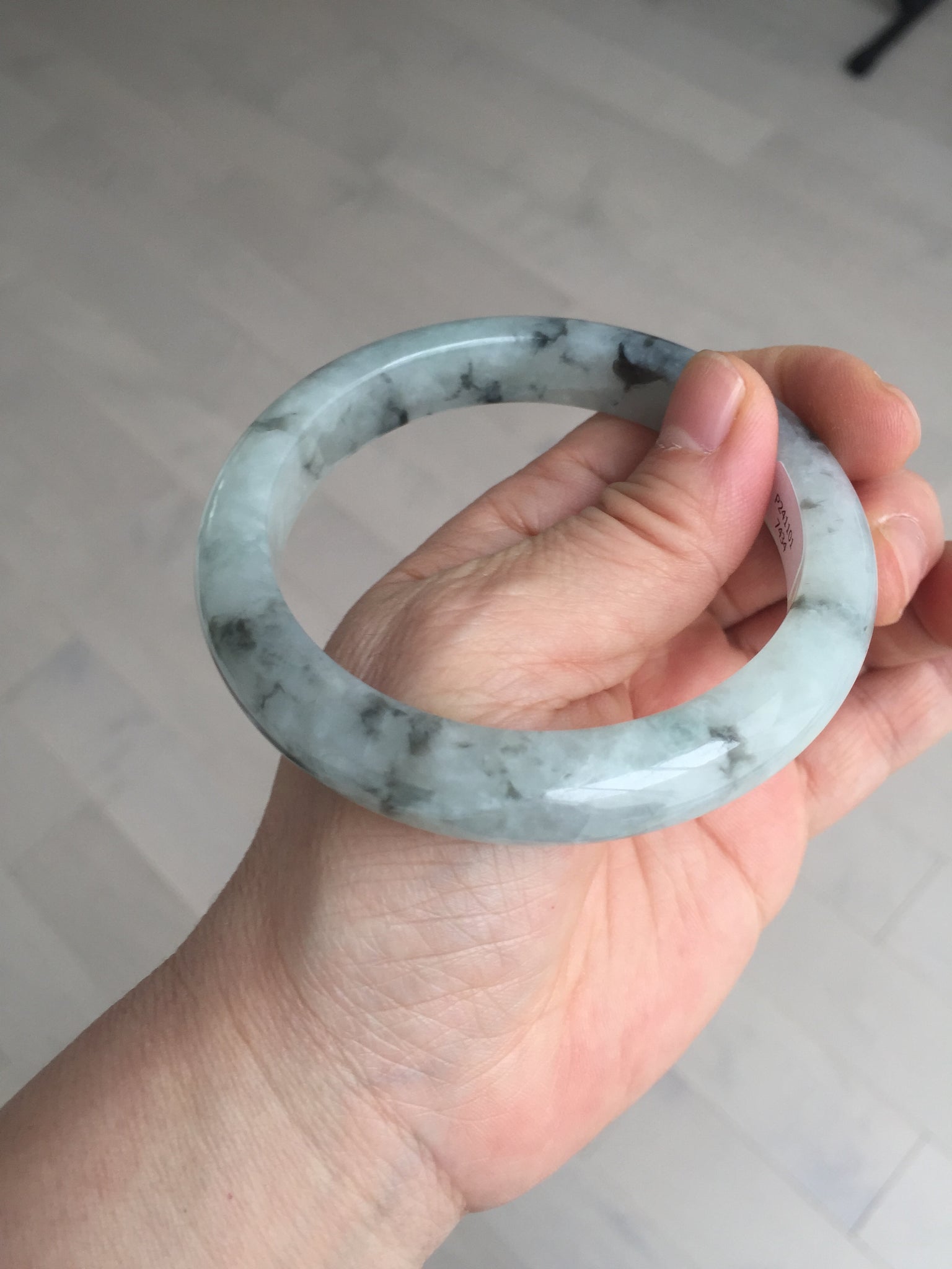 60mm certified Type A 100% Natural icy watery light green with green floating flowers Jadeite Jade bangle BK134-7434