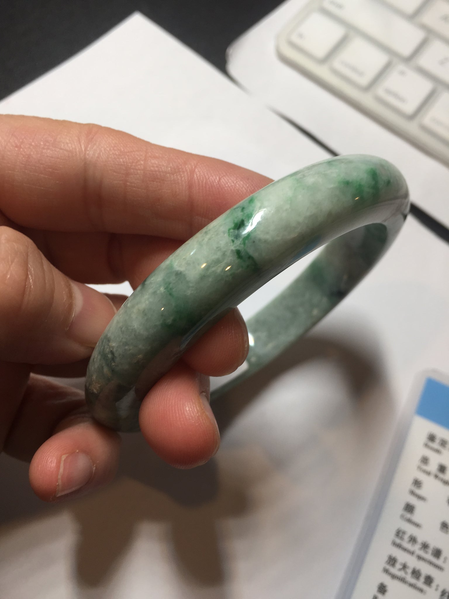 60.5mm certified Type A 100% Natural sunny green gray black Jadeite Jade bangle BS82-9879