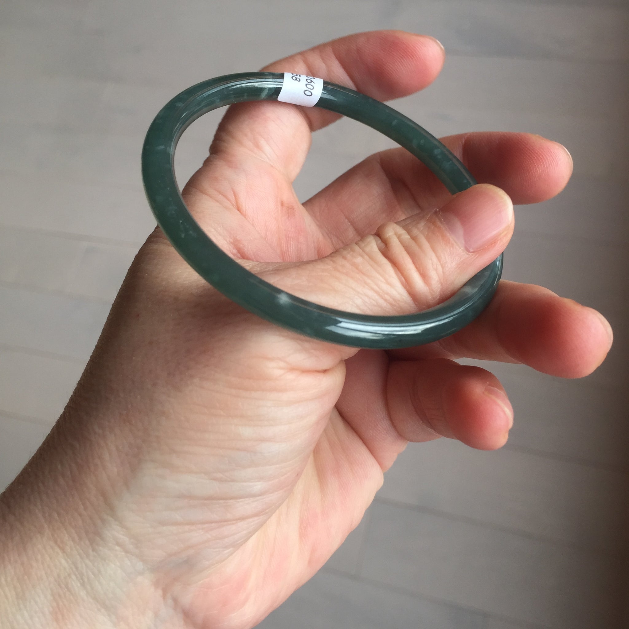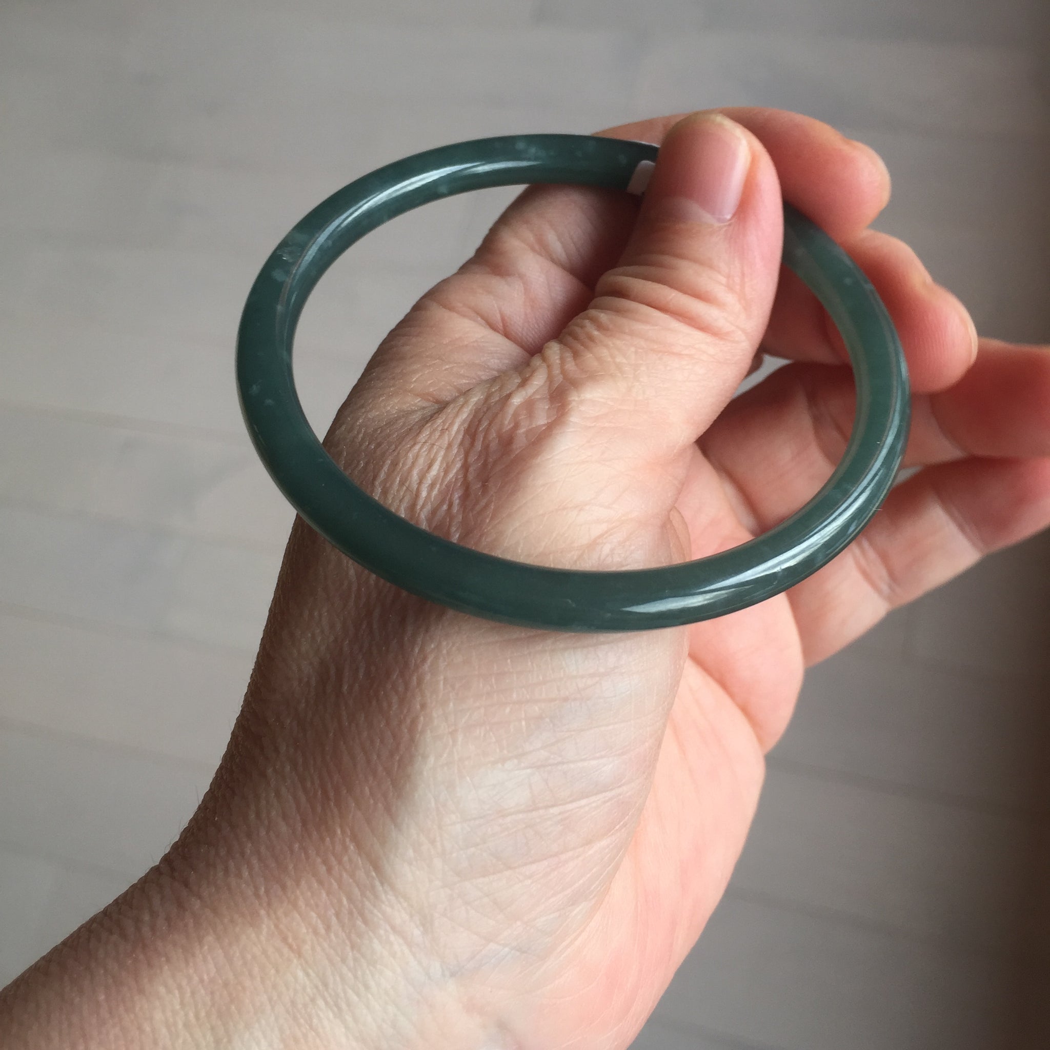 60mm Certified Type A 100% Natural dark green/blue/gray with Guatemala slim round cut Jadeite bangle PE49-7058