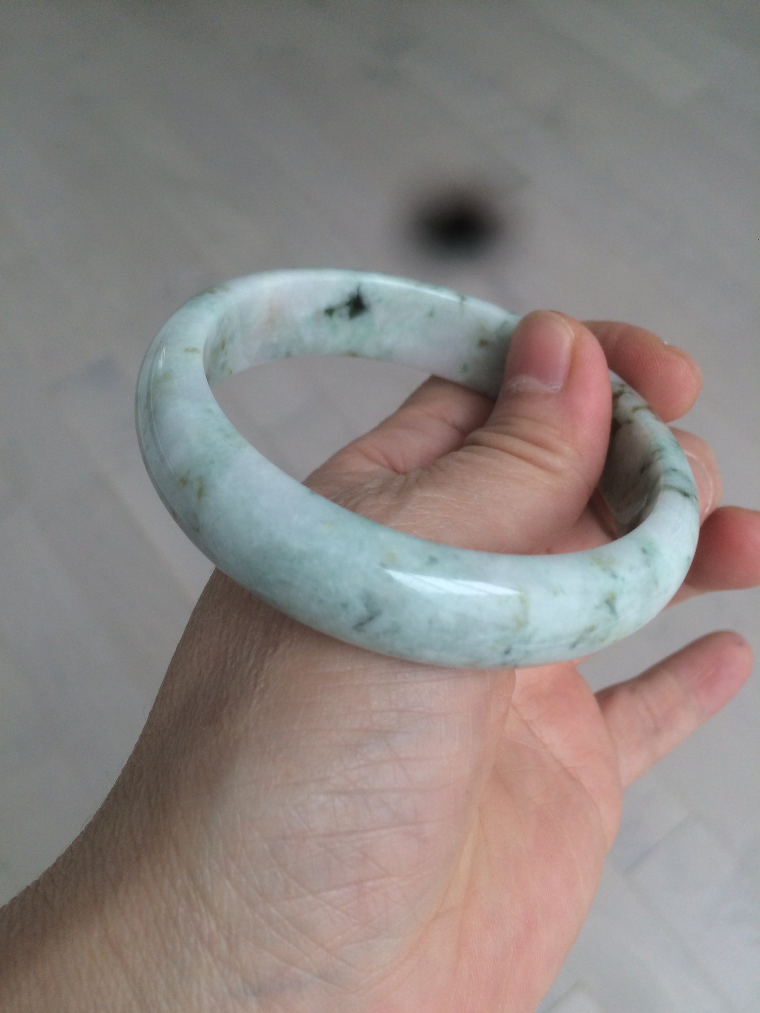 清新淡绿小碎花翡翠手镯.