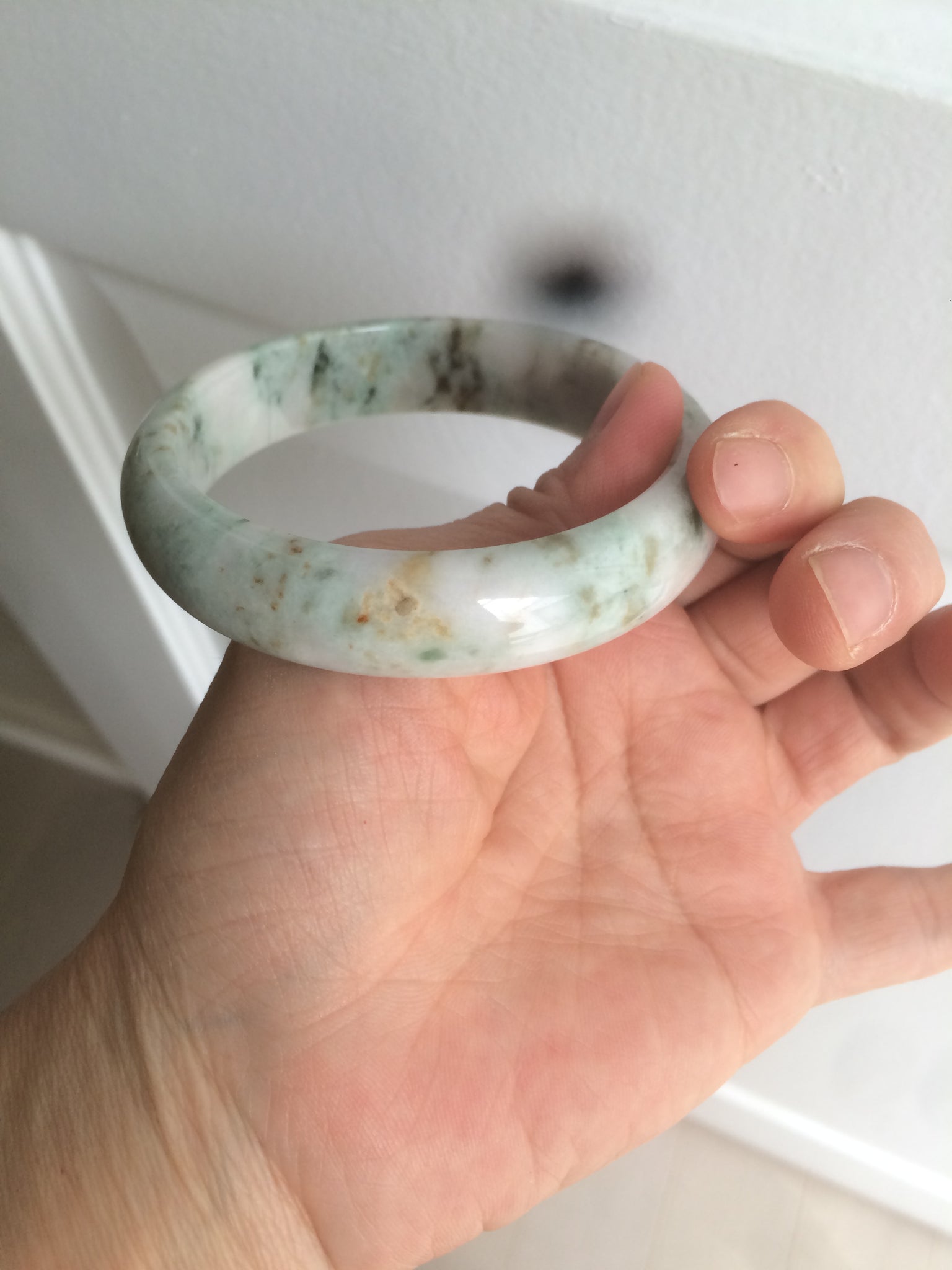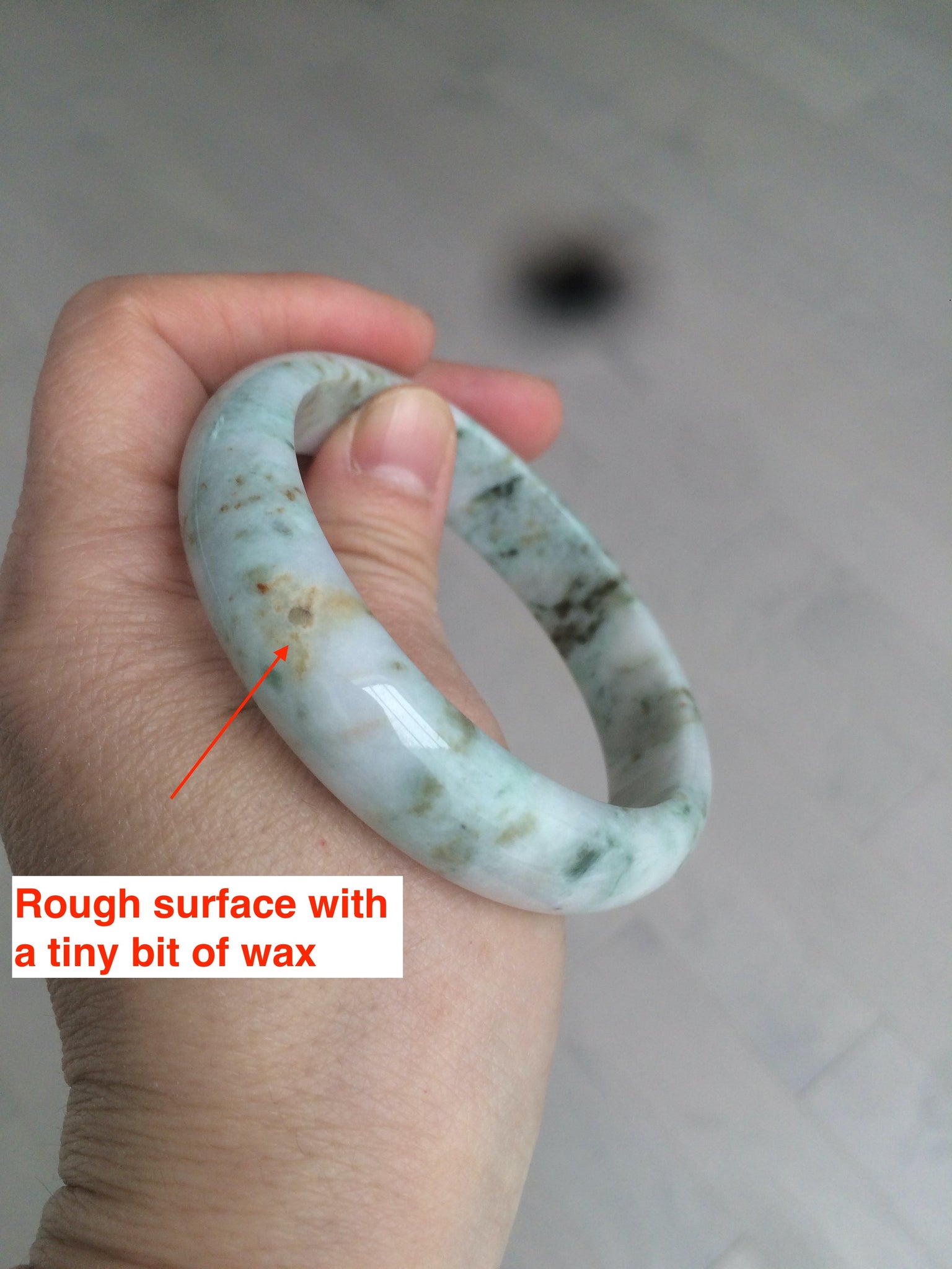One cracks. Some cotton lines. Some small rough surface areas. Dark green/brown/black areas. Not transparent. Not watery.