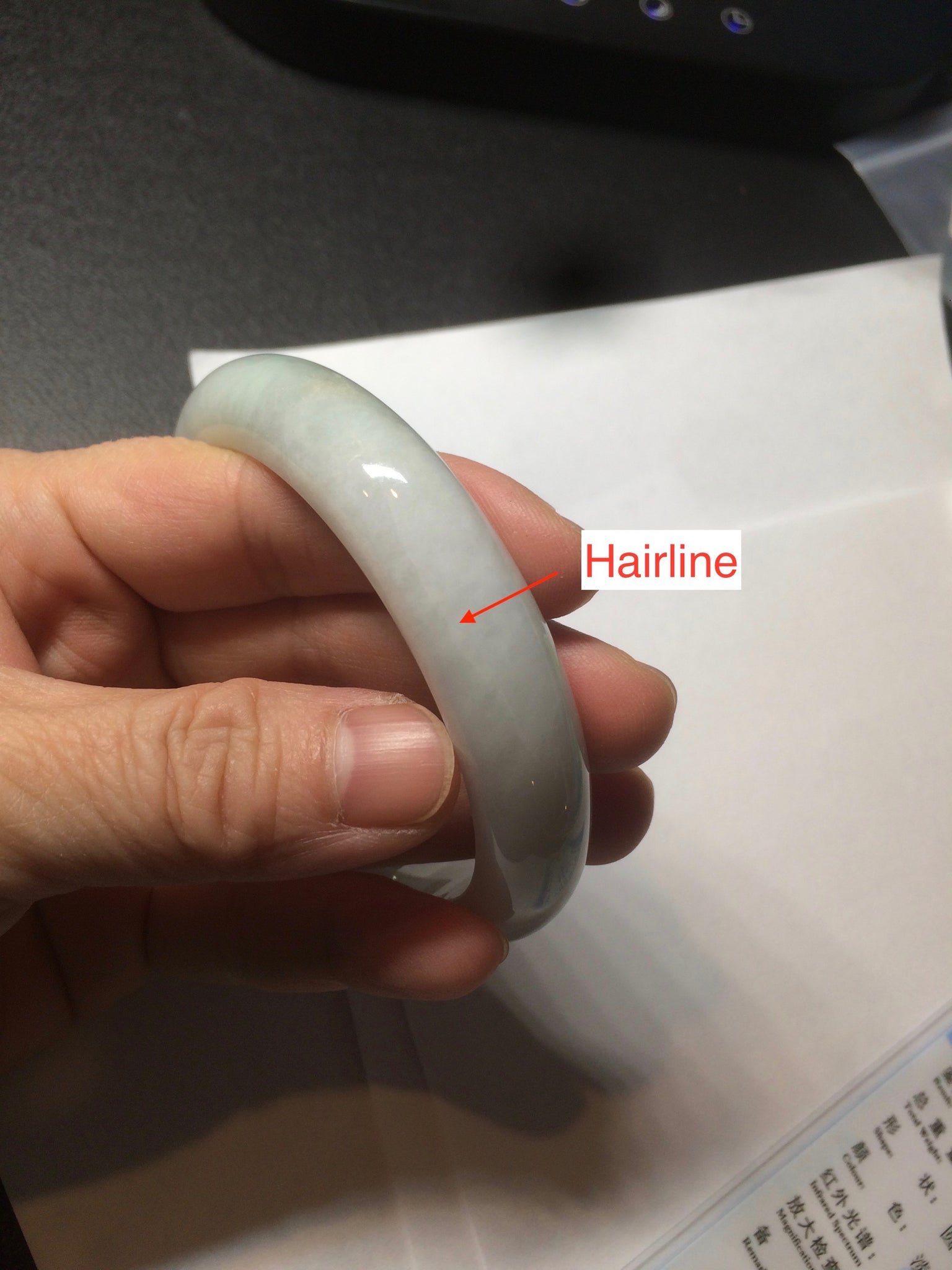 One surface crack. Some hairlines. Some cotton lines. The firmness of the bangle is not impacted. Some rough surfaces.