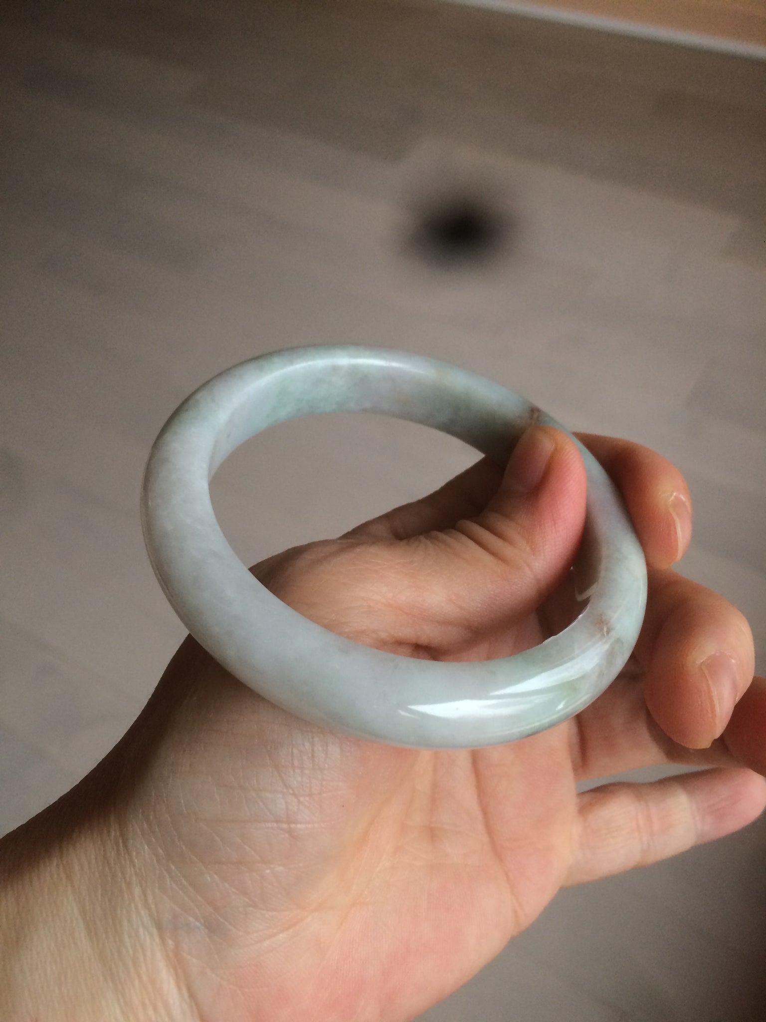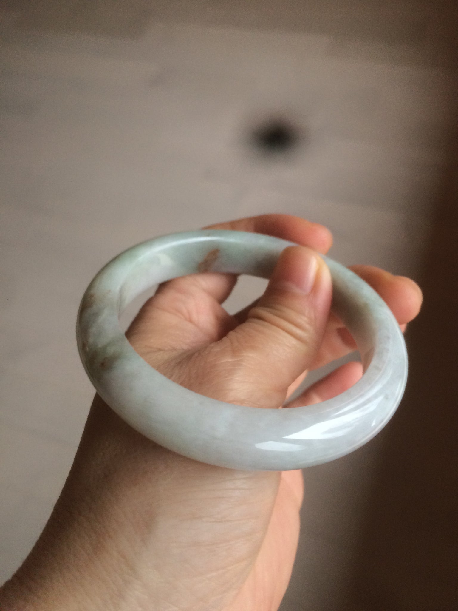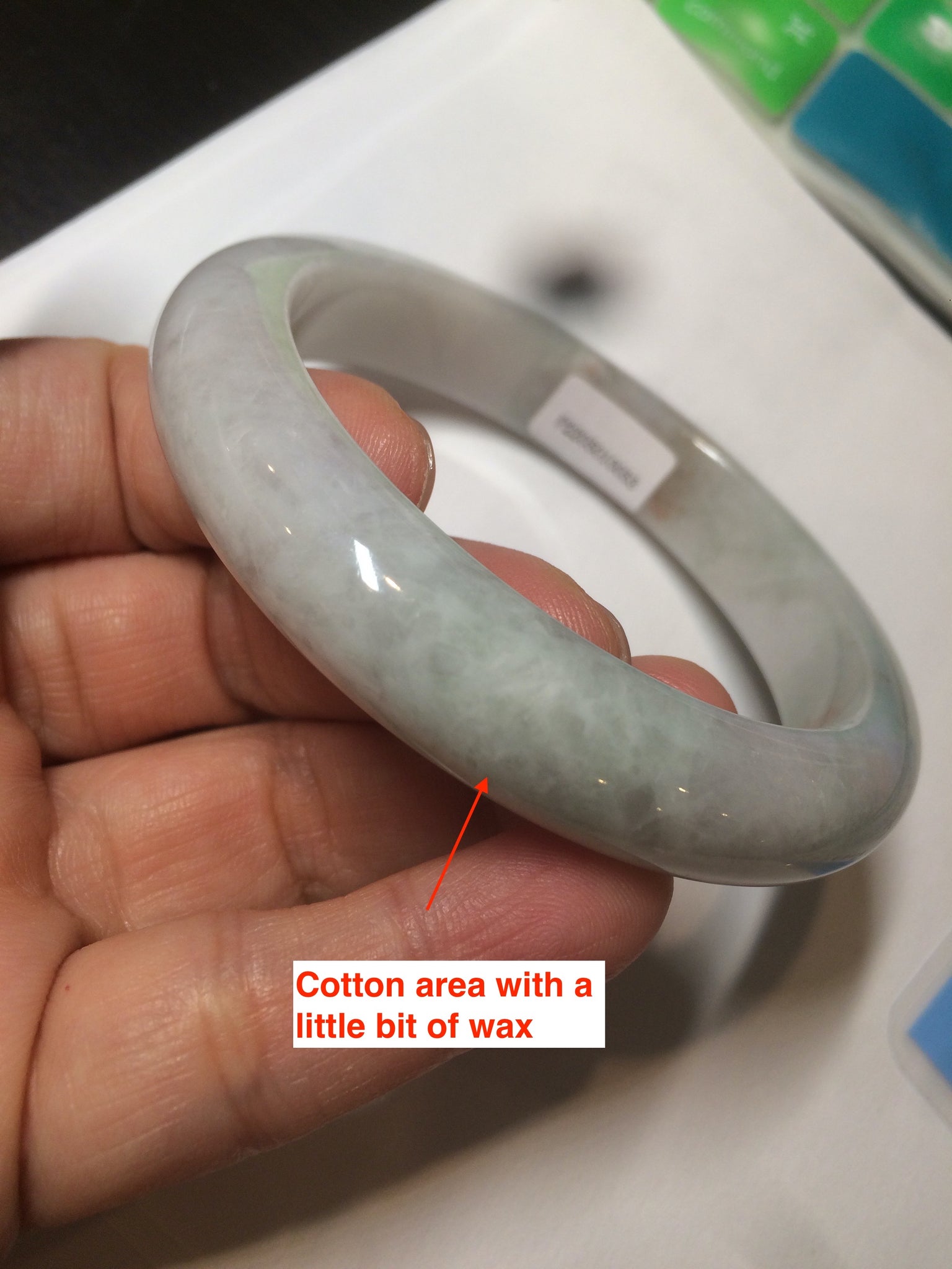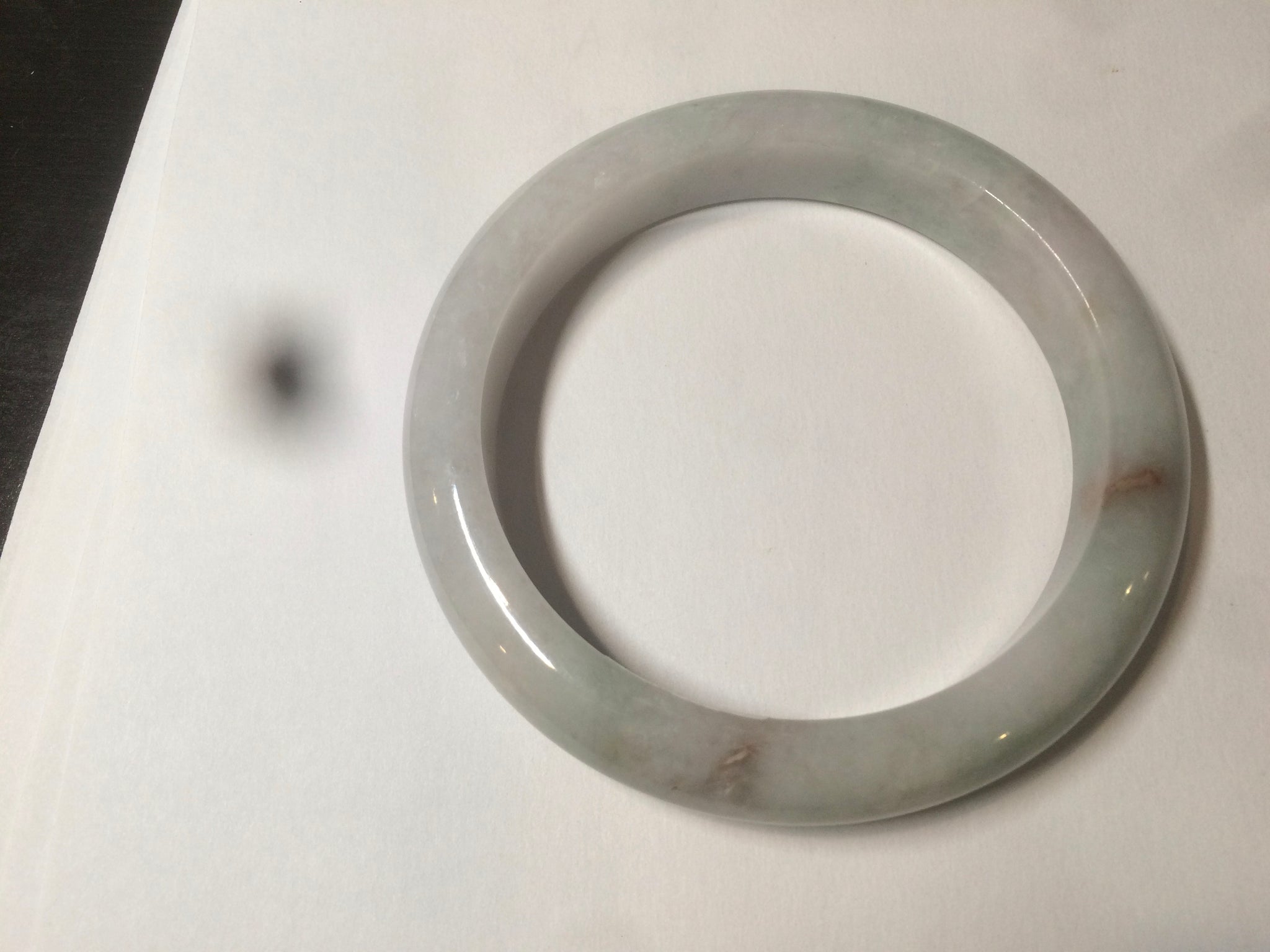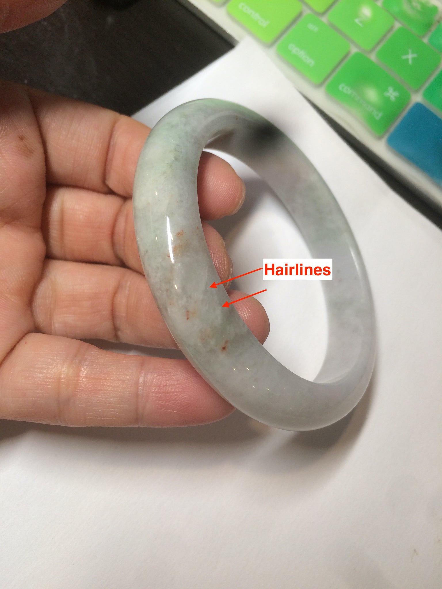 Some small surface scratches with a very tiny amount of wax. Some hairlines. There is a small mine pit and a surface scratch nearby some hairlines. Your finger may feel them, but they are not on the hairlines. One cotton area with wax residue. Not transparent. The surface of the red jade is not smooth. The purple is super light. Lighter than in the photos.