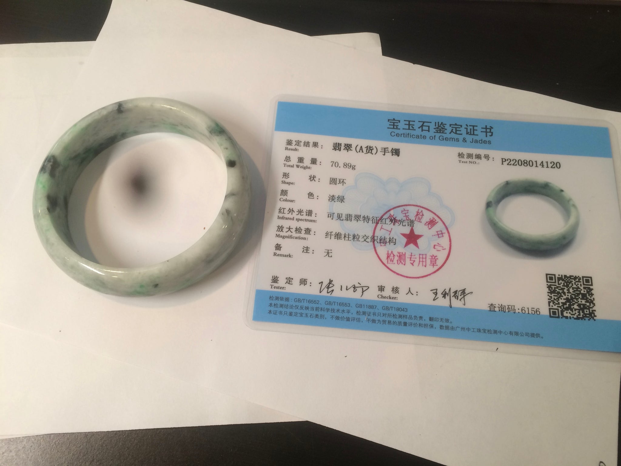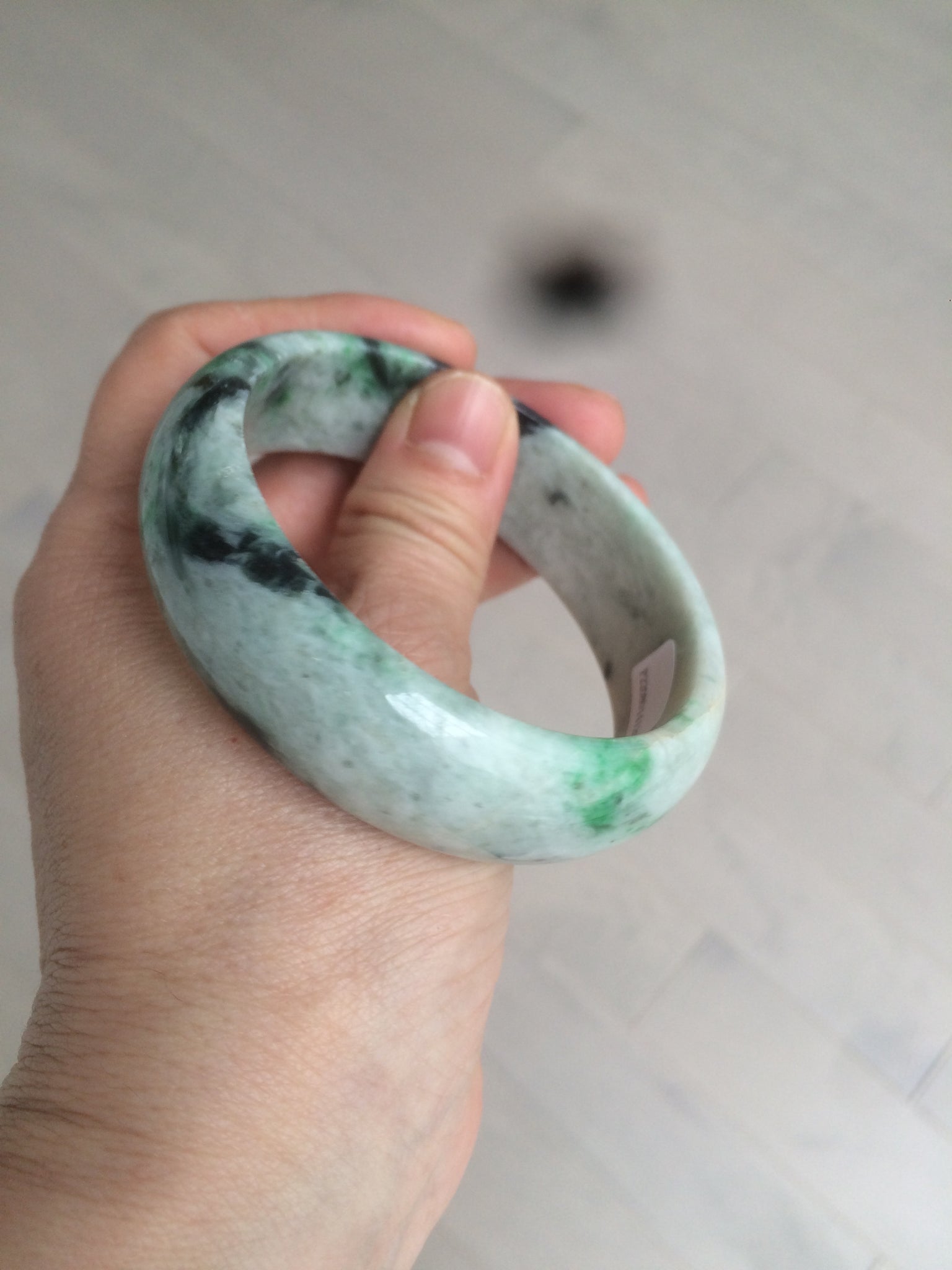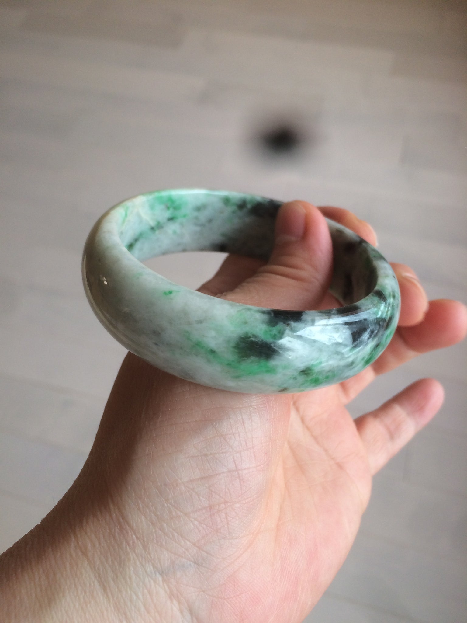 Imperfections: Some cracks. The bangle is firm. 2 of them with wax residue.  Some hairlines and cotton lines. Some rough surfaces. Not transparent. Dark green/black spots.