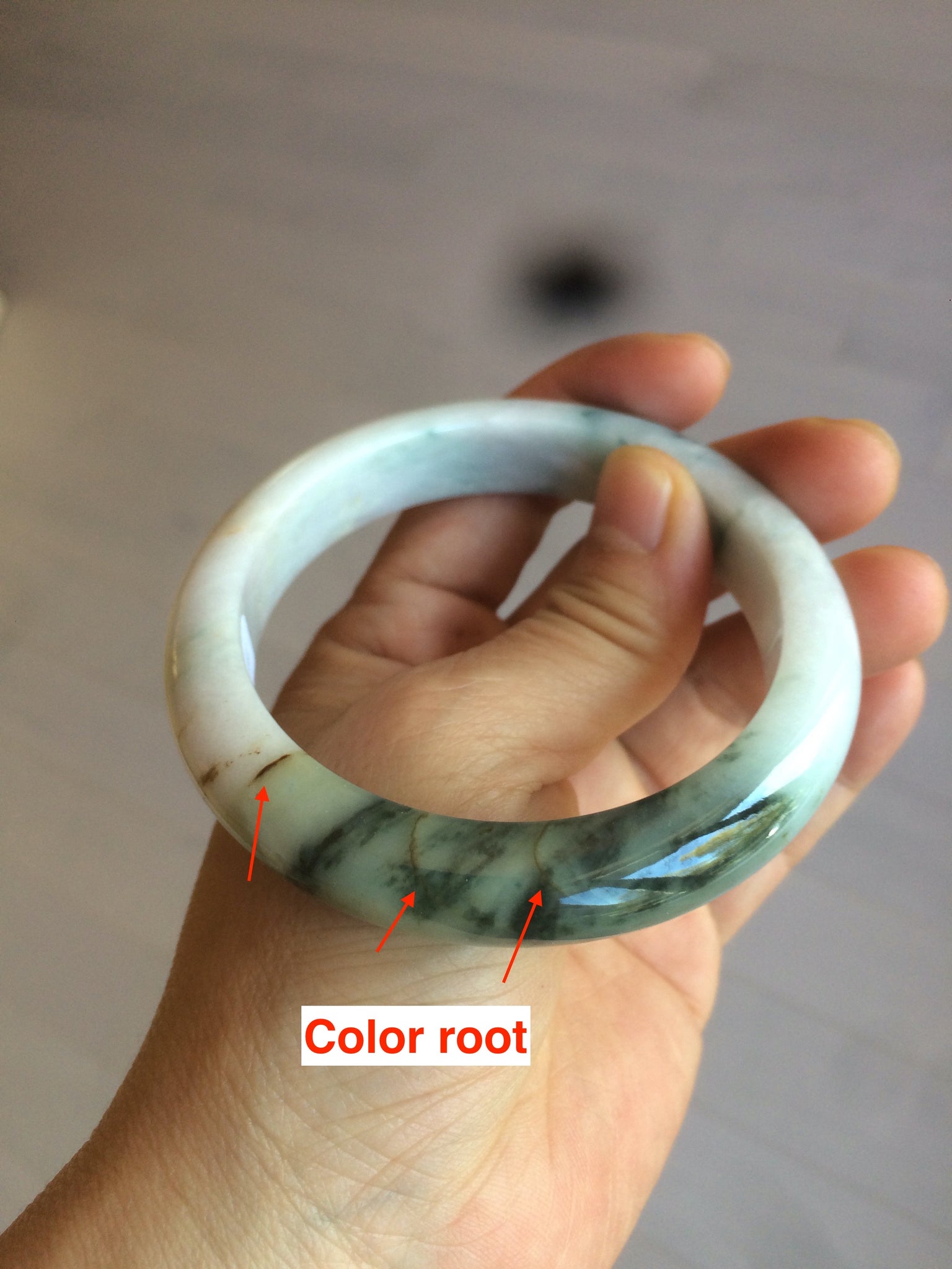 Imperfections: No crack.Some hairlines and color roots. The surface ot the brown color root is not smooth due to the texture difference. Cotton lines and spots.Porcelain background. Not transparent.  The purple is super light. Way lighter than in the photos.