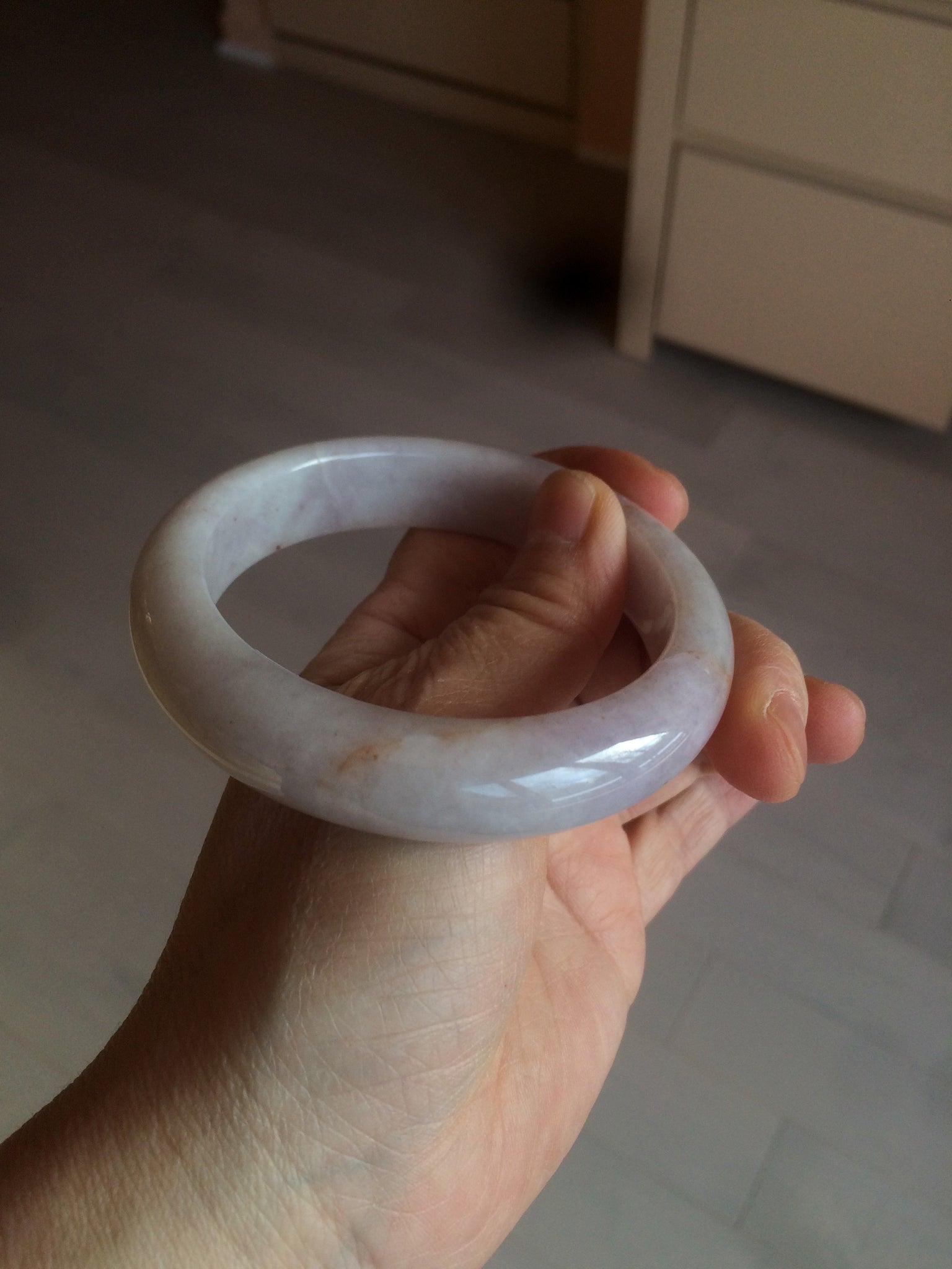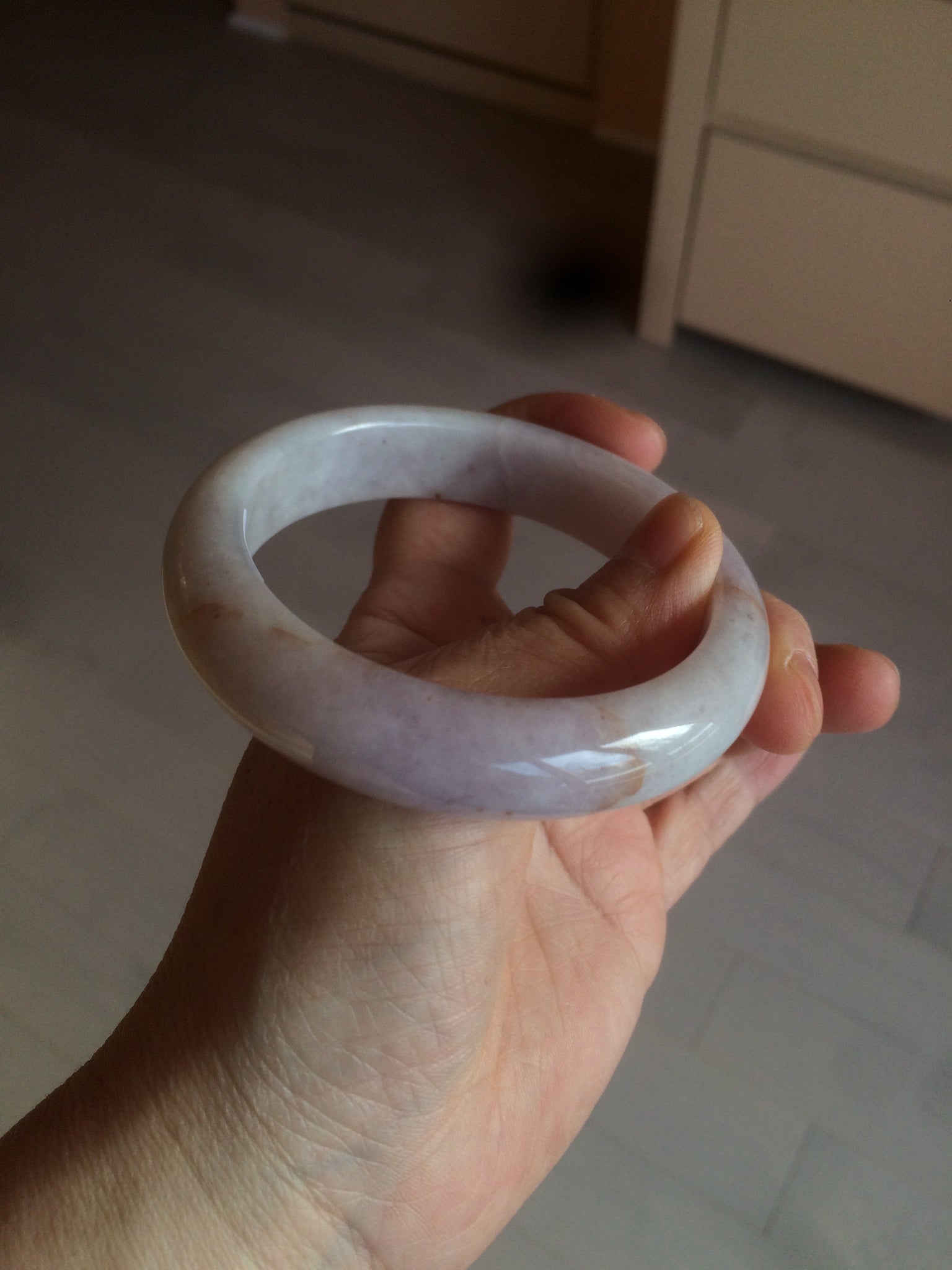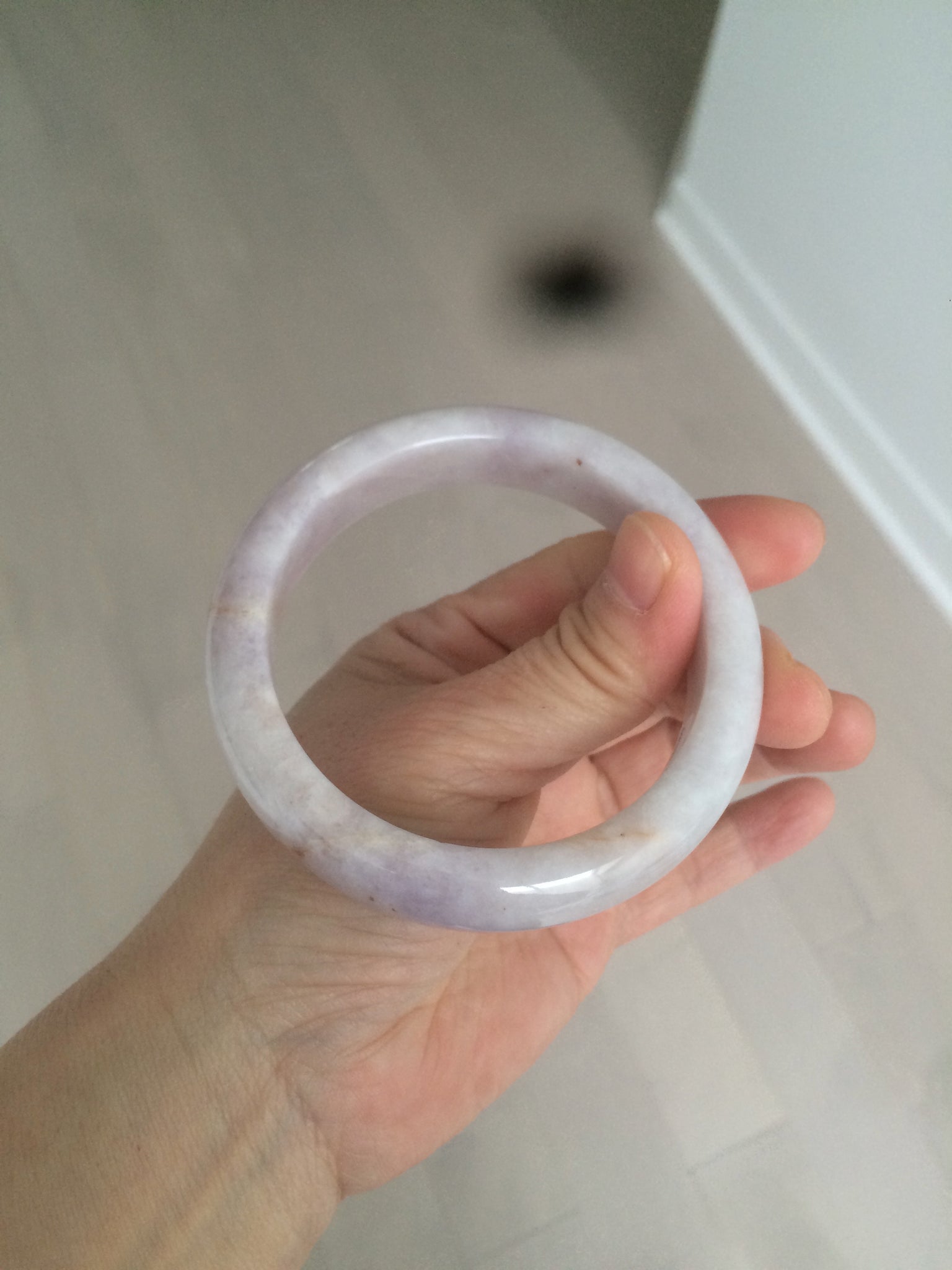 Some yellow color root cracks. This type of crack is due to poor fusion of minerals, which generally has a relatively smaller impact on firmness. Some hairlines. The texture is less fine. Some cotton lines and structure lines (not all shown in the photos). One relatively big cotton area. Small rough surface areas. Cotton spots. Not transparent. The purple is lighter than in the photos.