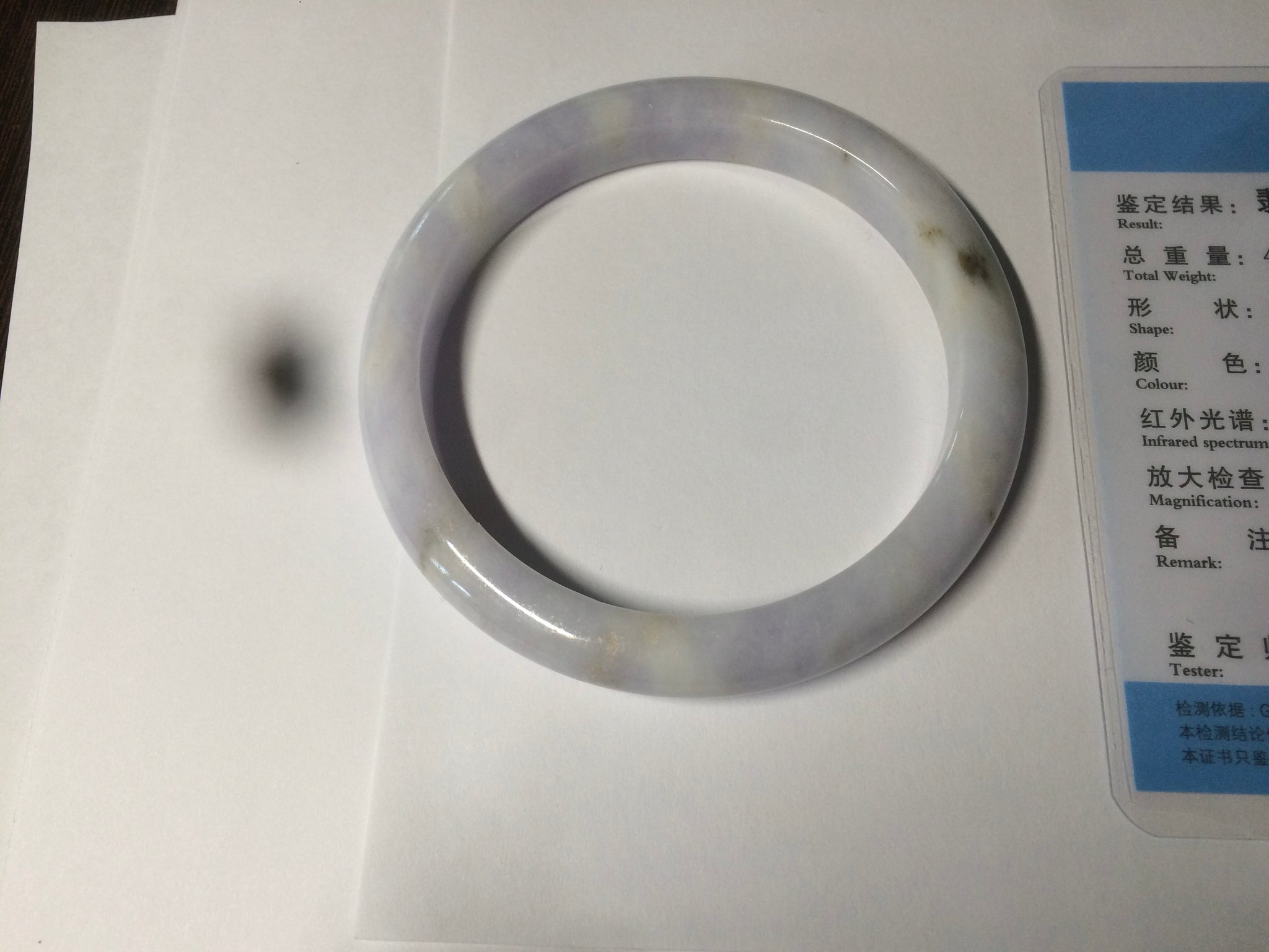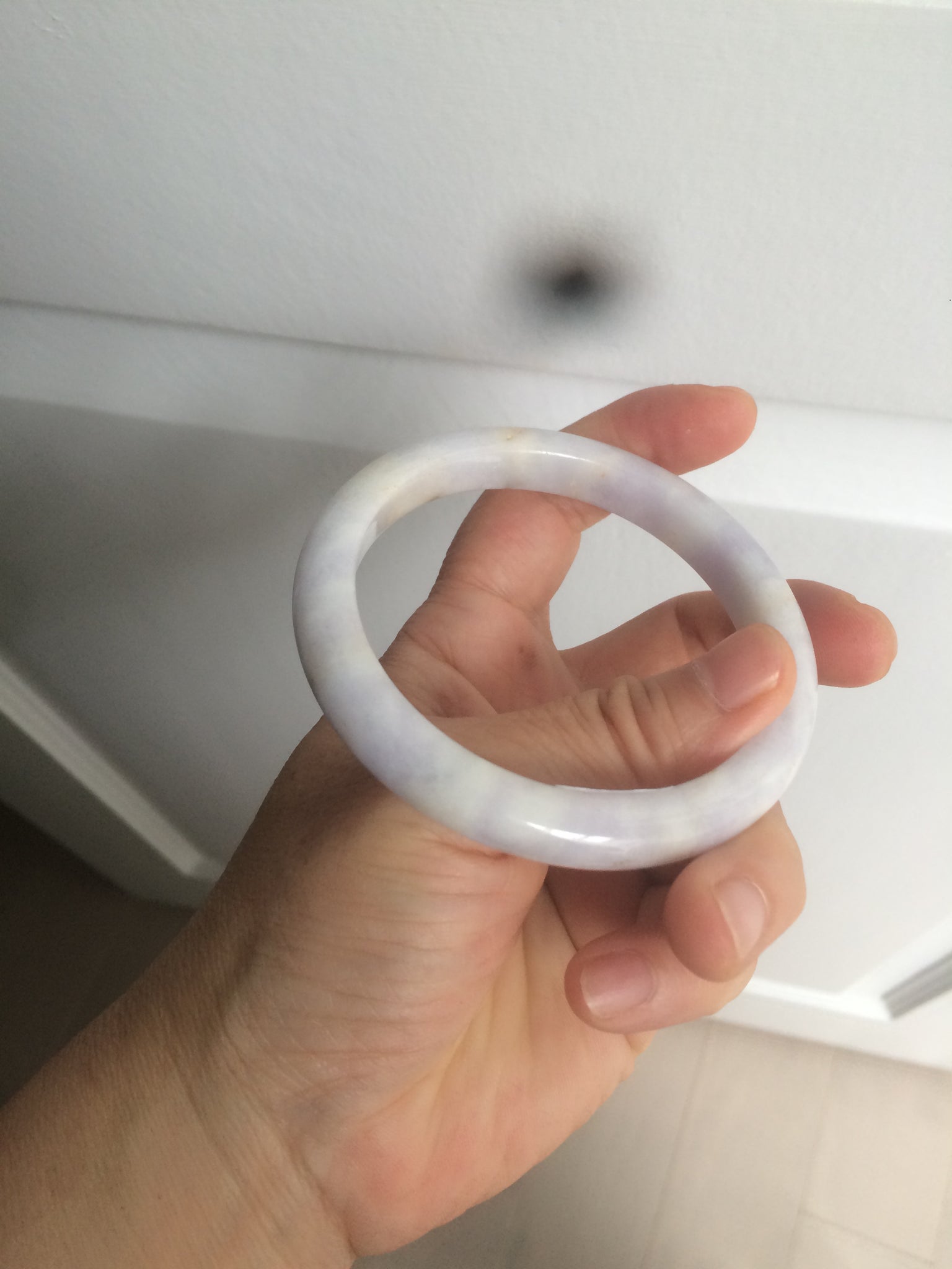 Some surface mine pits with wax. One hairline.Some small rough surface areas or spots with wax. Cotton areas and spots. Black/brown spots. The purple is super light. Lighter than in photos. Not transparent.
