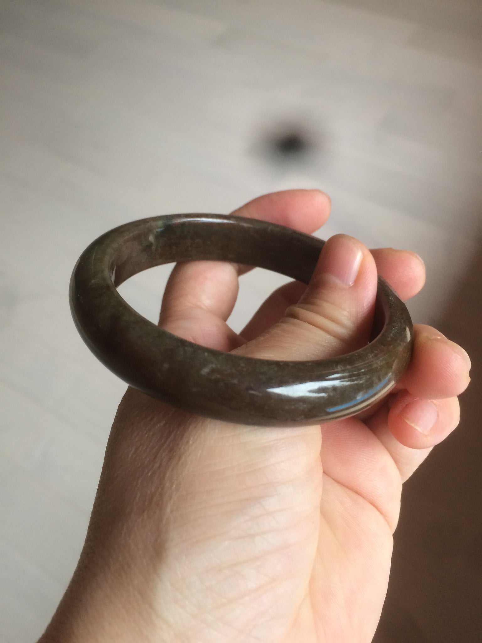 Imperfections:  One cut-through bangle crack. This will decrease the firmness of the bangle. A tight fit is NOT recommended.   Color roots, cotton lines. dark spots.