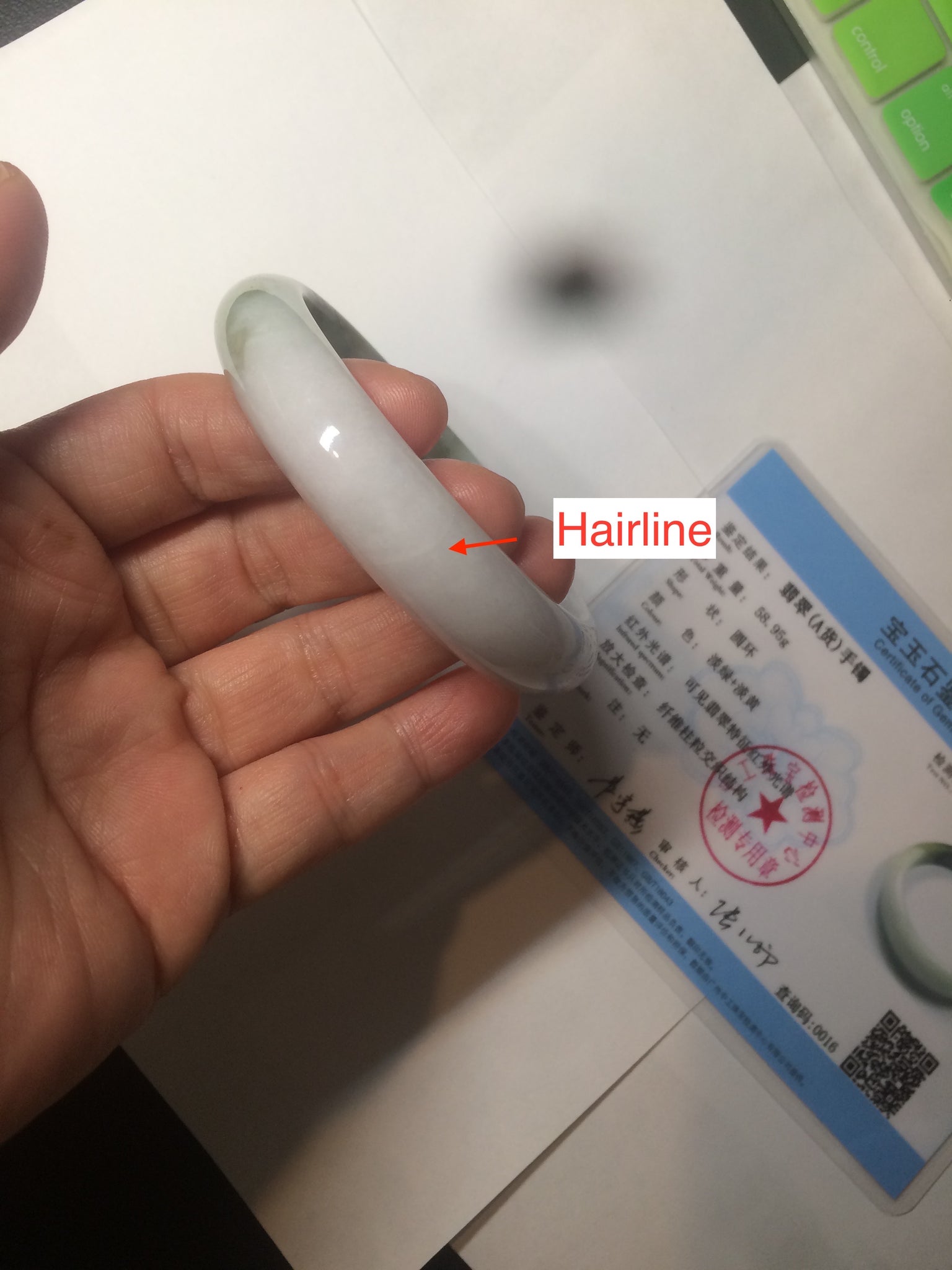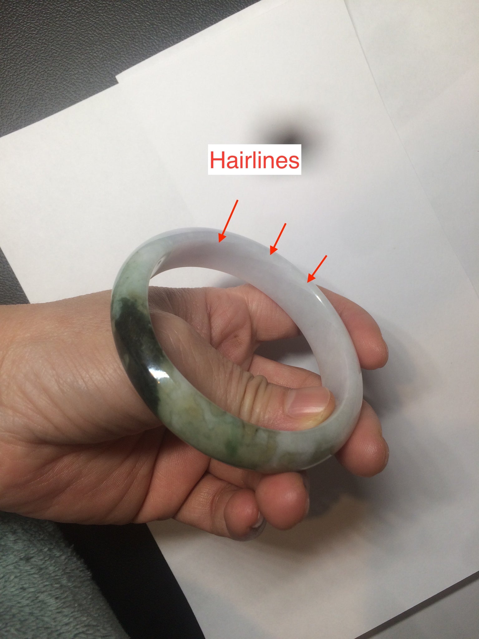 No crack. Some hairlines(photos may not show all). The texture of the dark green area is not so fine(rough surface). The dark green area is slightly narrower and thinner than the other parts 14 vs 12.8/8 vs 7.3mm
