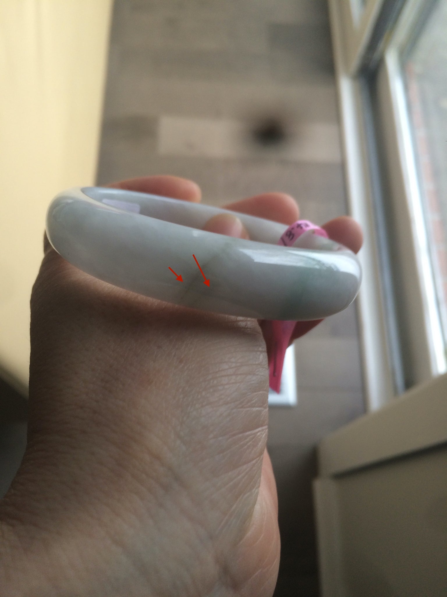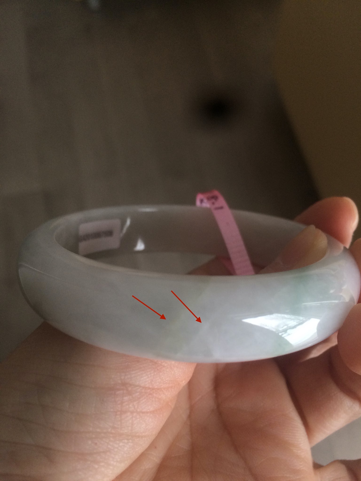 One around the bangle crack with some wax residue. It doesn't cut through the whole bangle. Some hairlines(more than 4).