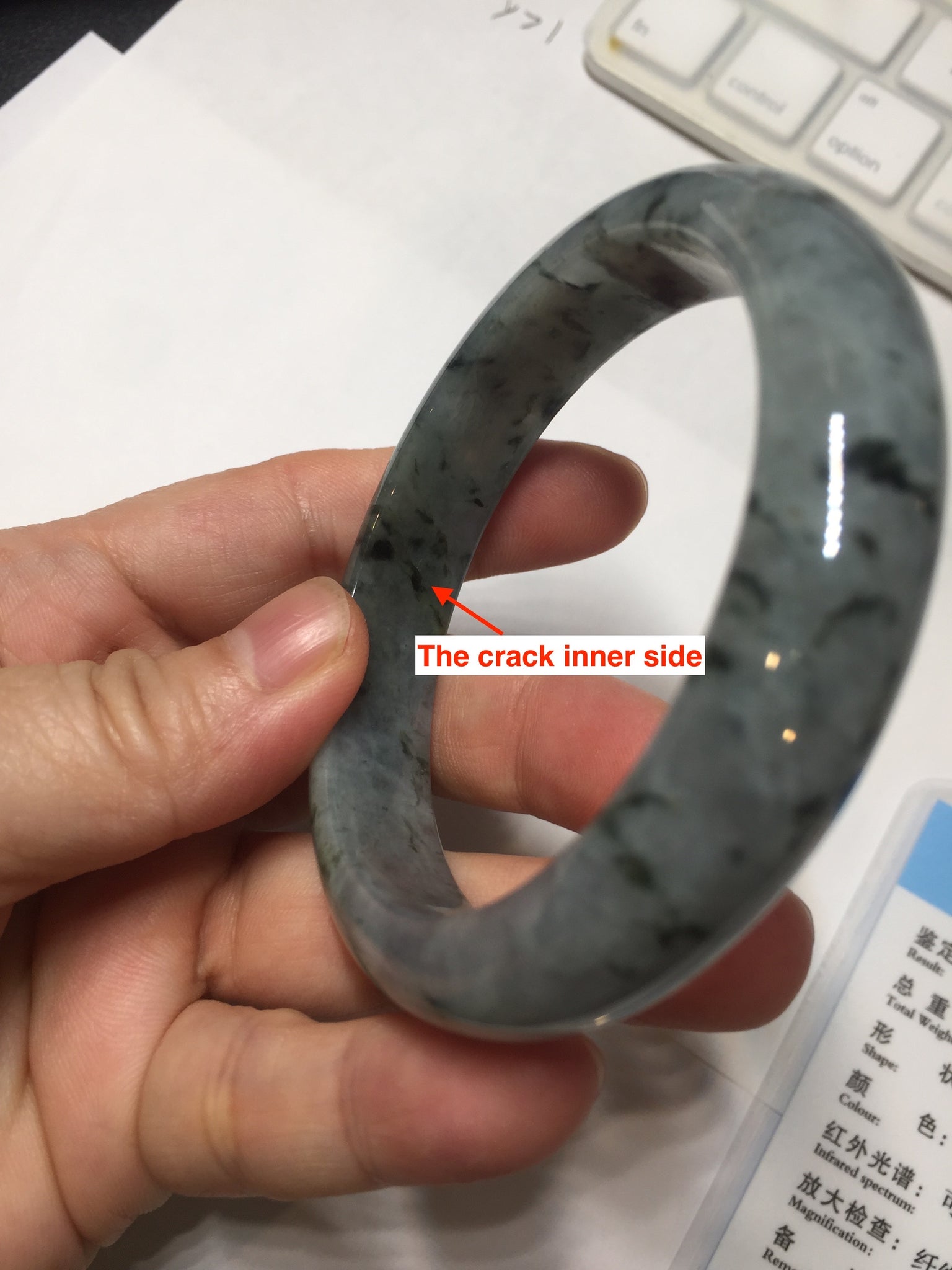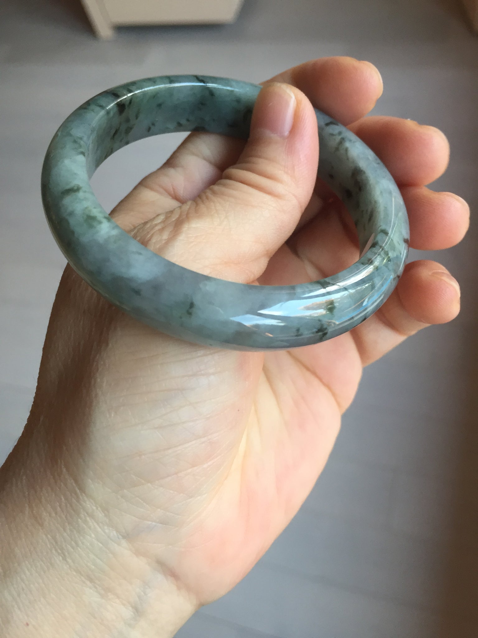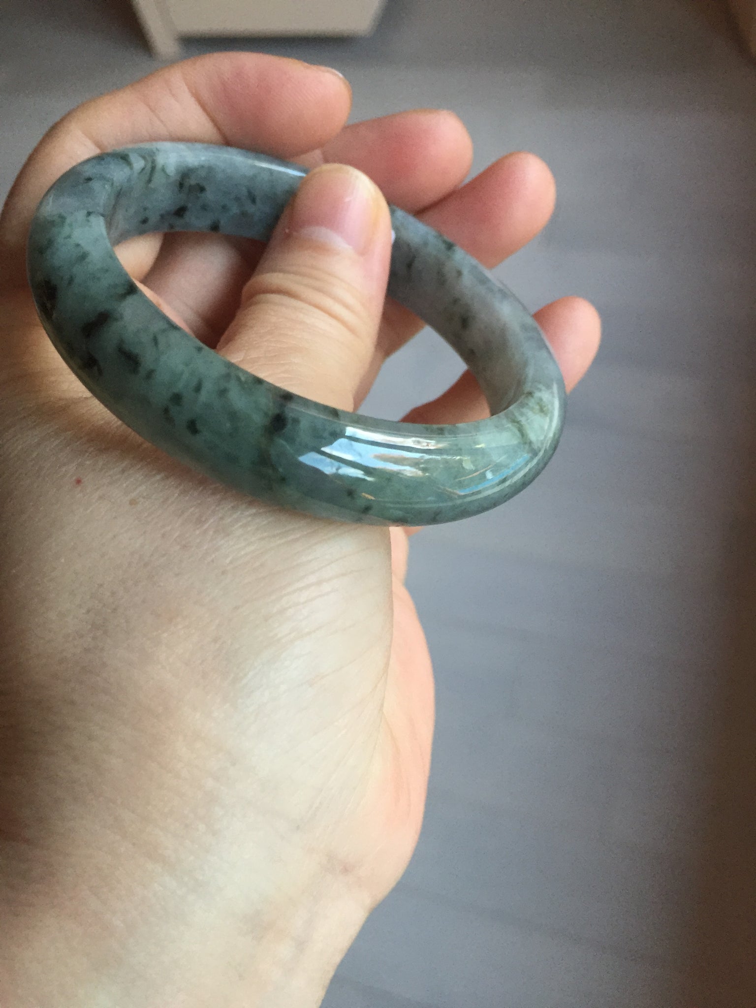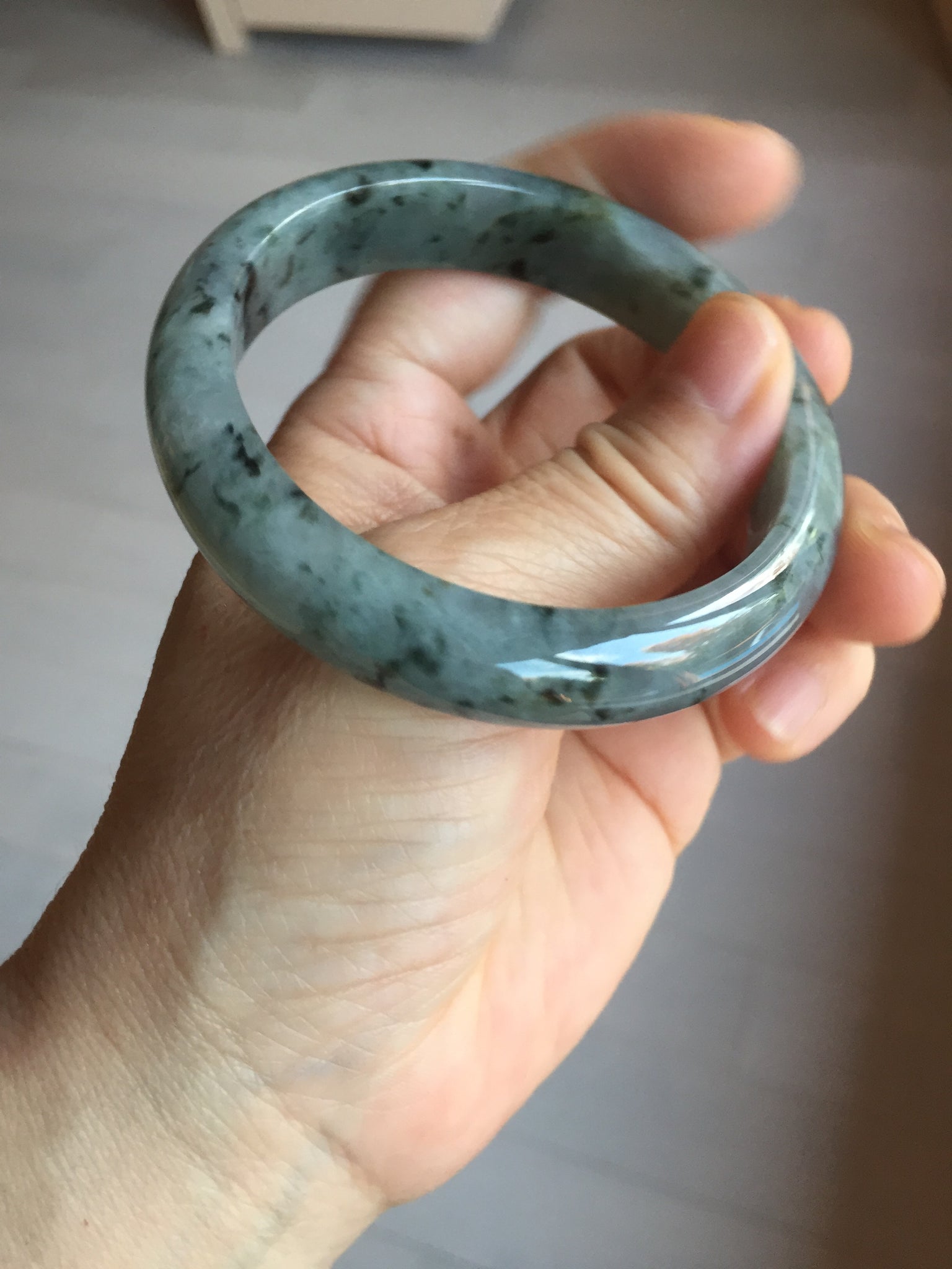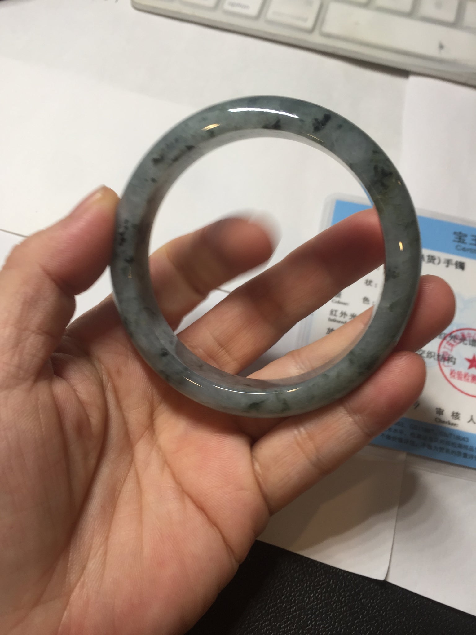 One around the bangle crack with a tiny amount of wax. Some surface cracks and small rough surfaces. The bangle is solid(Guaranteed!). Make high pitch sound when tapped. Some hairlines, cotton lines, cotton areas, and cotton spots. No transparent. The purple is super light. Way lighter than in the photos due to the purple color always more camera friendly.