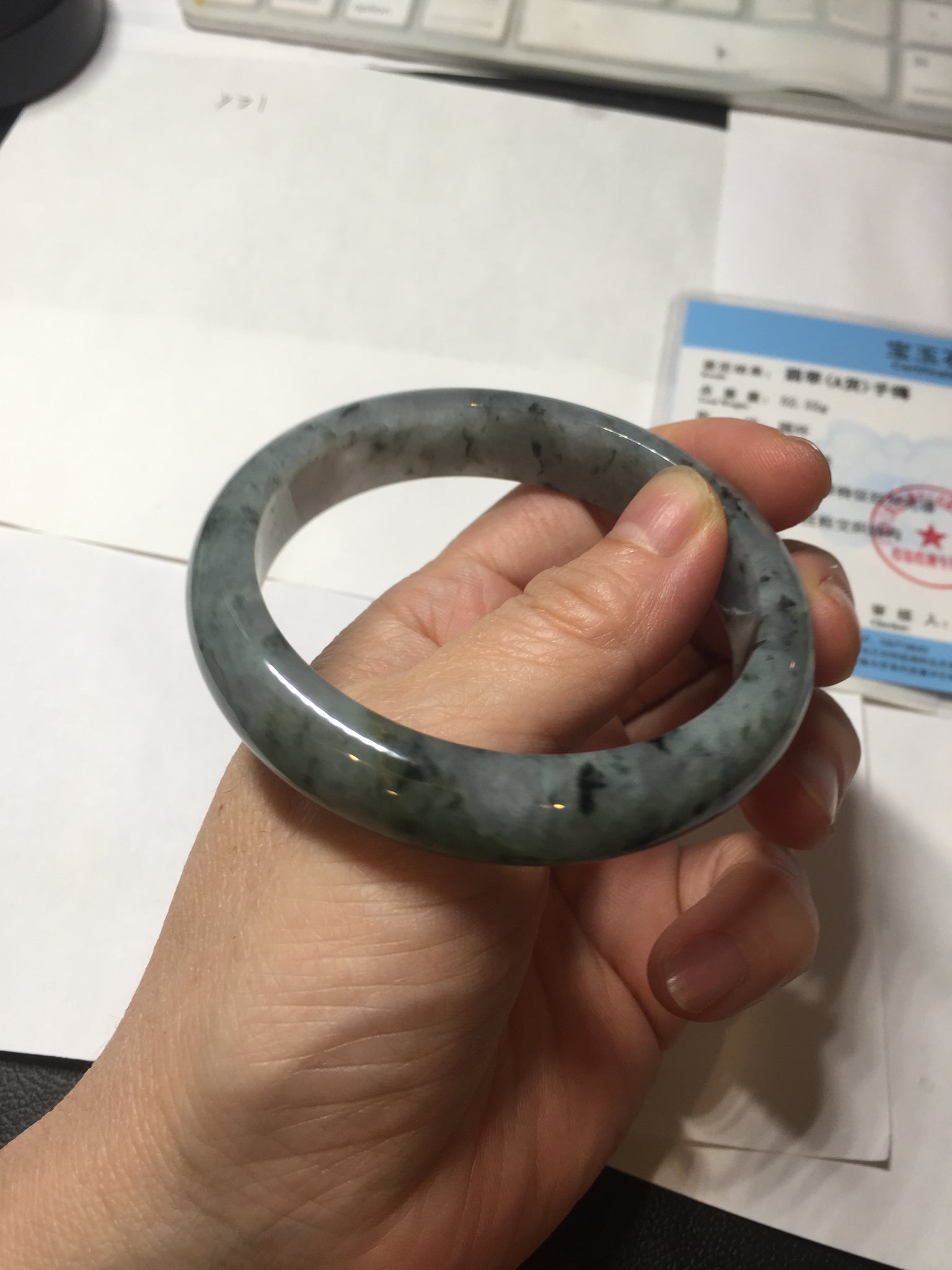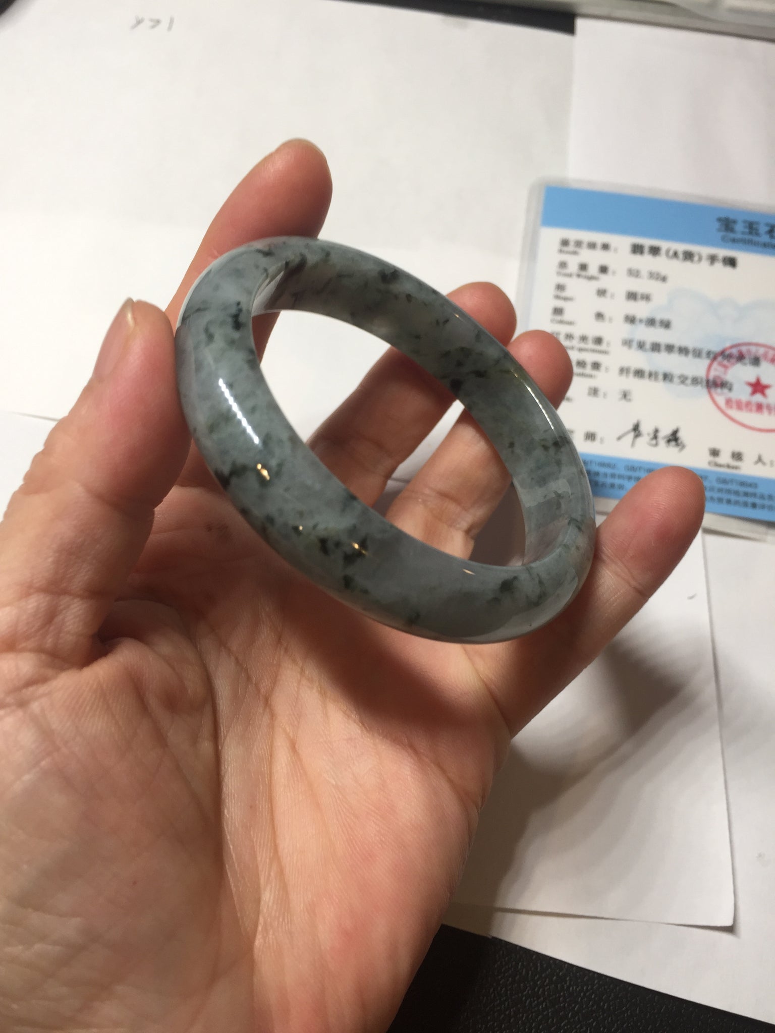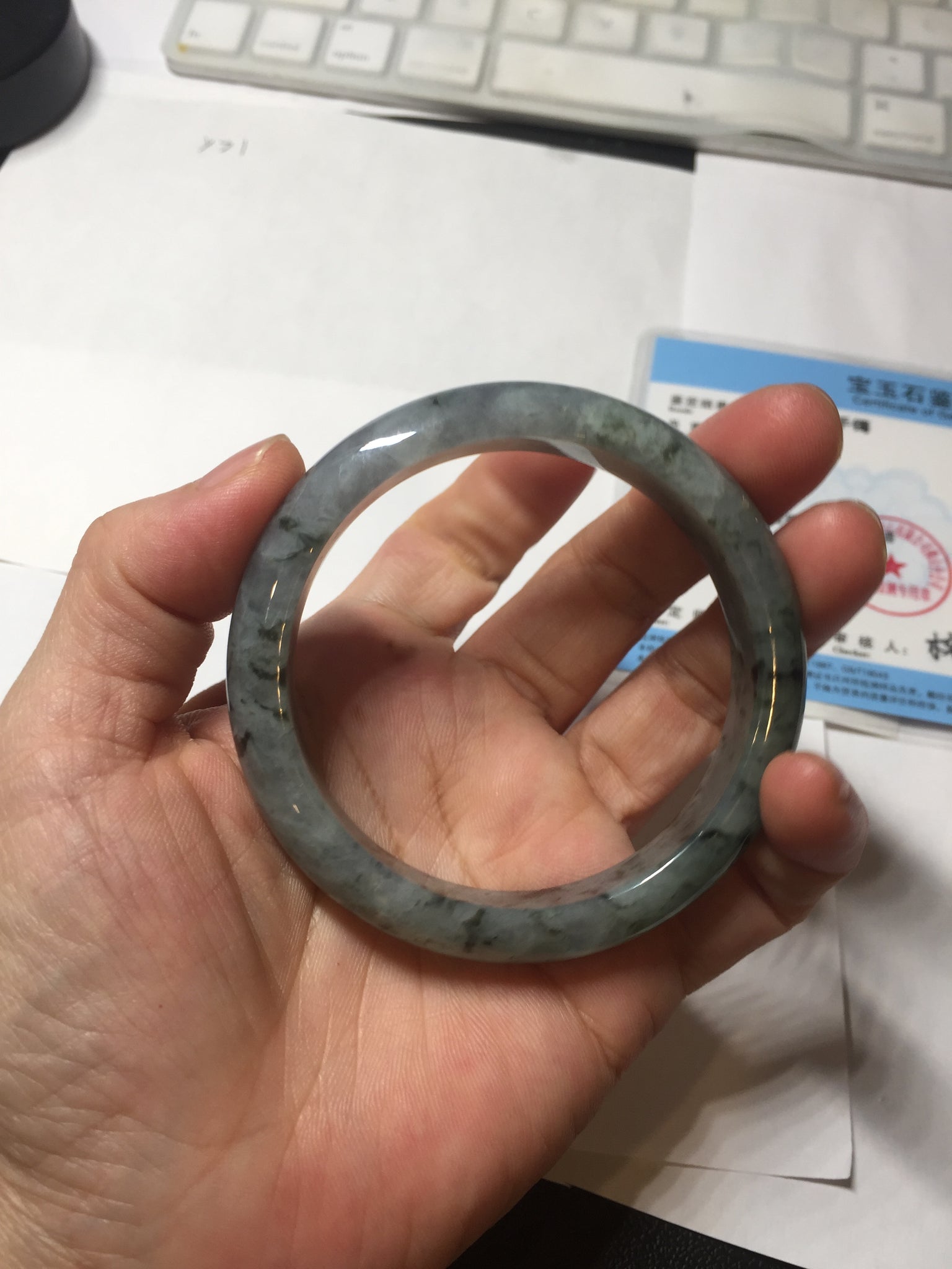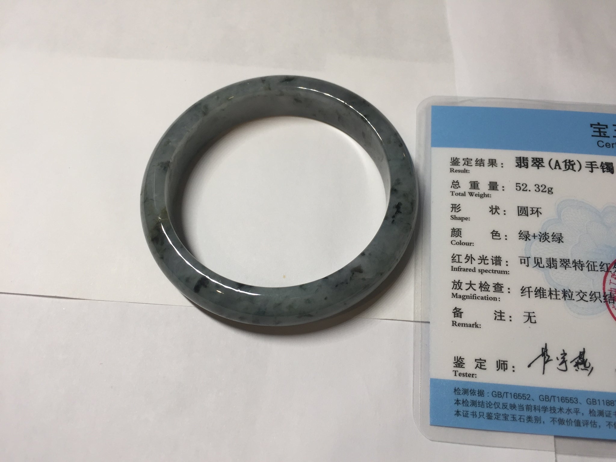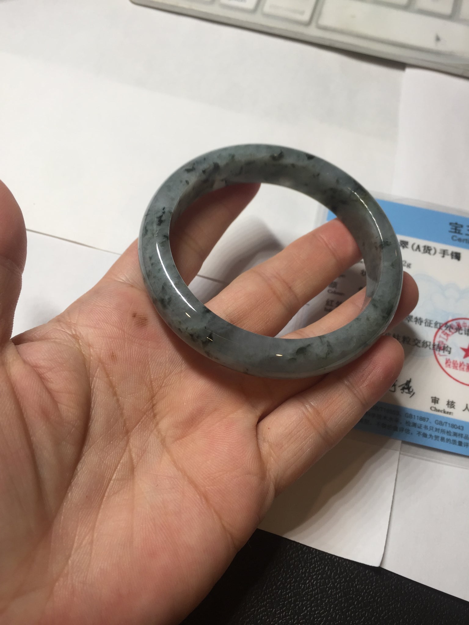 One around the bangle crack with a tiny amount of wax. Some surface cracks and small rough surfaces. The bangle is solid(Guaranteed!). Make high pitch sound when tapped. Some hairlines, cotton lines, cotton areas, and cotton spots. No transparent. The purple is super light. Way lighter than in the photos due to the purple color always more camera friendly.
