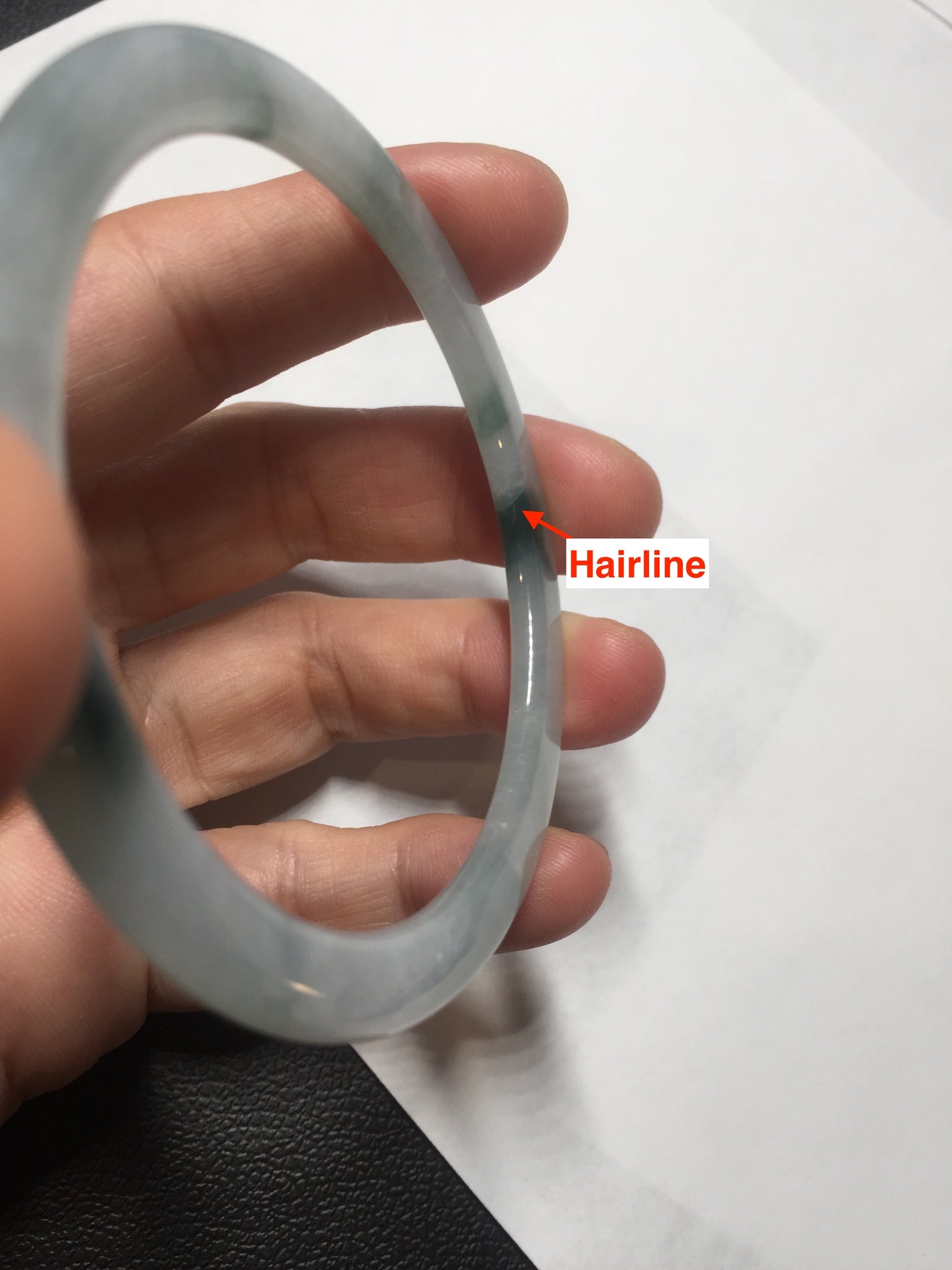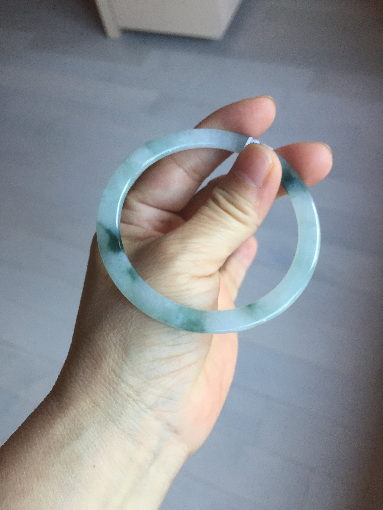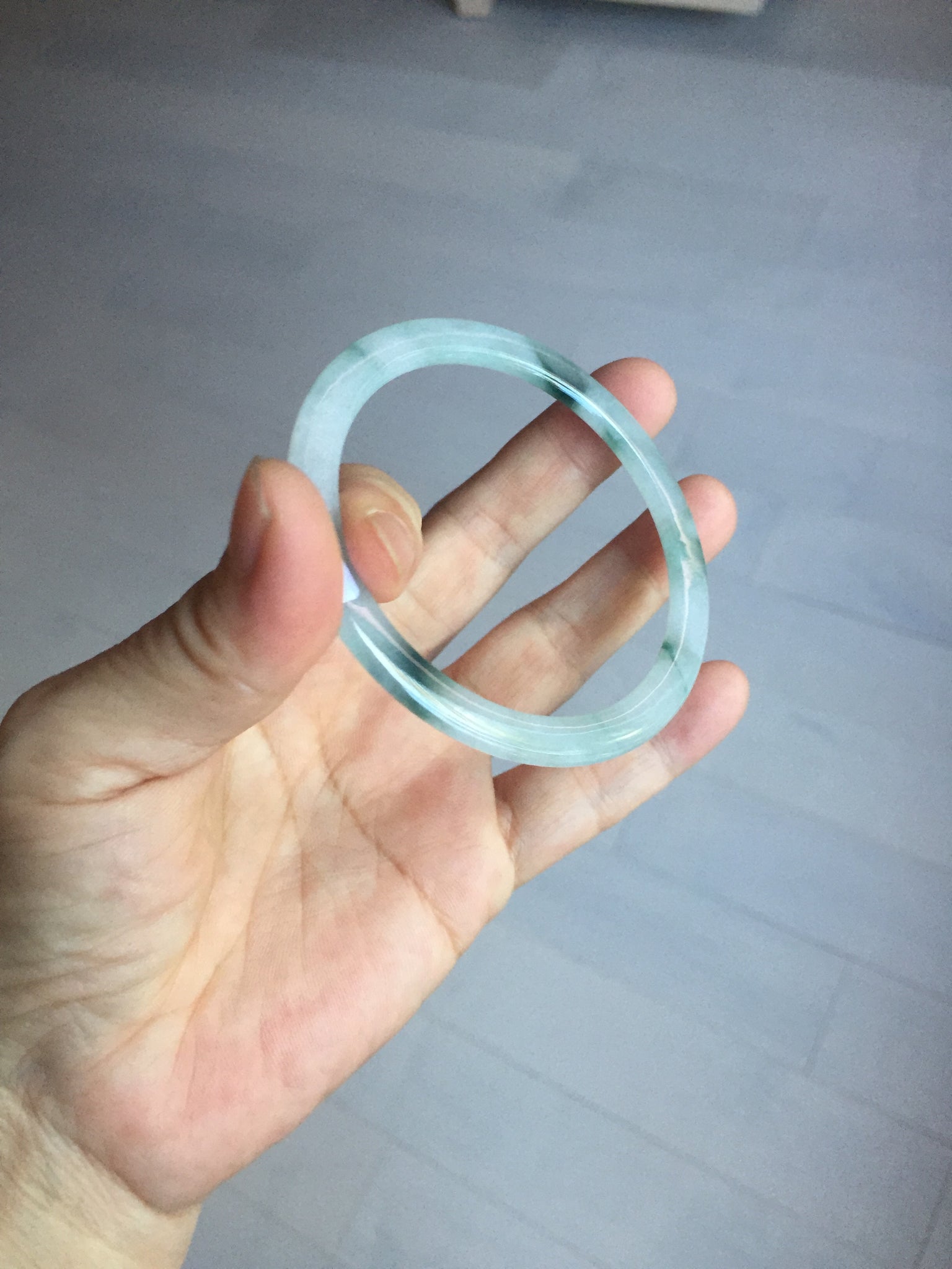 • Load image into Gallery viewer, 57.5mm certified 100% natural type A icy watery white beige with green floating flowers flat jadeite bangle PD26-5816