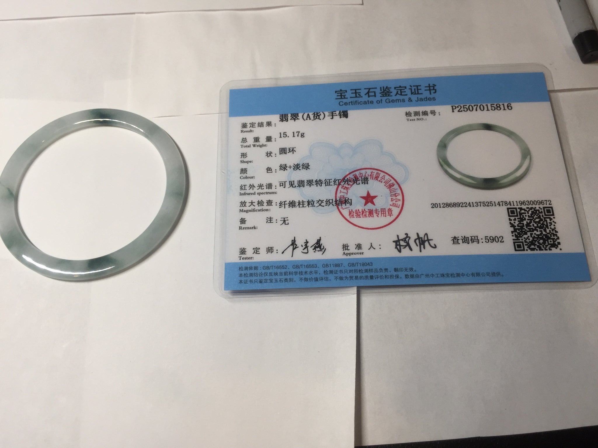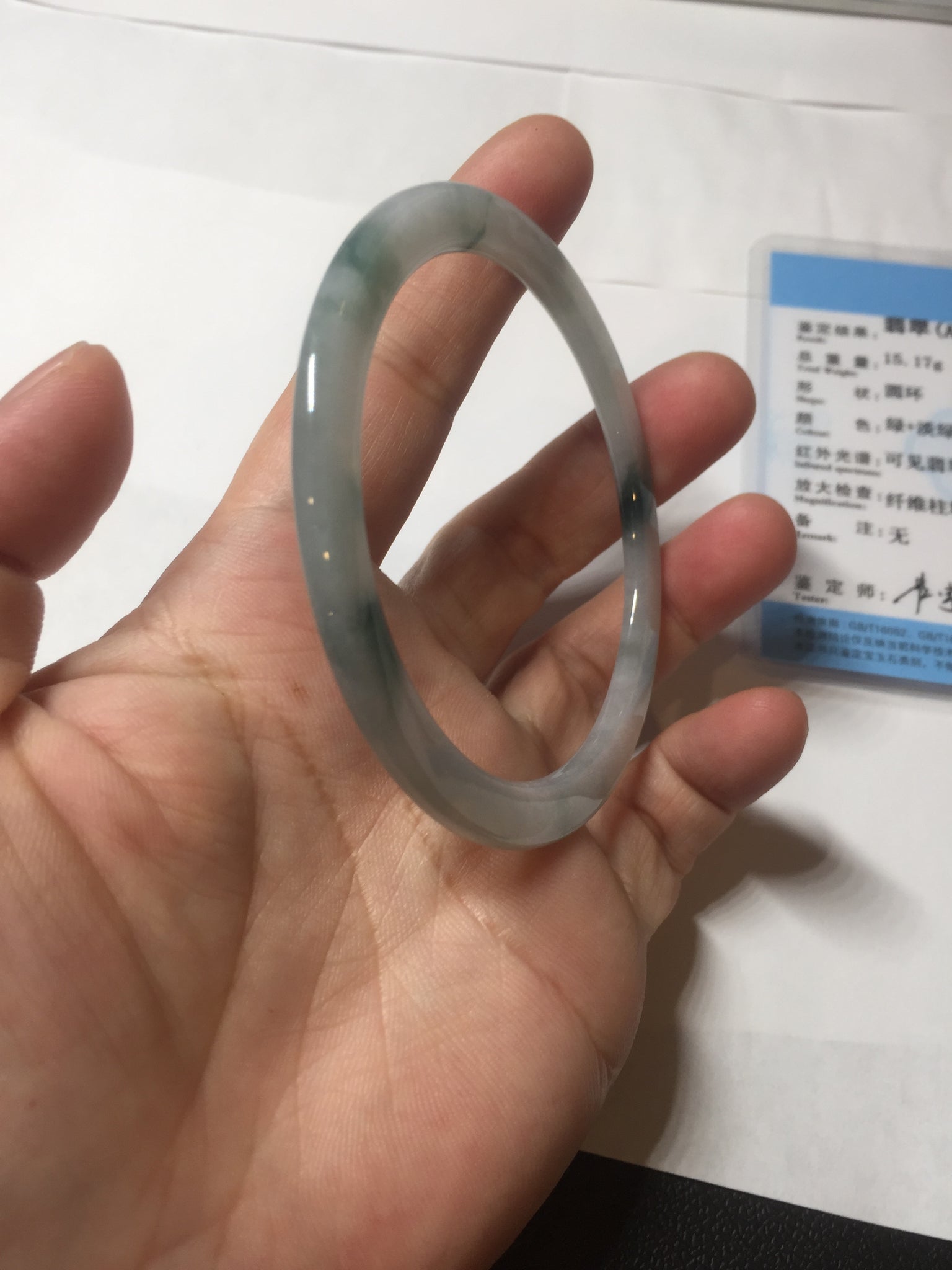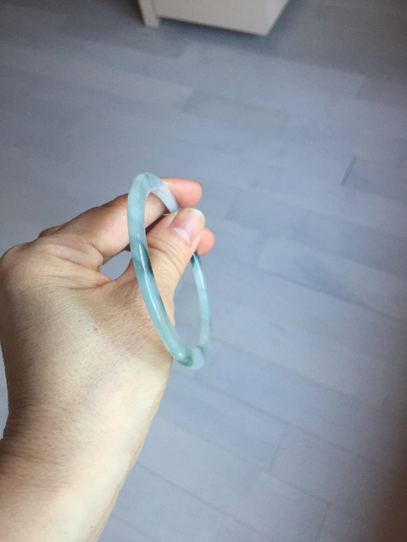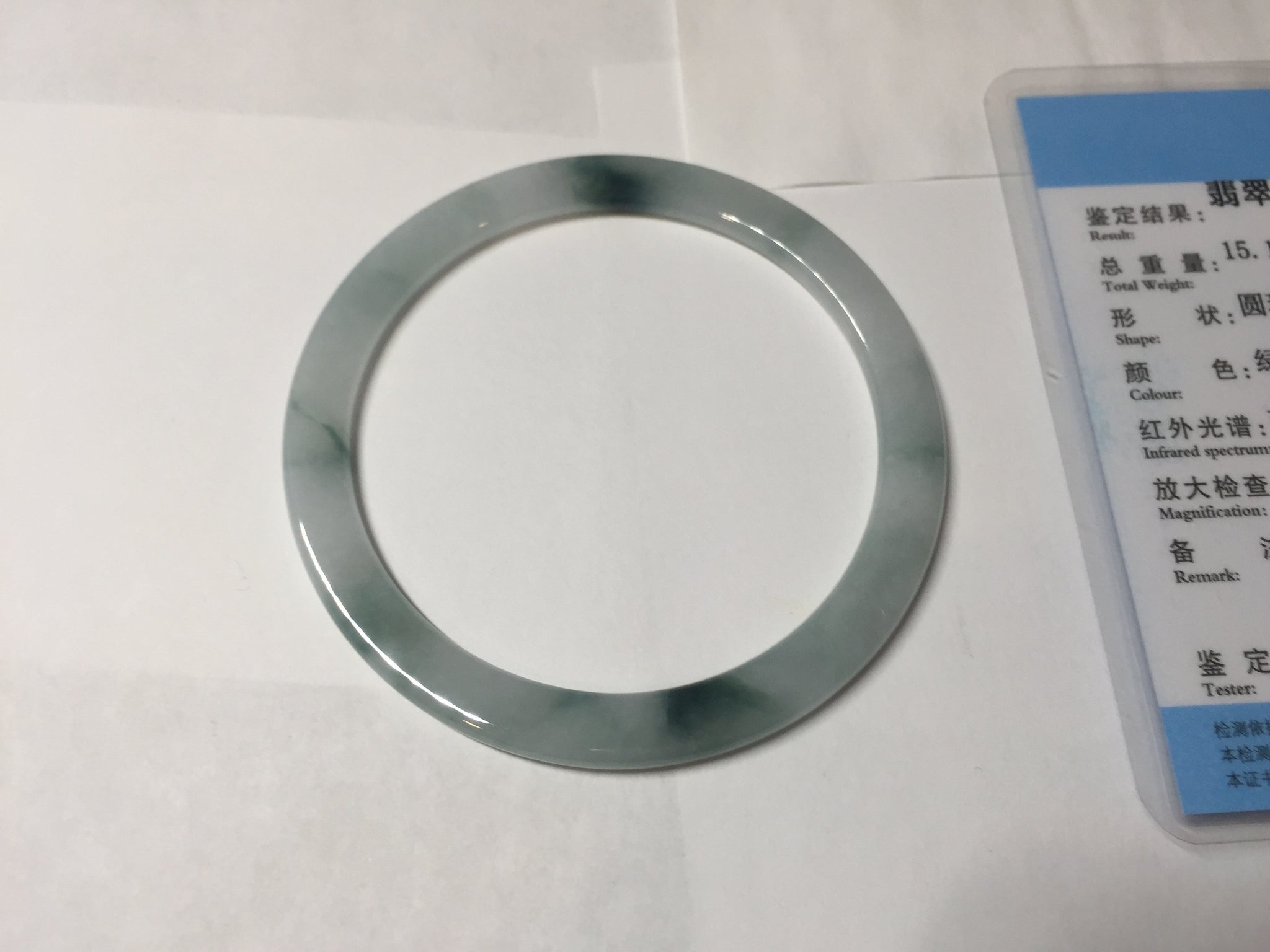 57.5mm certified 100% natural type A icy watery white beige with green floating flowers flat jadeite bangle PD26-5816