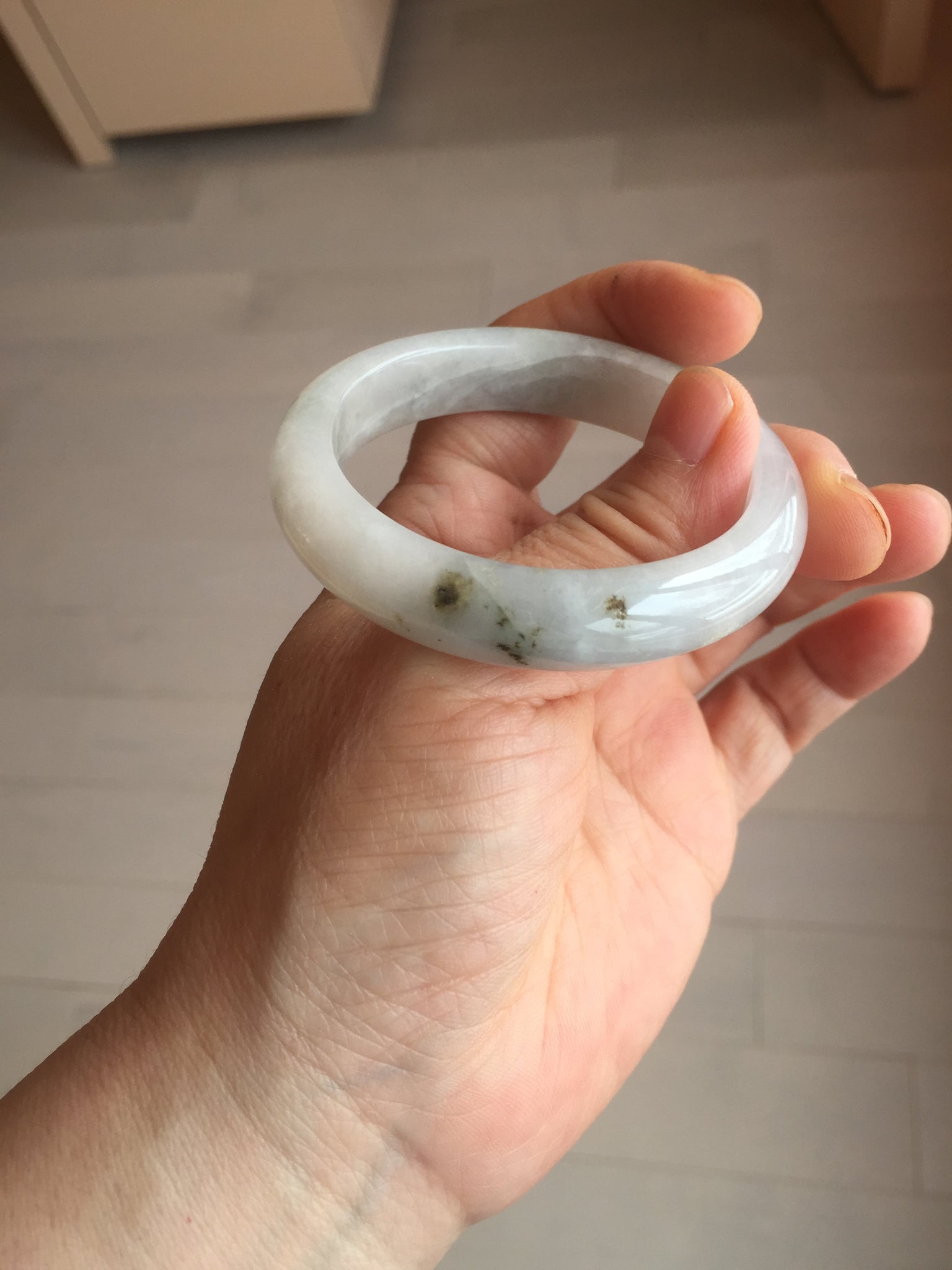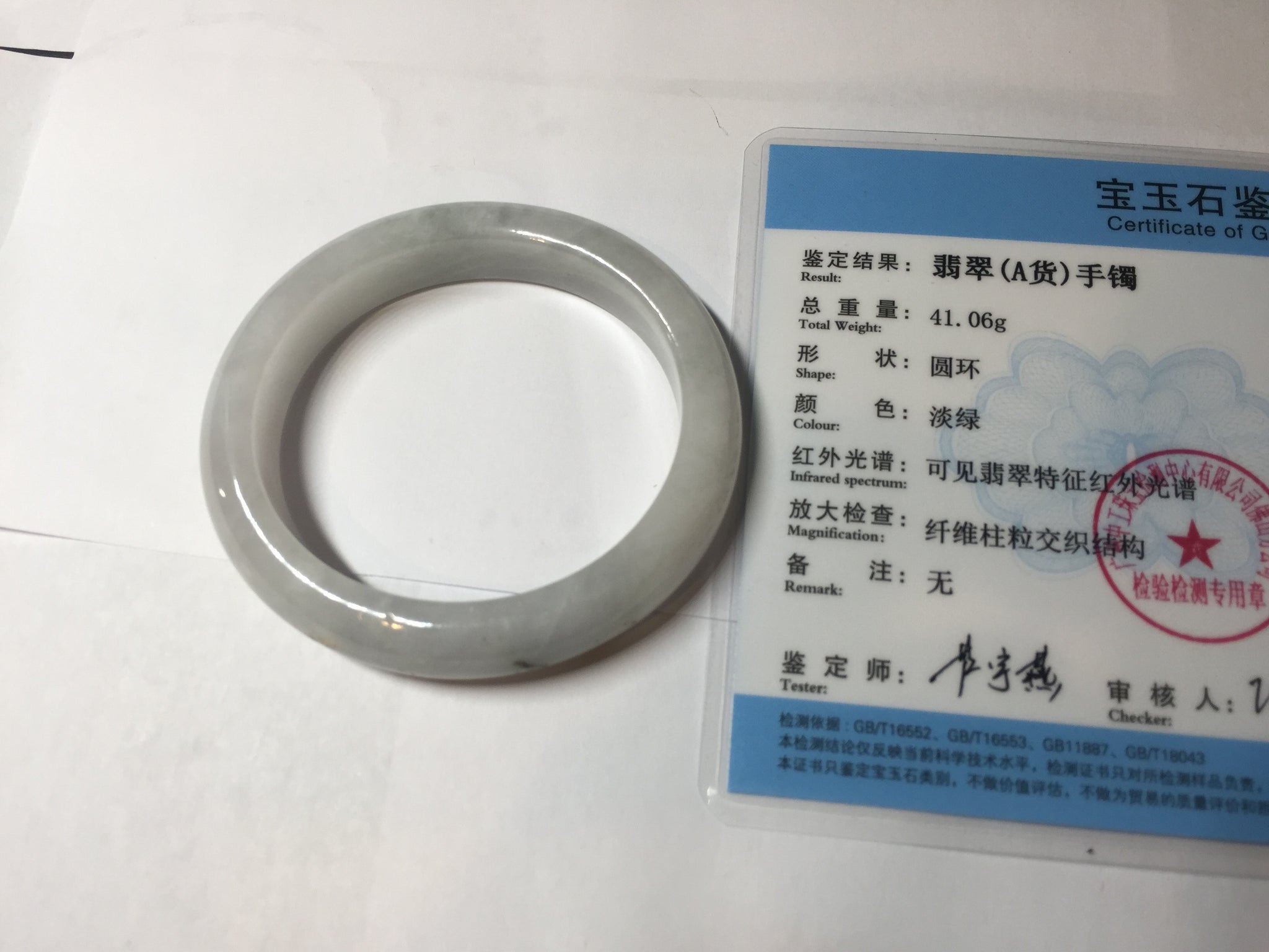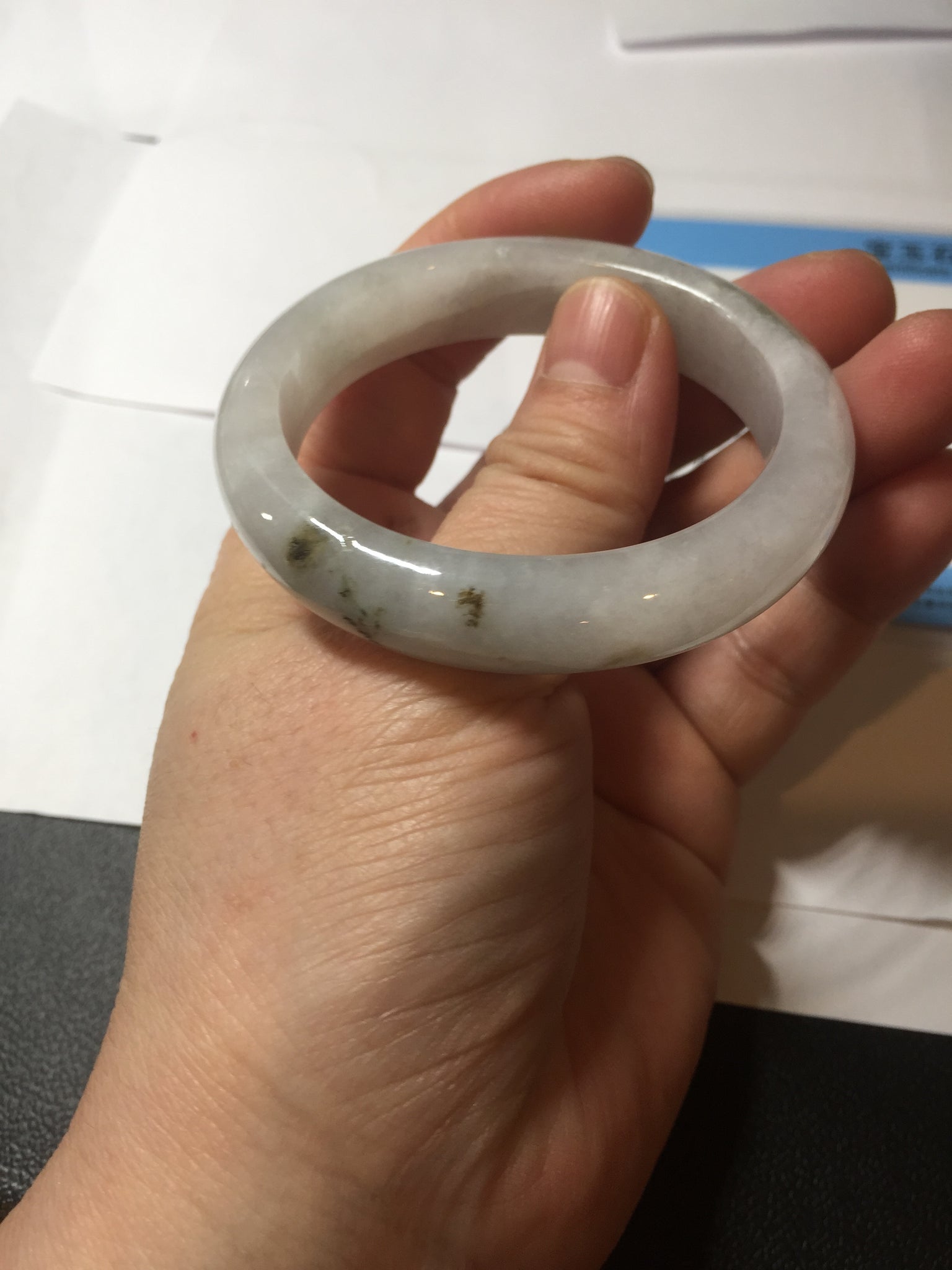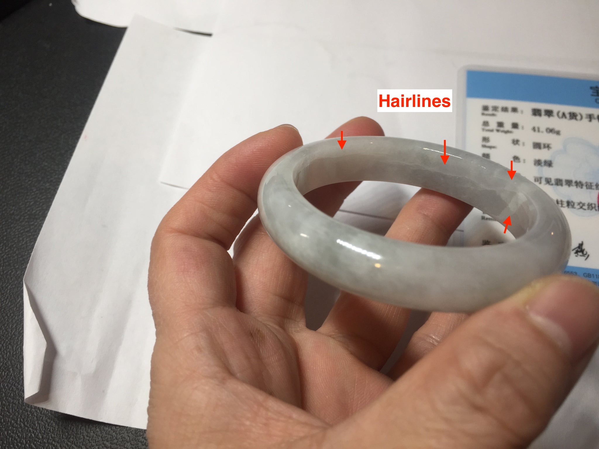 One crack. The bangle is solid. Some long hairlines. Some rough surfaces. Some cotton spots and lines.