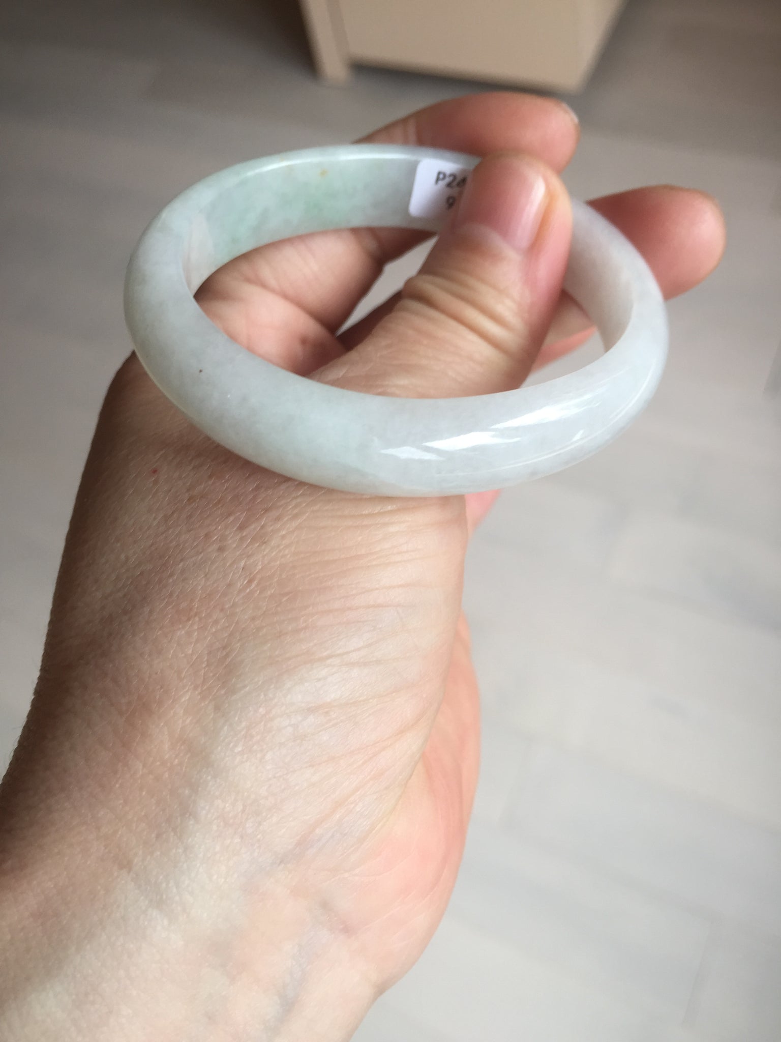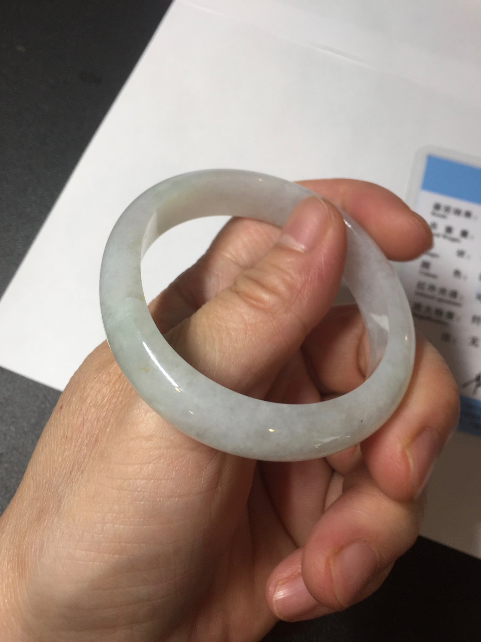 • Load image into Gallery viewer, 47.5mm certified 100% natural Type A icy watery green white  oval jadeite jade bangle BP46-9356