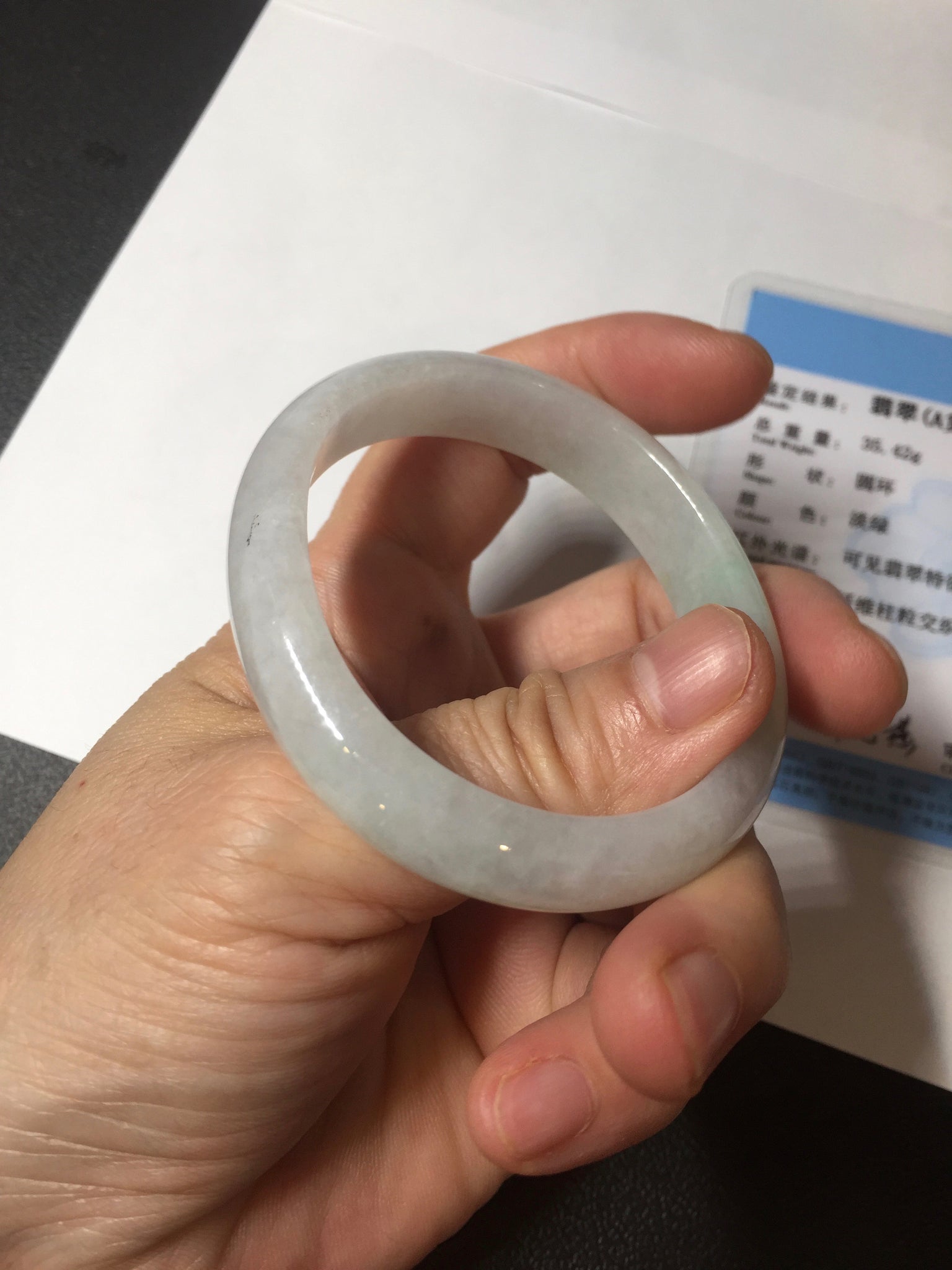 47.5mm certified 100% natural Type A icy watery green white  oval jadeite jade bangle BP46-9356
