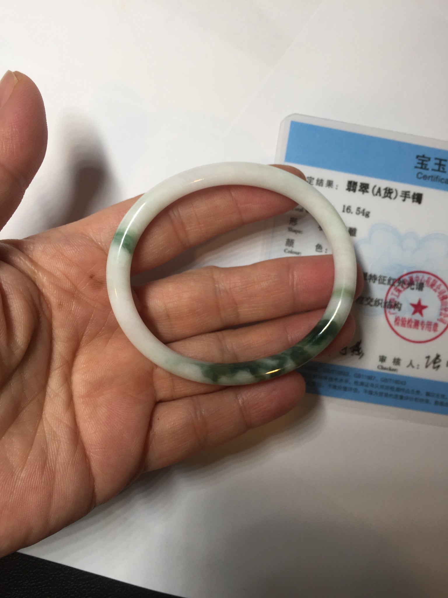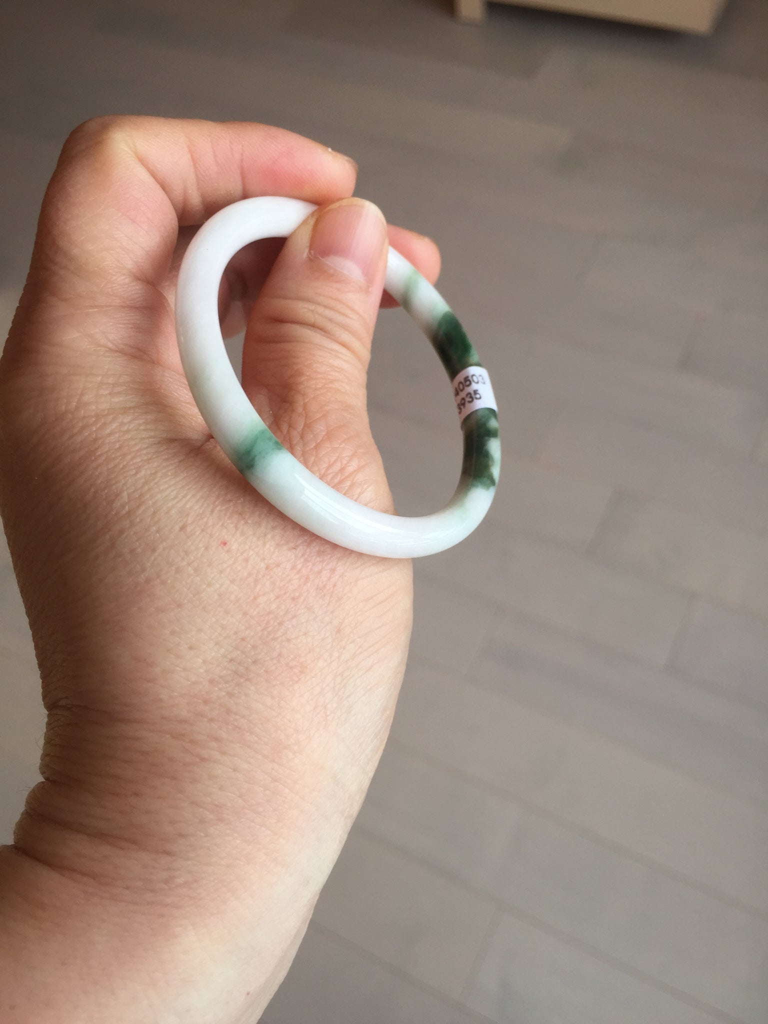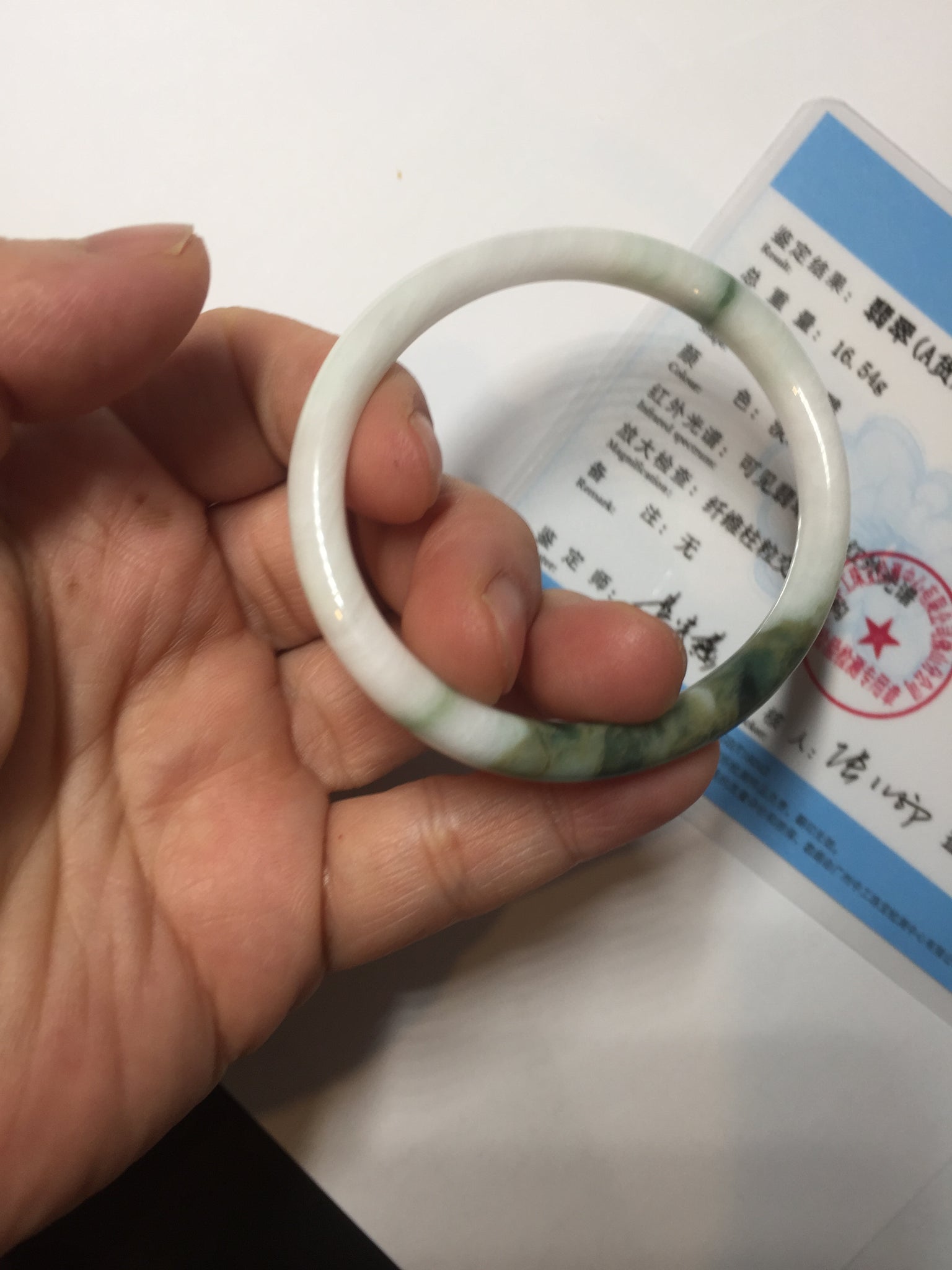 49mm certified 100% natural Type A dark green white camouflage color oval round cut jadeite jade bangle BG81-3935