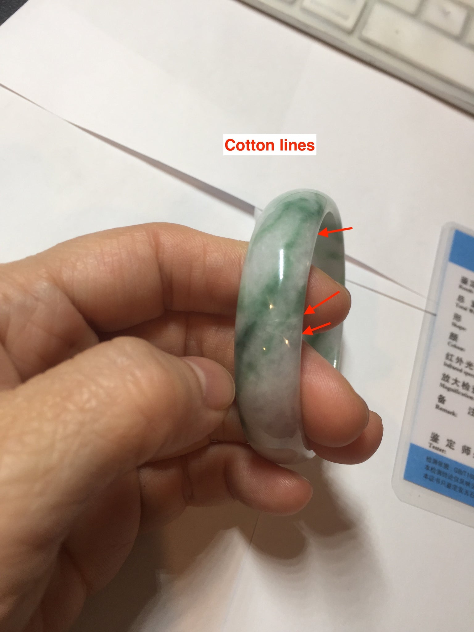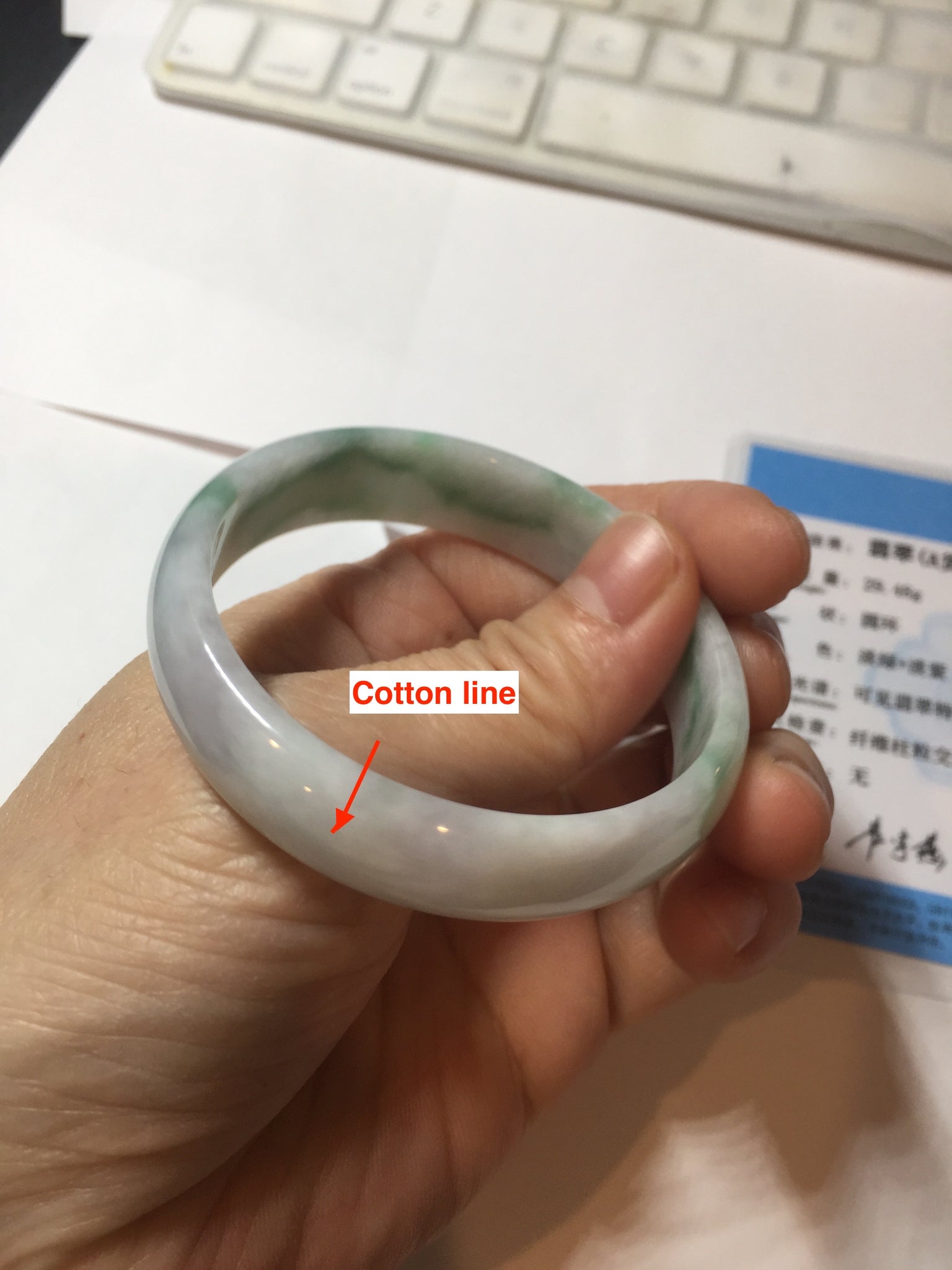 No crack. No hairline. The texture is not so delicate. Some structure lines, cotton lines, cotton areas, and cotton spots. No transparent. The purple is lighter than in the photos due to the purple color always more camera friendly