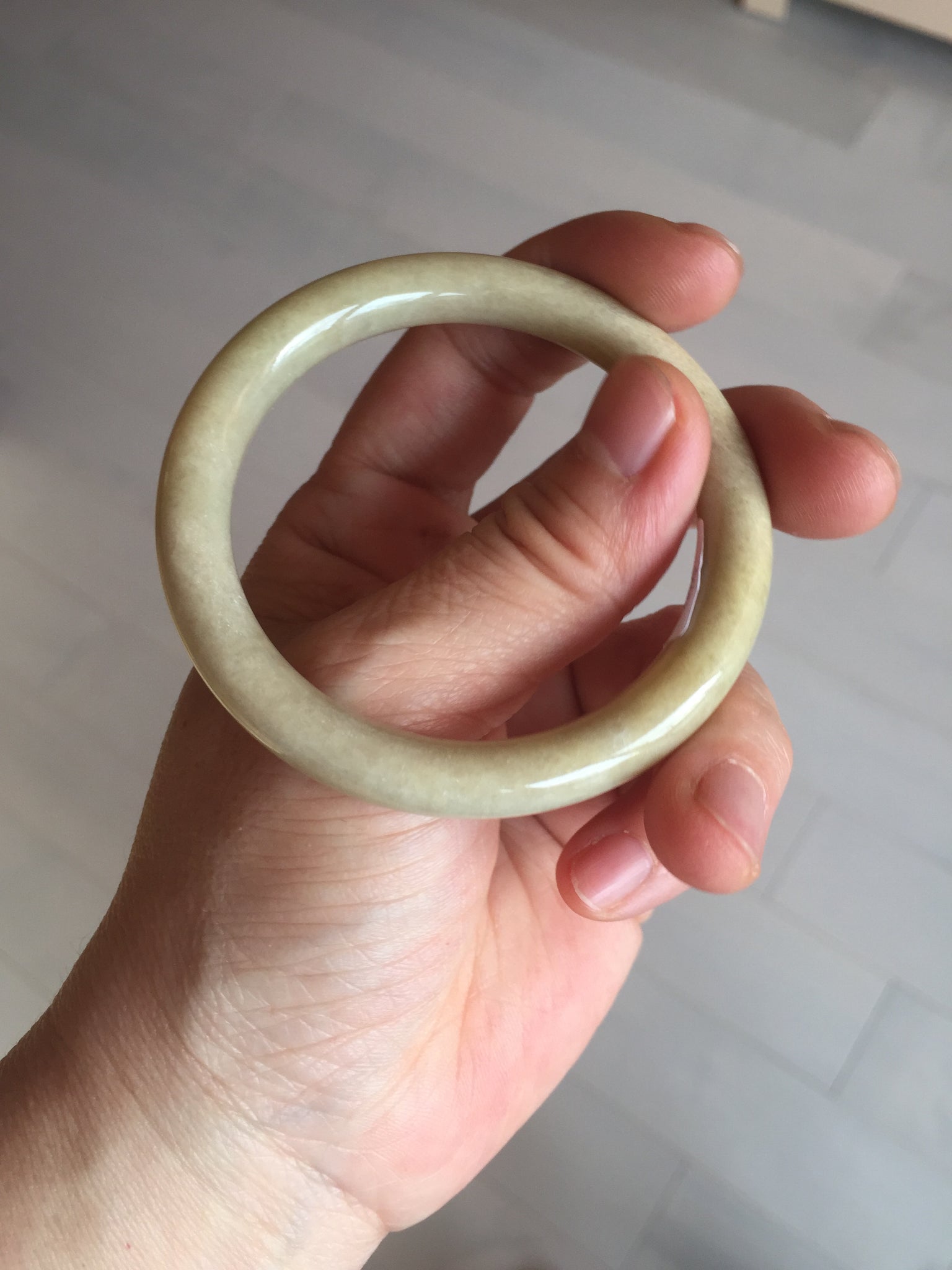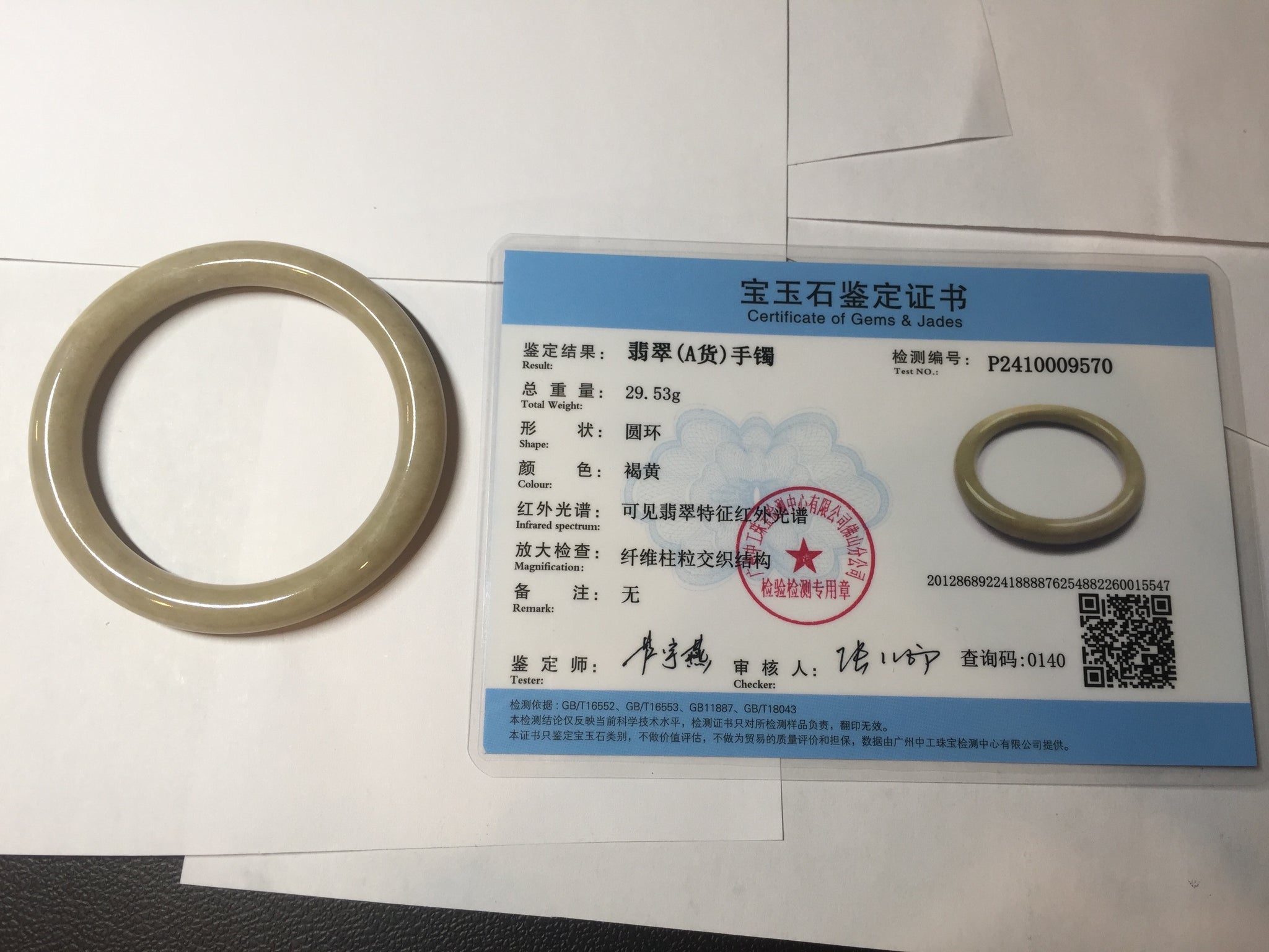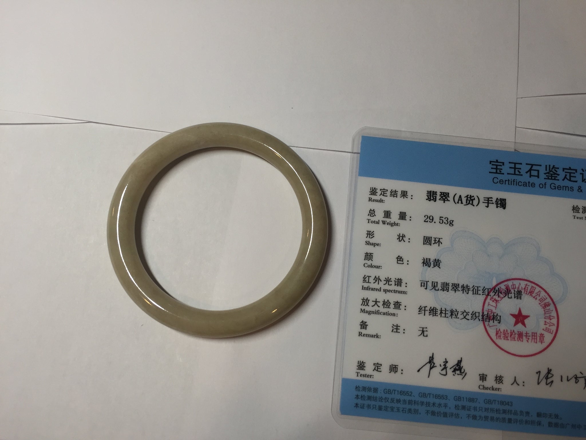 50.5mm certified 100% natural Type A light yellow round cut jadeite jade bangle BS8-9570