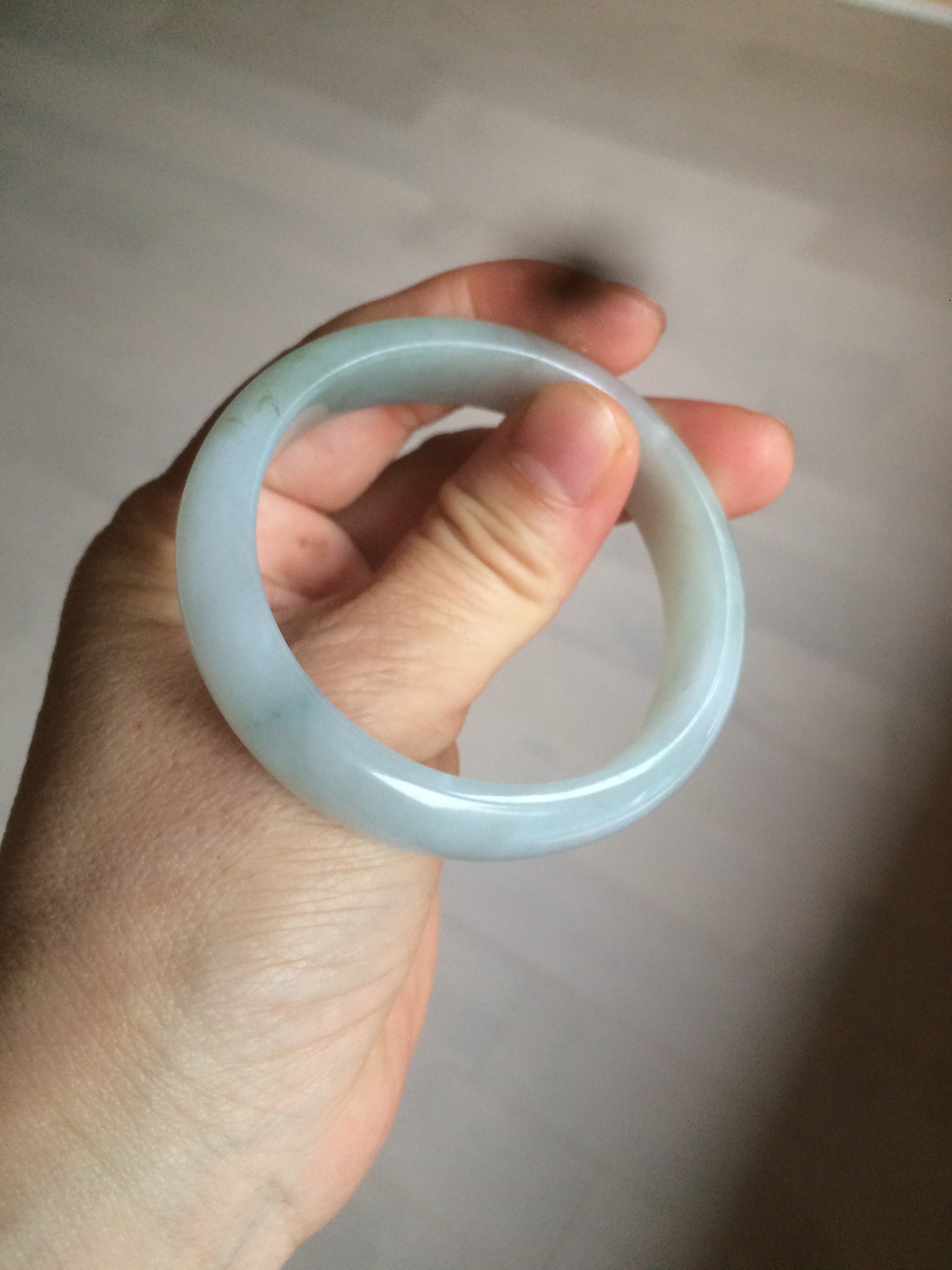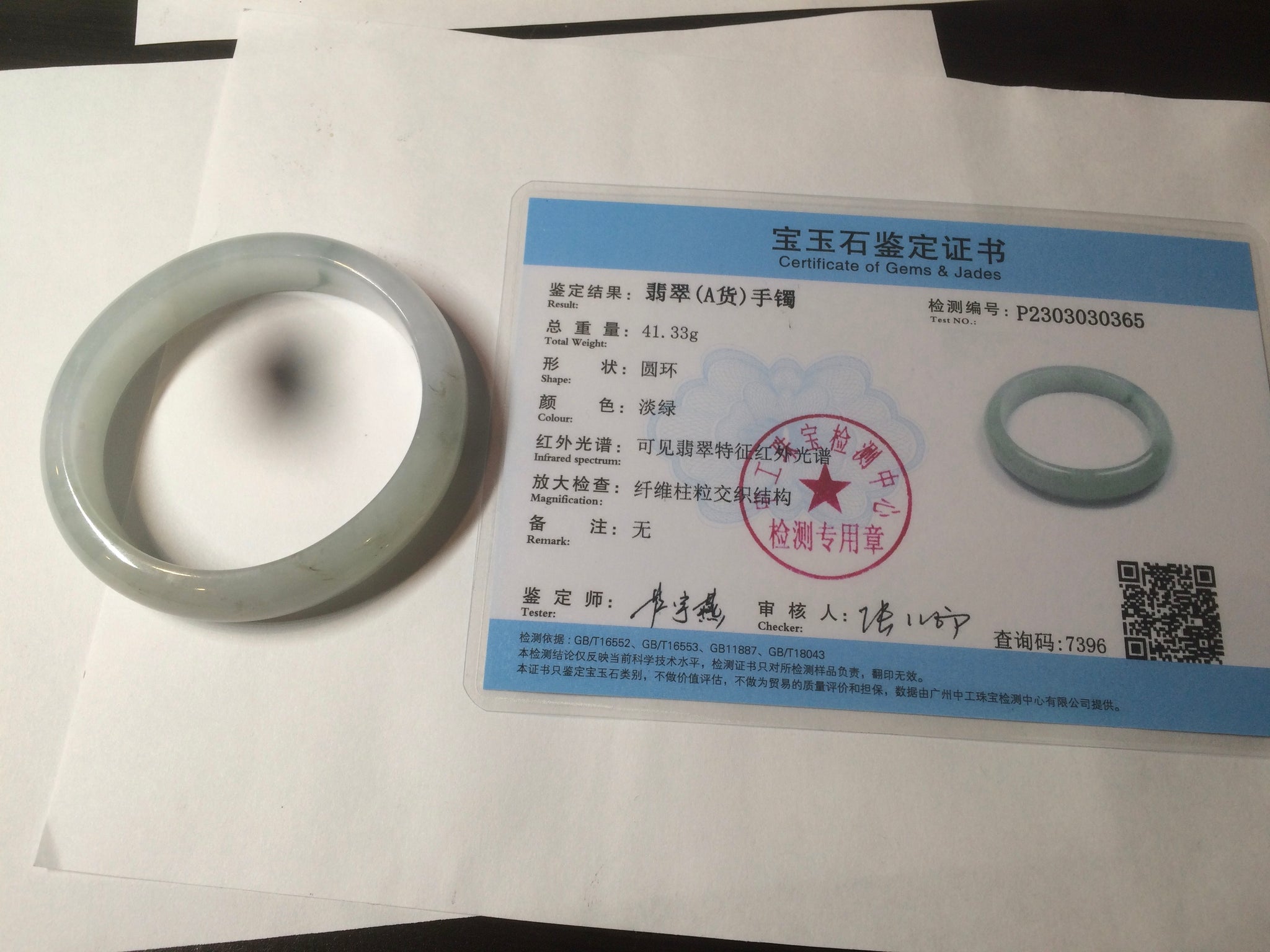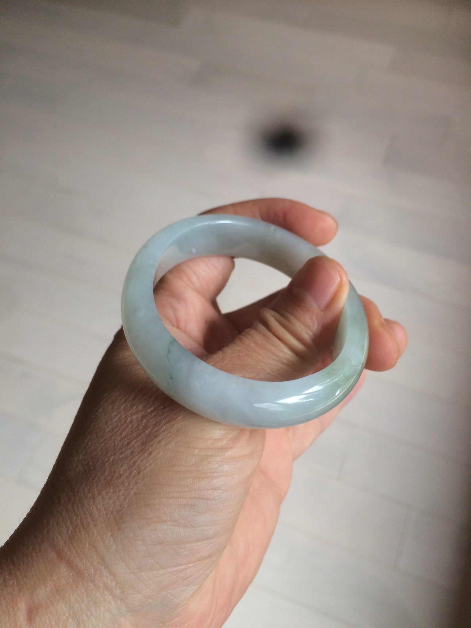 49mm Certified Type A 100% Natural light green white oval Jadeite Jade bangle AX56-0365