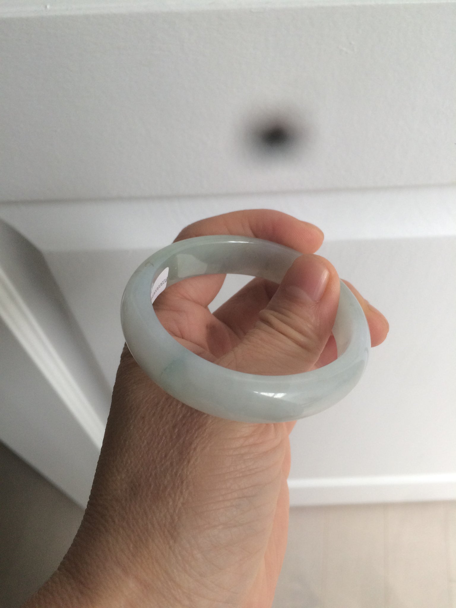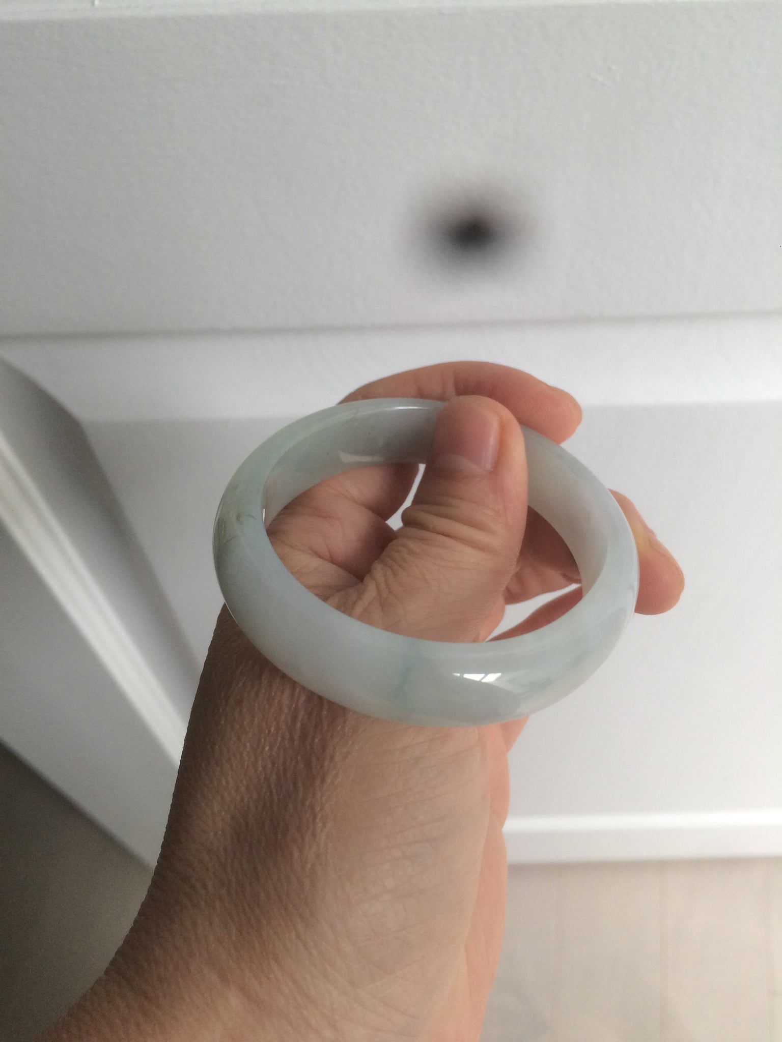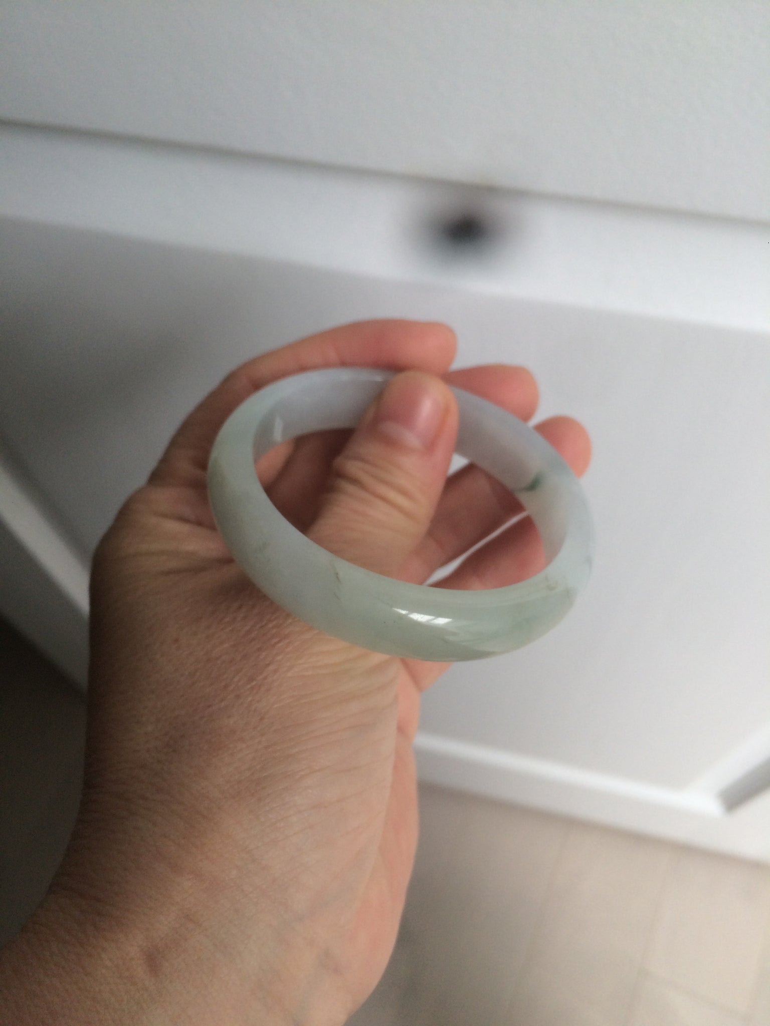 • Load image into Gallery viewer, 49mm Certified Type A 100% Natural light green white oval Jadeite Jade bangle AX56-0365