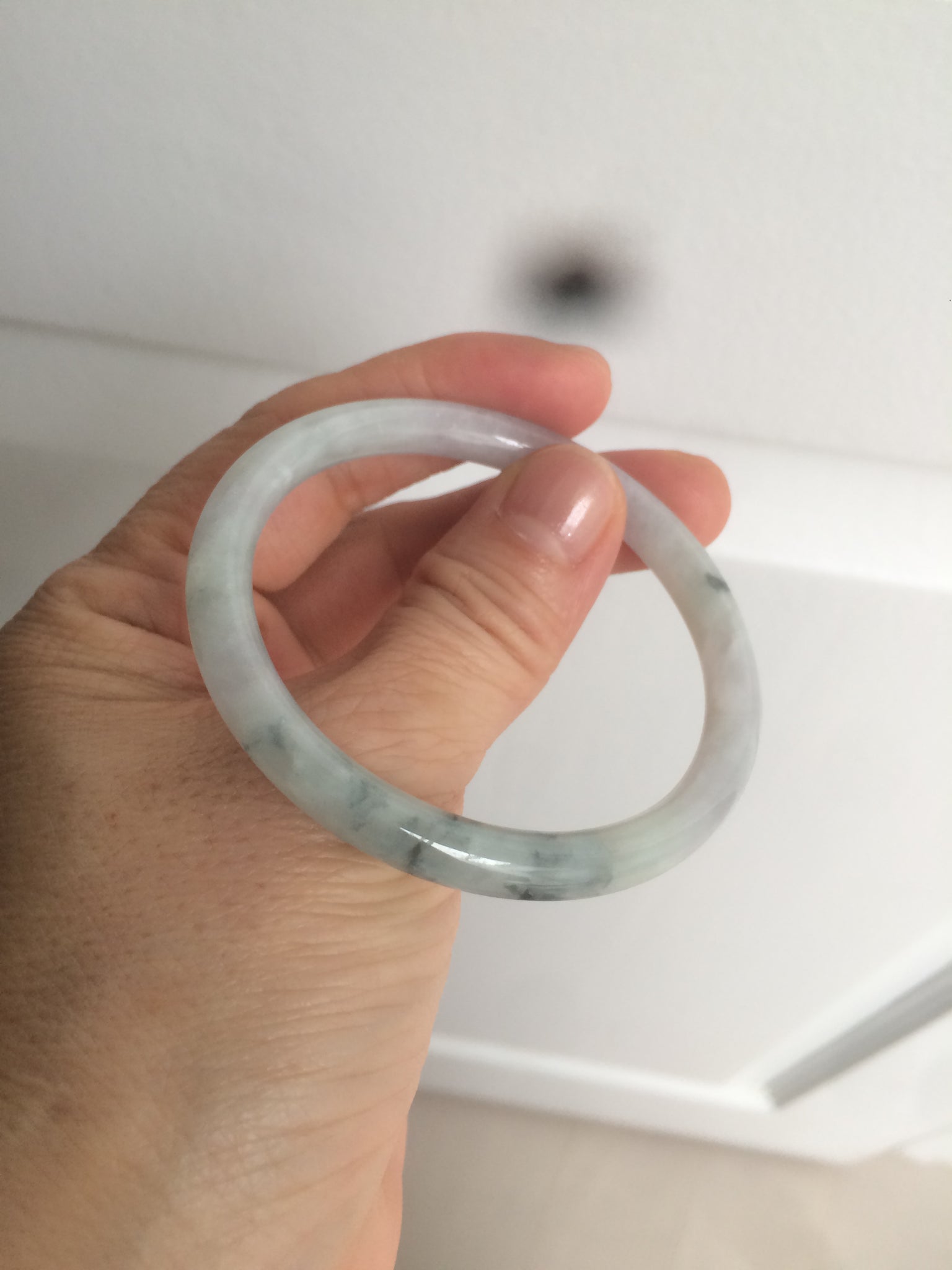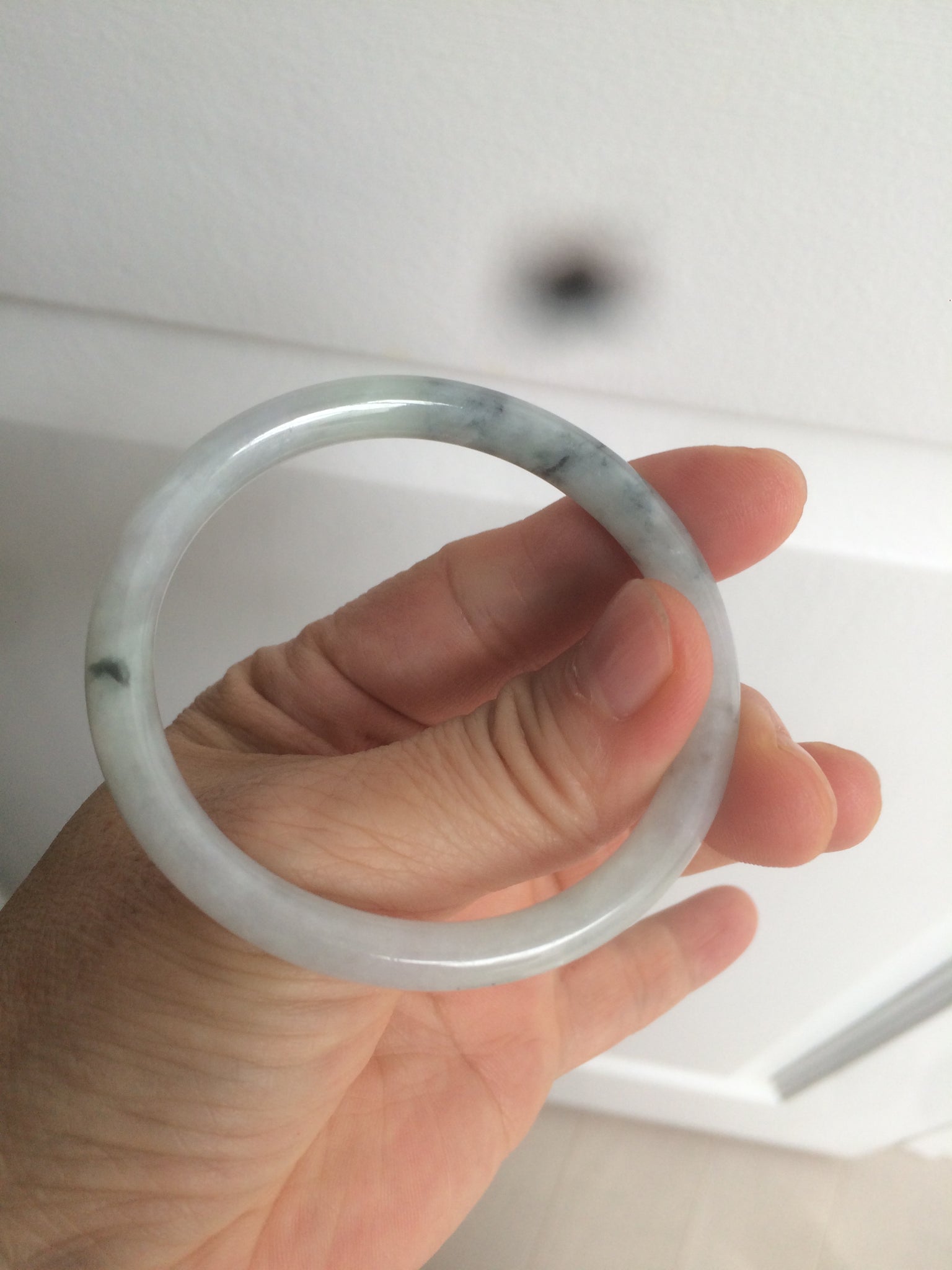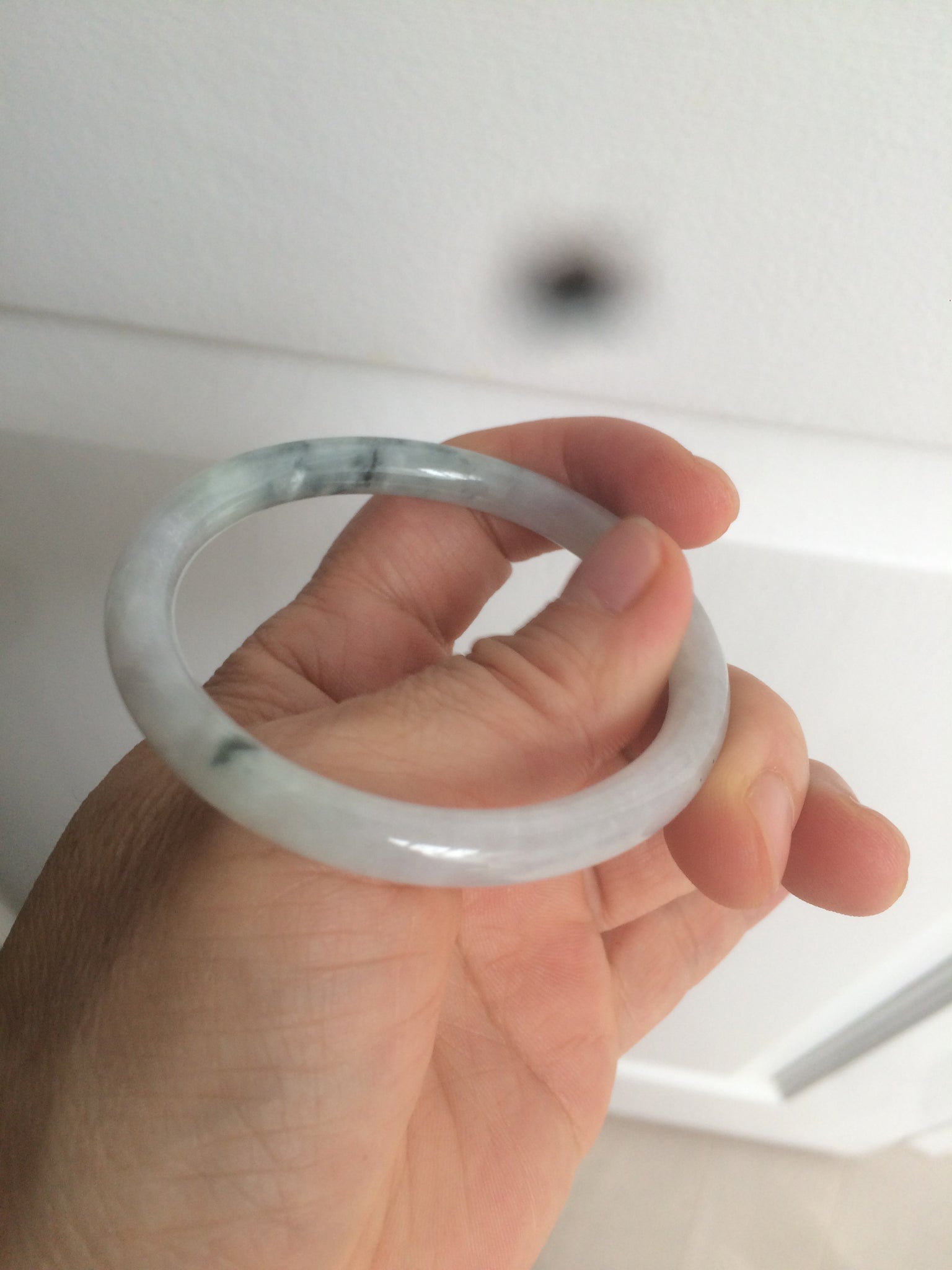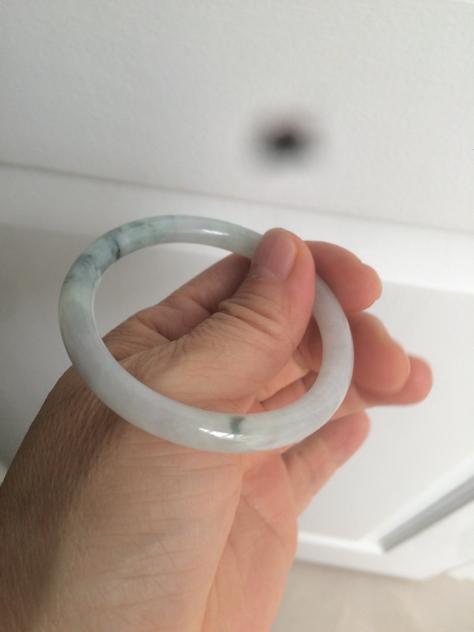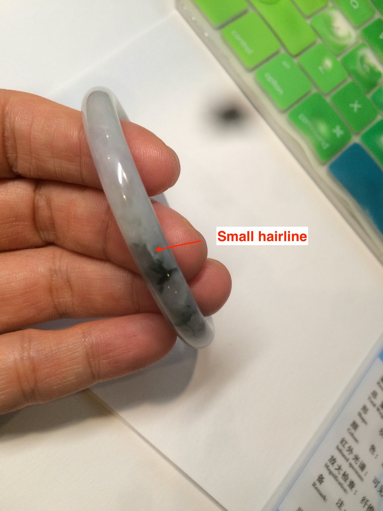 49.5mm Certified Type A 100% Natural icy light green purple round cut oval Jadeite Jade bangle AQ32-2403