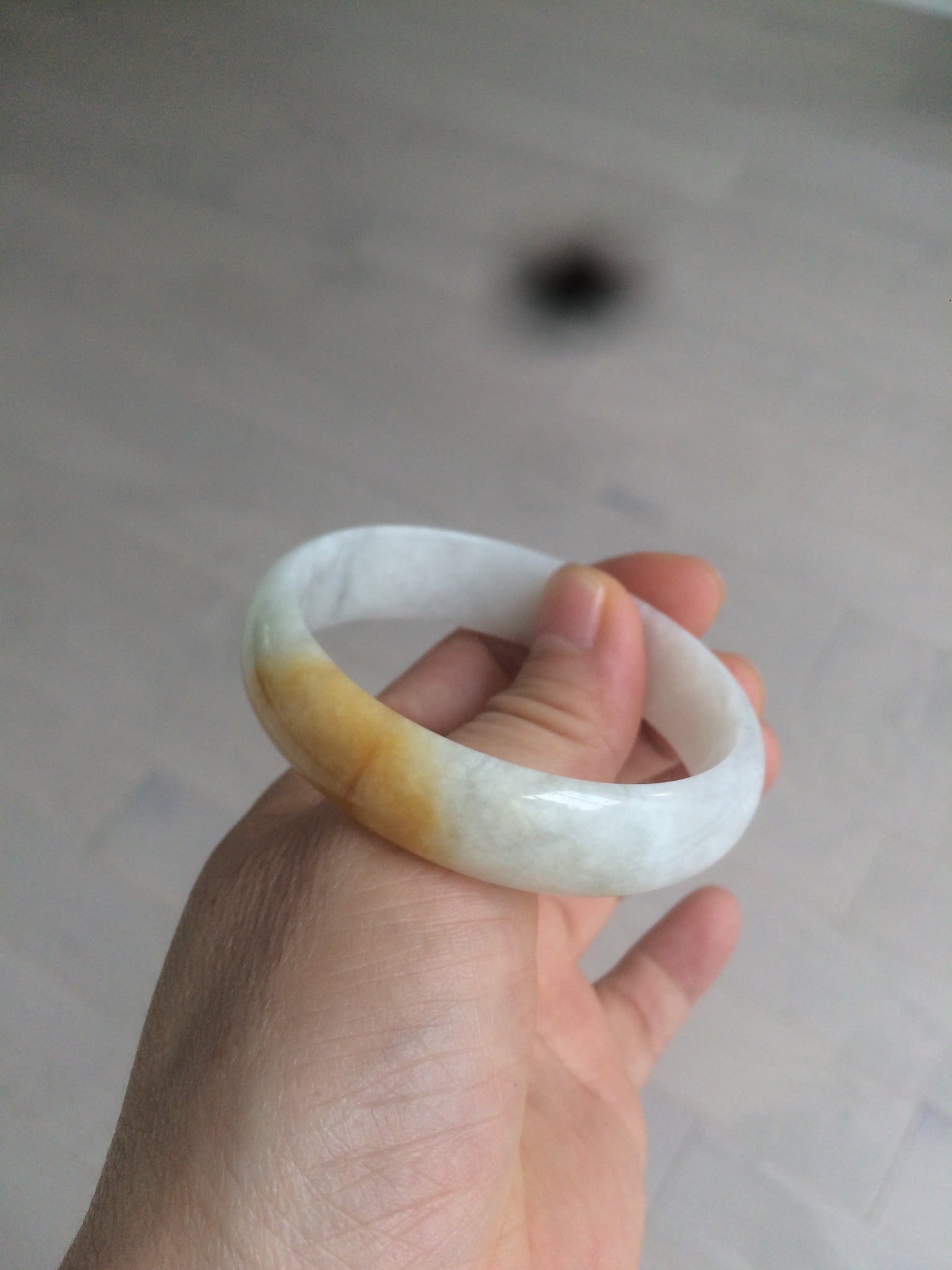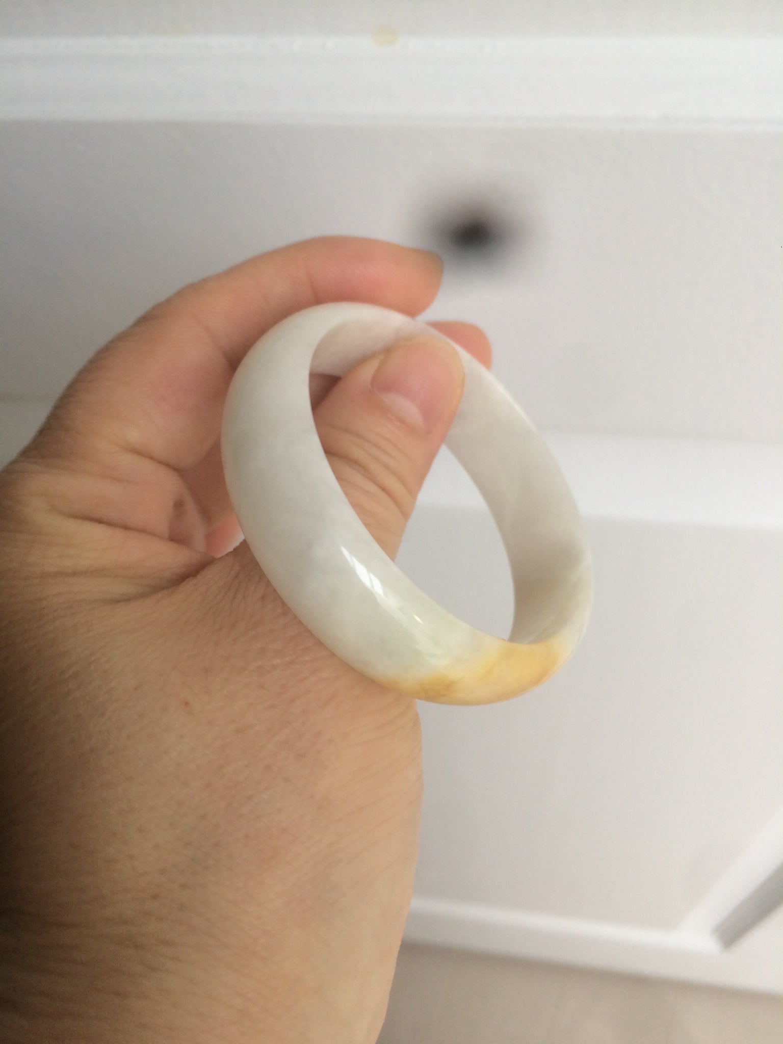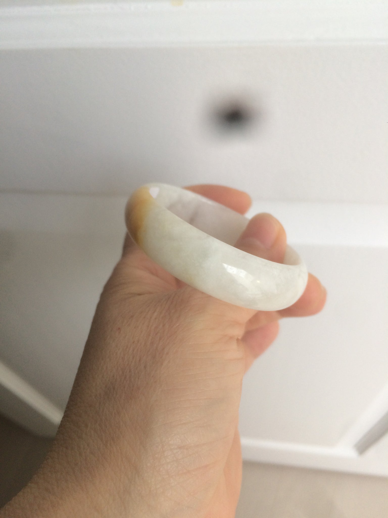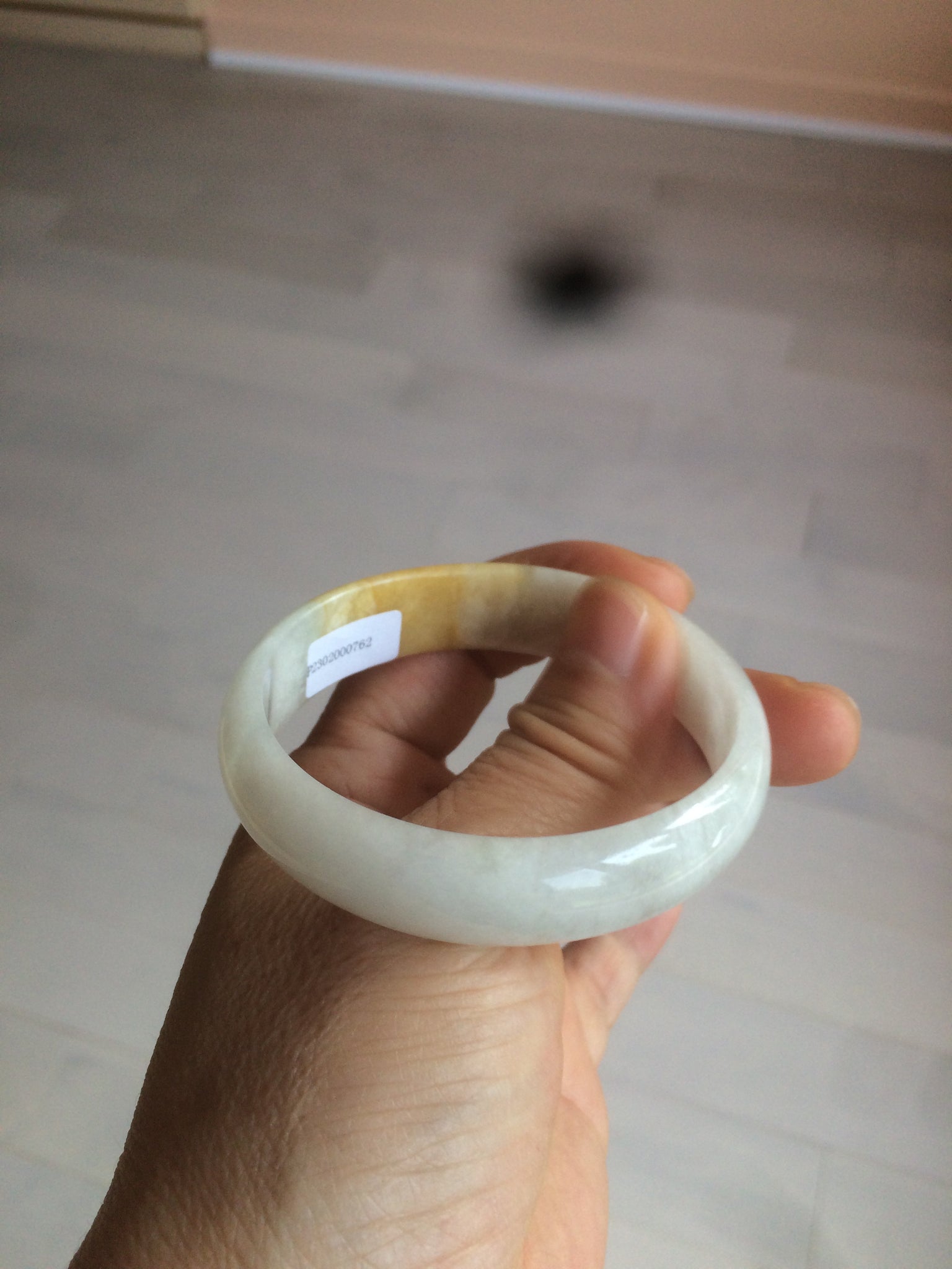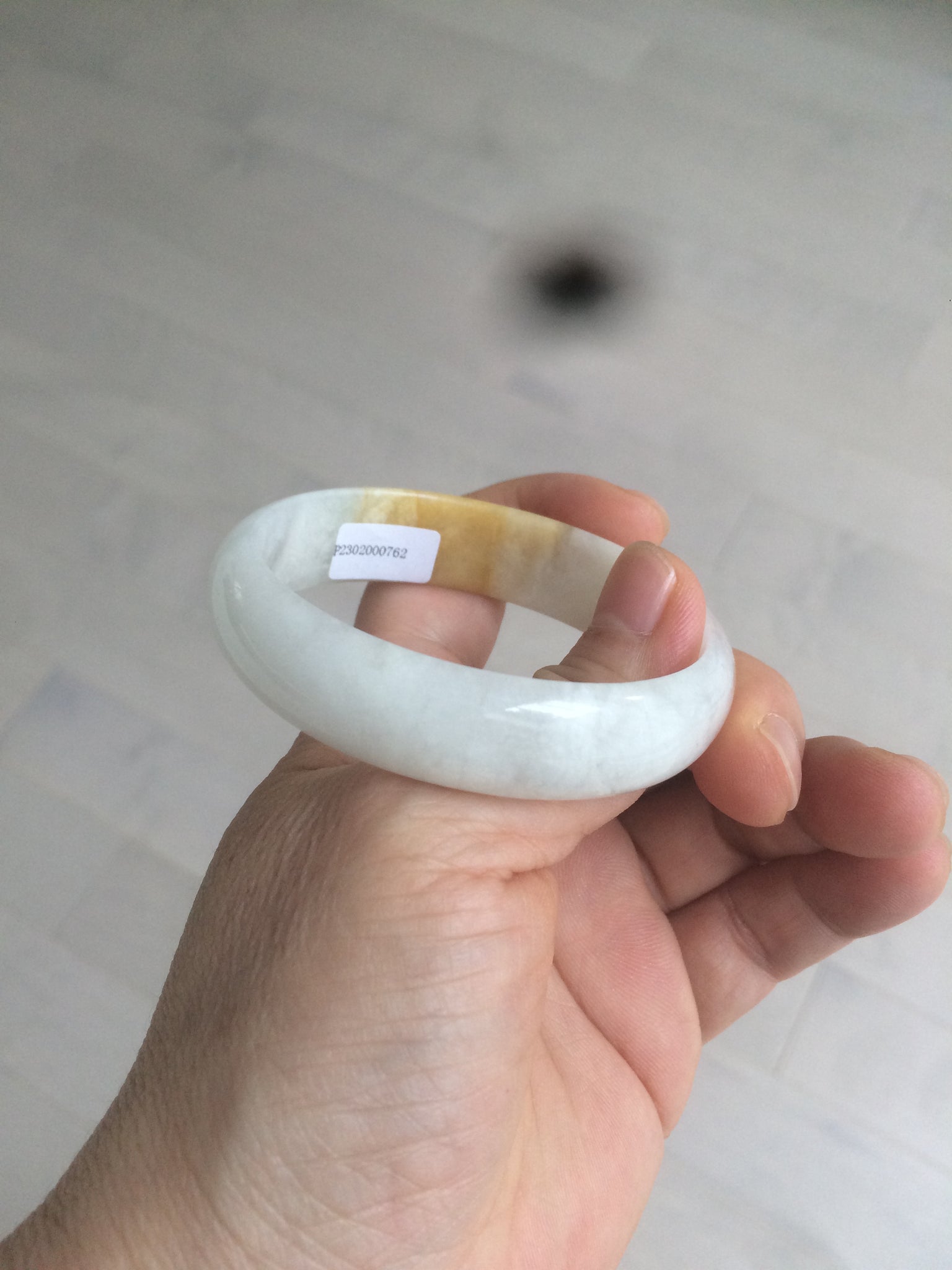 50mm Certified Type A 100% Natural yellow/white oval shape Jadeite Jade bangle AY16-0762