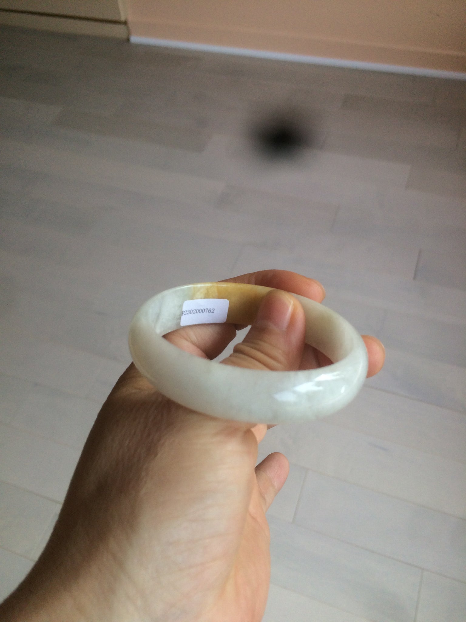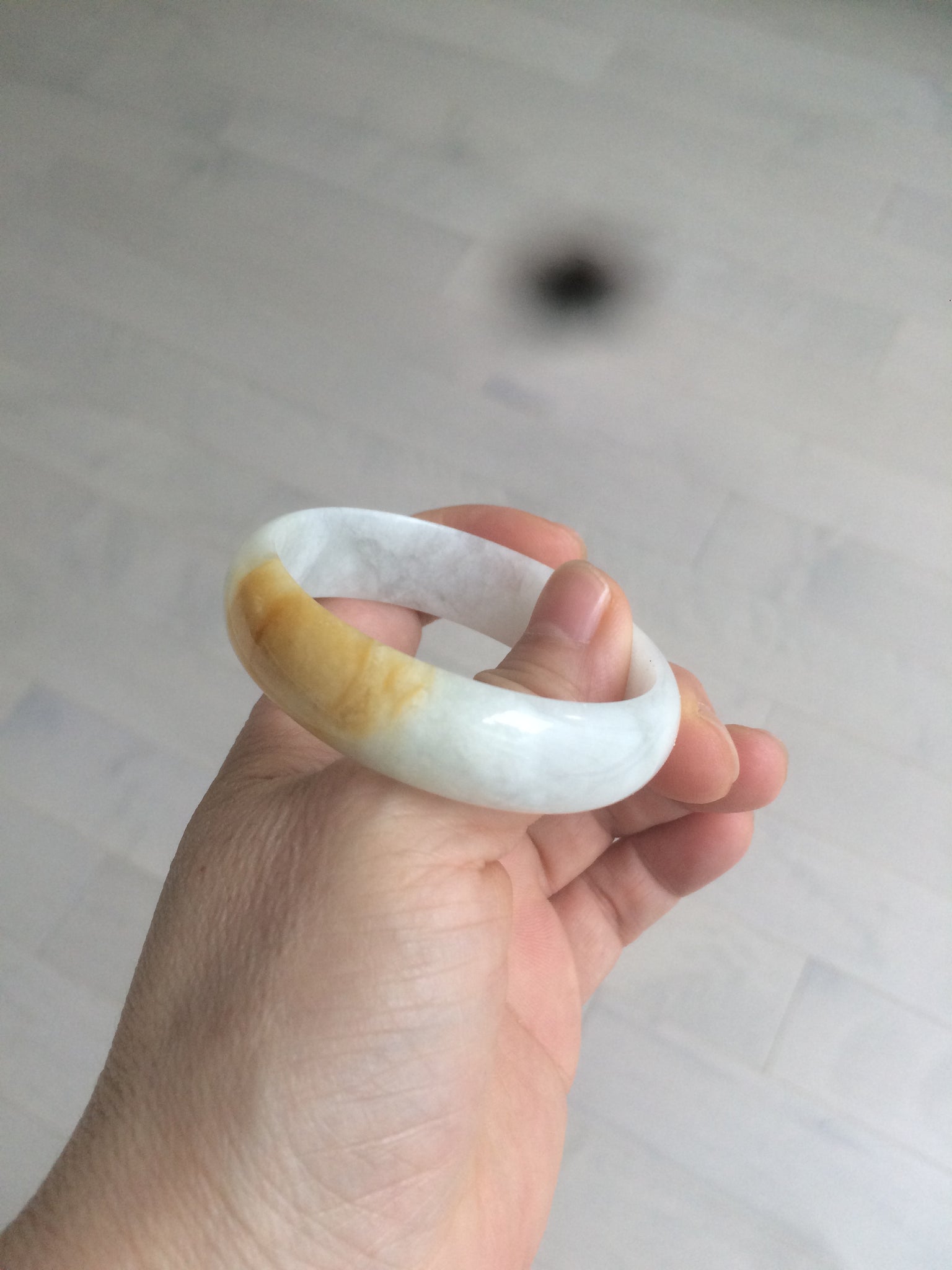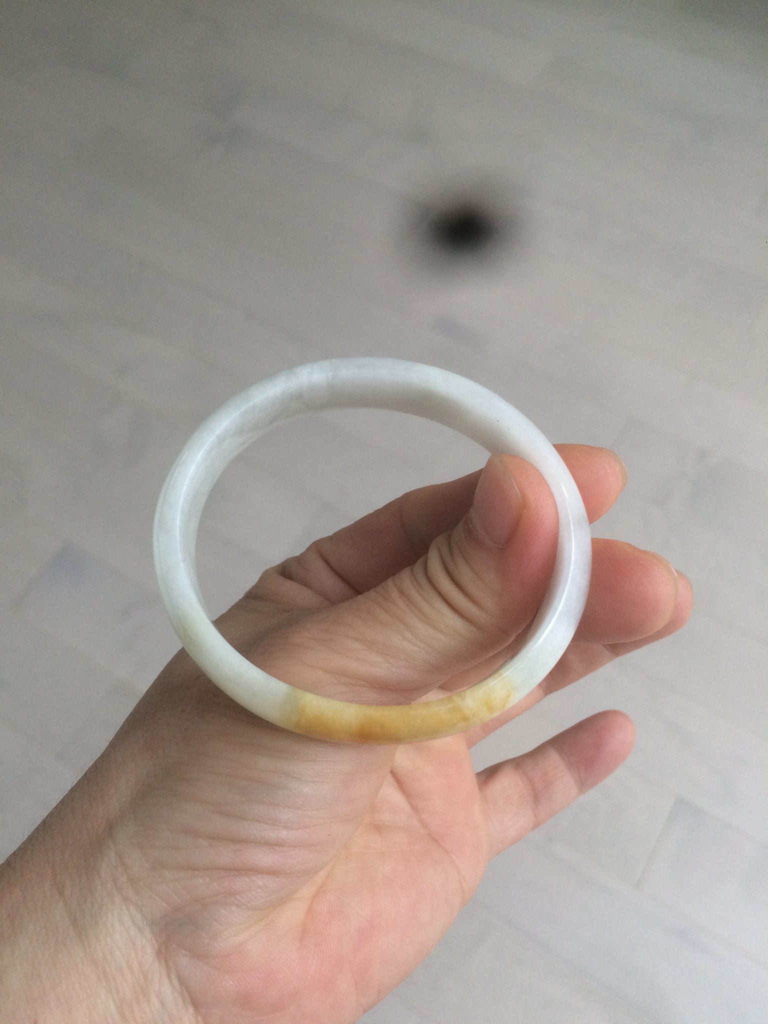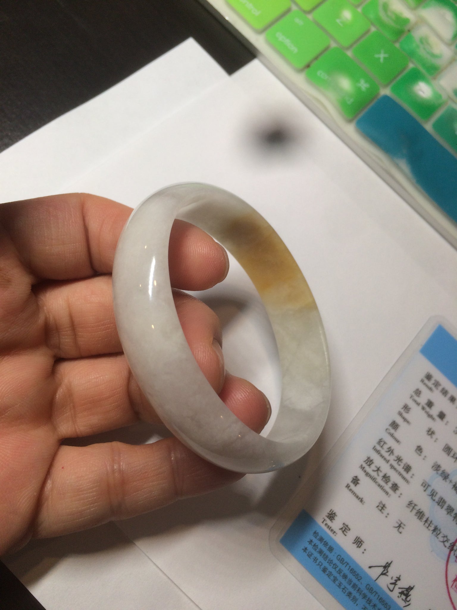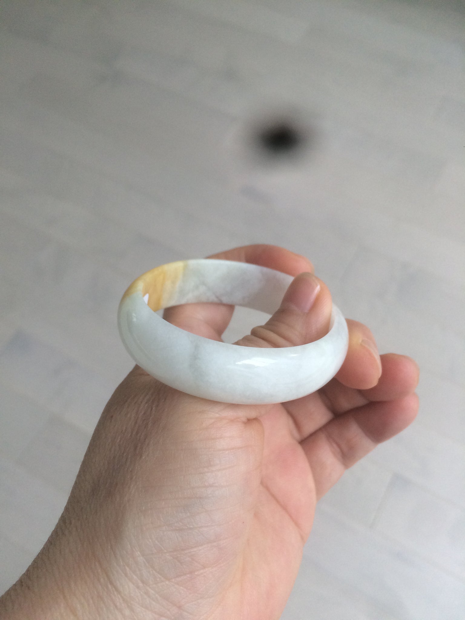 50mm Certified Type A 100% Natural yellow/white oval shape Jadeite Jade bangle AY16-0762