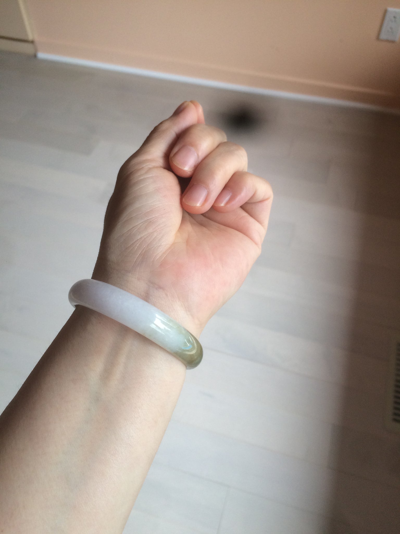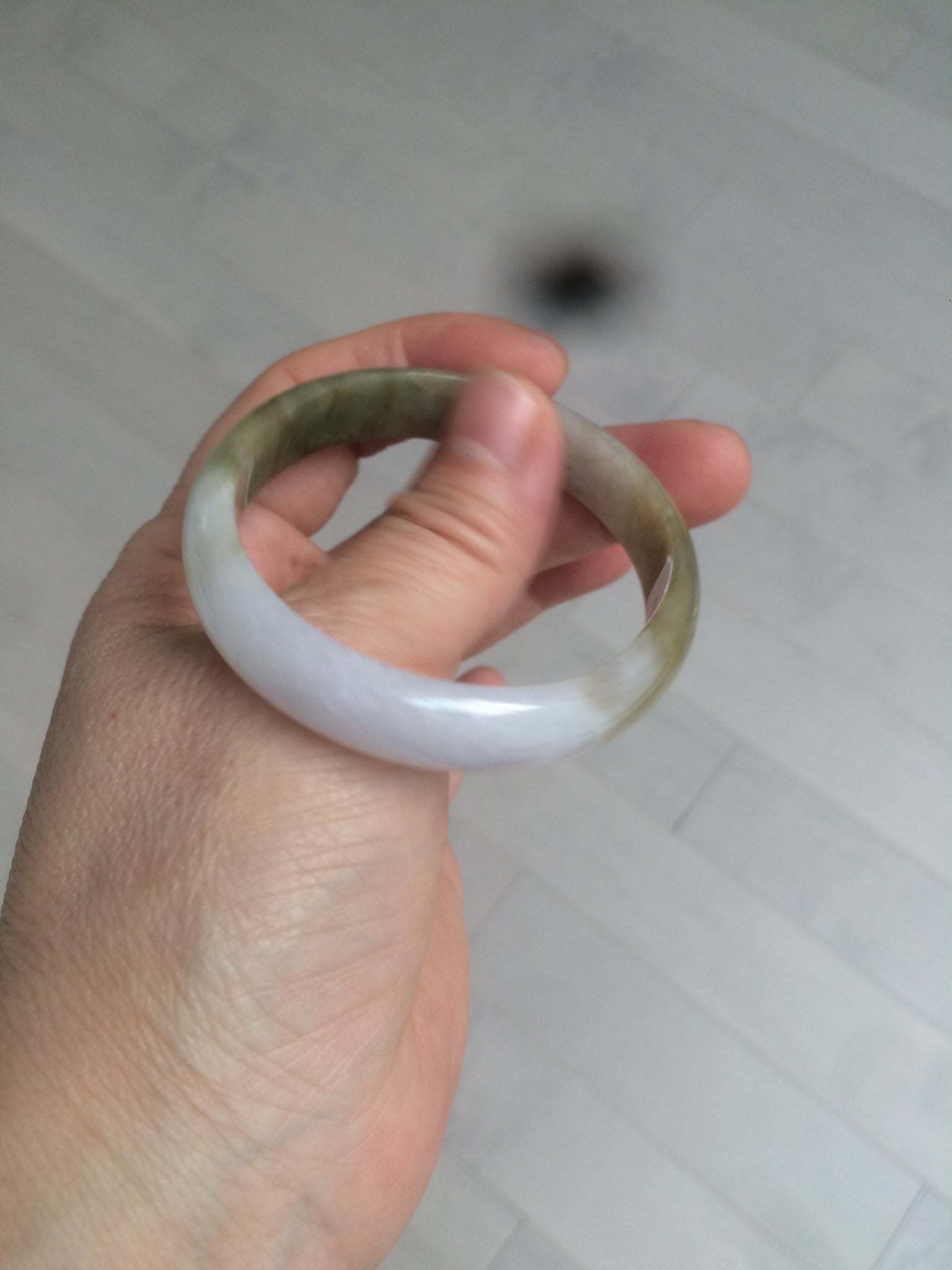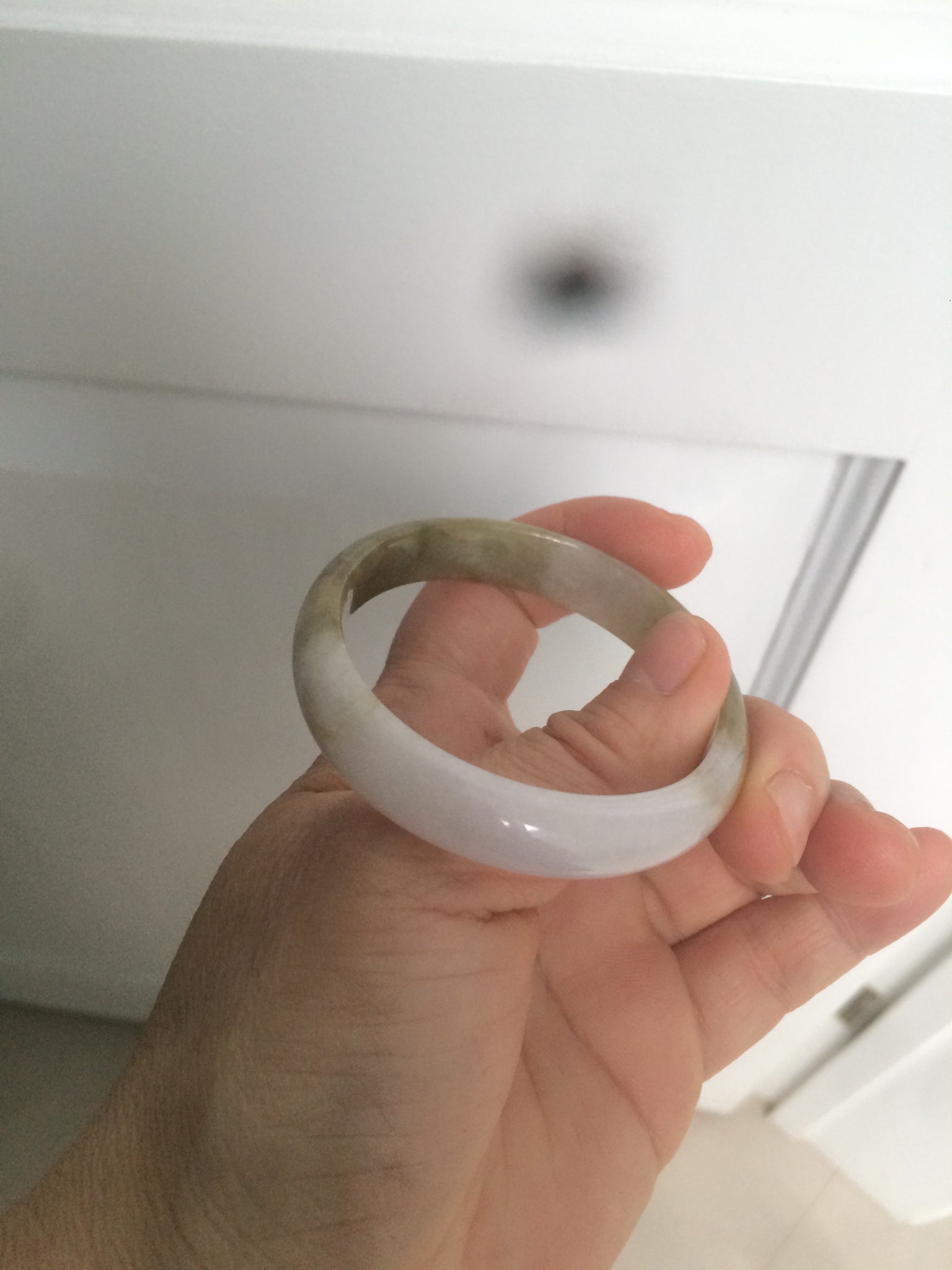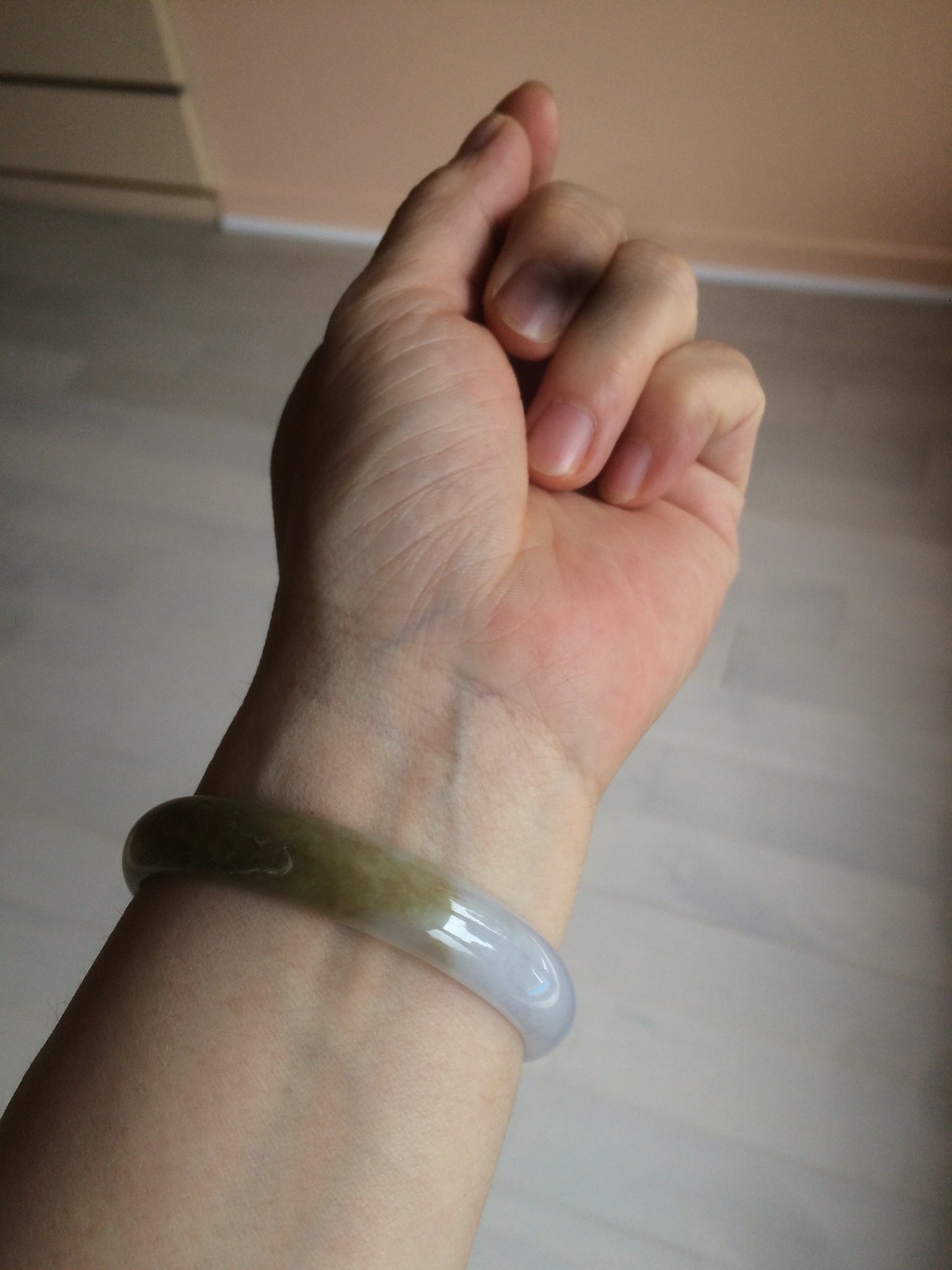 Two color root cracks. One is almost around the bangle. The bangle is still solid.  One brown/black area. Cotton lines and hairlines. Cotton spots. Black spots and cotton spots.