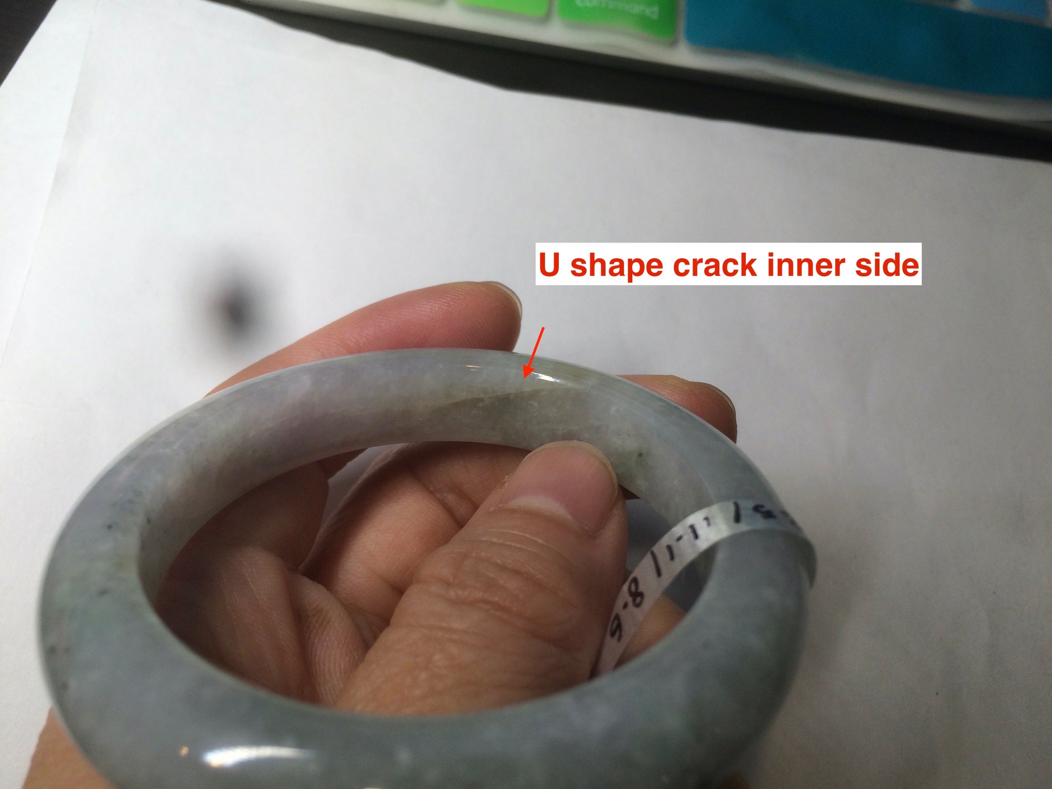 2 cracks. One surface scratch. One Cotton line. Quite a lot of cotton spots. Some dark green/black spots. The purple is super light. Lighter than in photos.