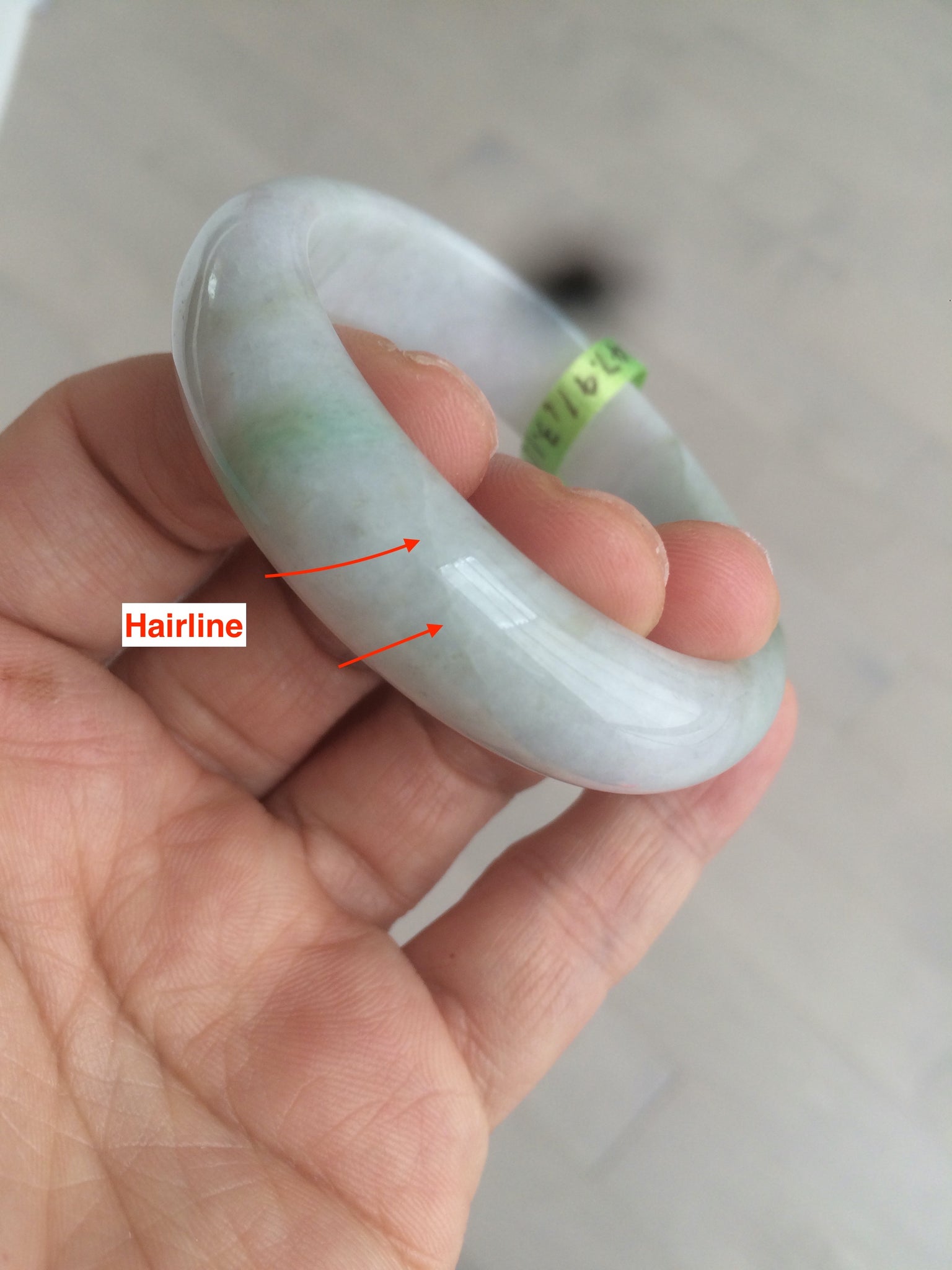 One cracks. Quite a lot of hairlines(Photos and video can't show them all). Some cotton lines. The bangle still firm.