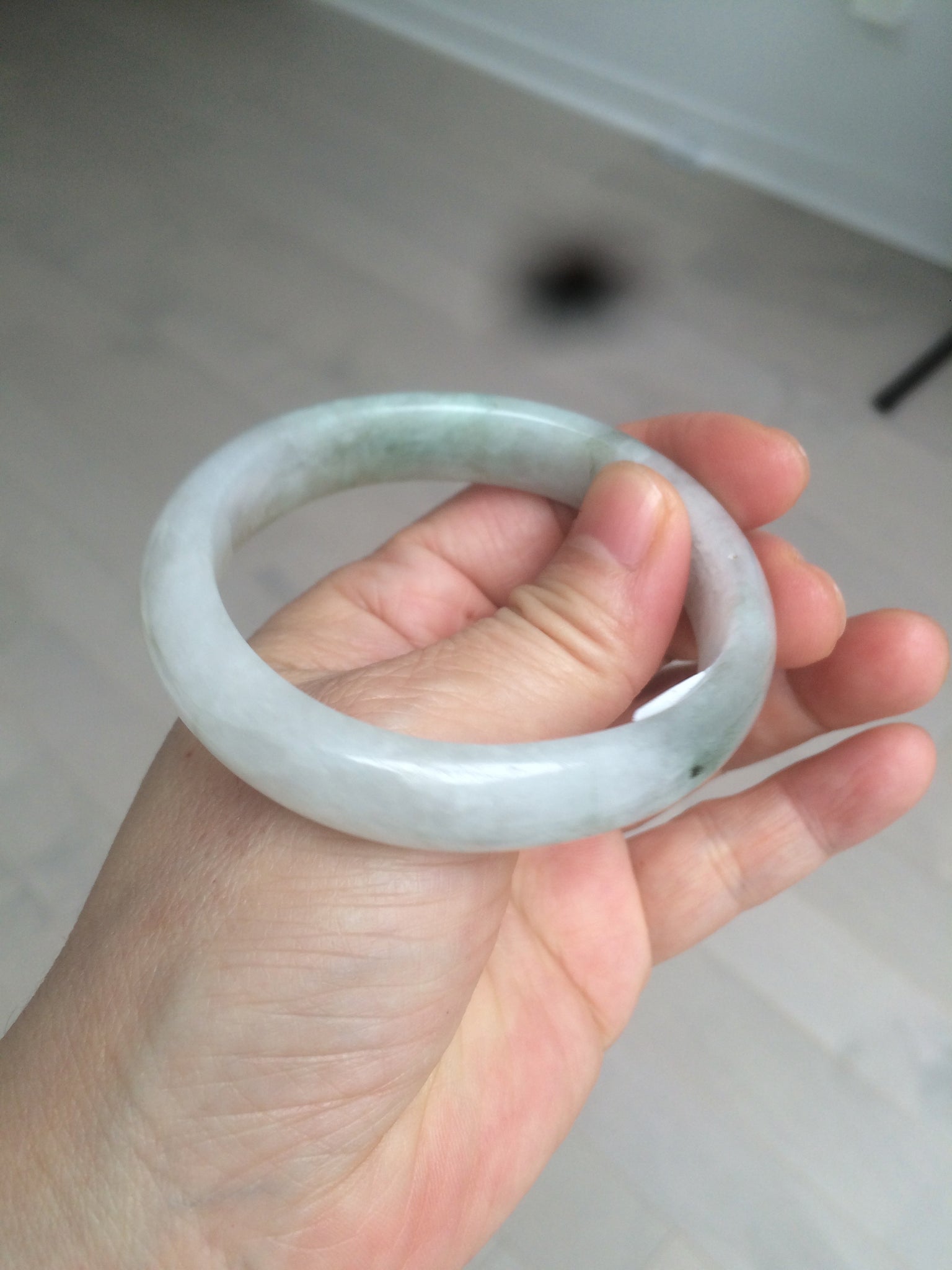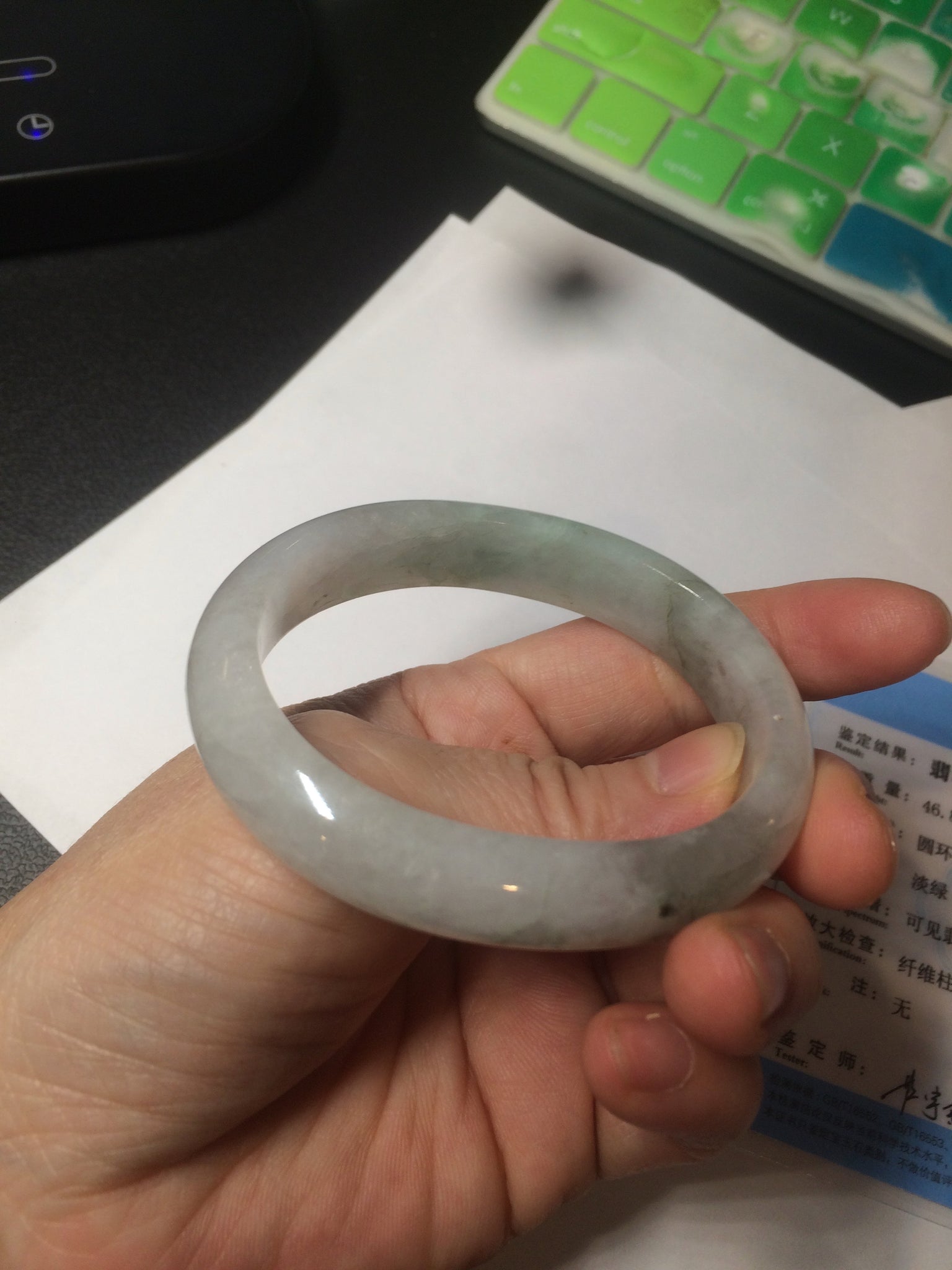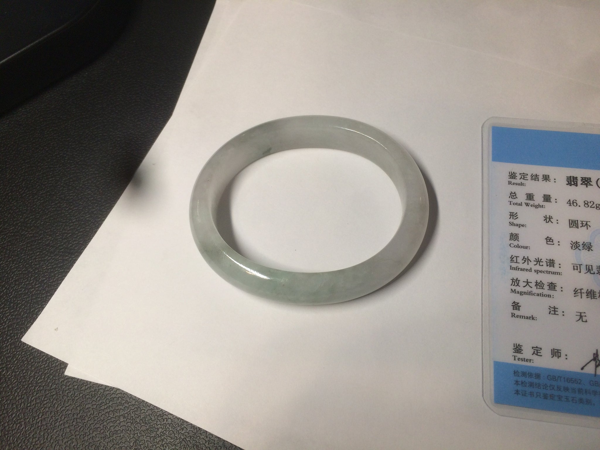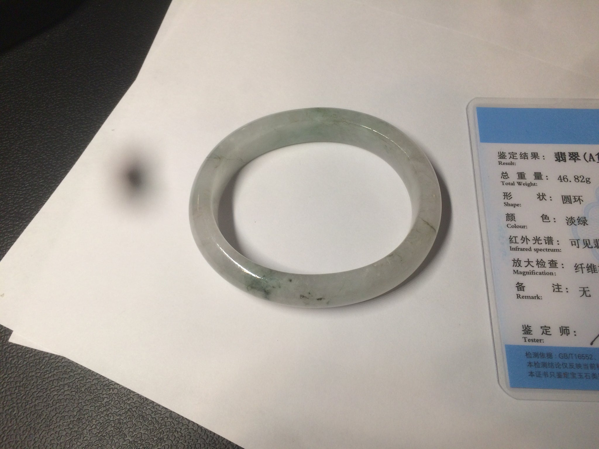 51.5mm certified 100% natural Type A light green/white oval jadeite jade bangle AZ124-2782