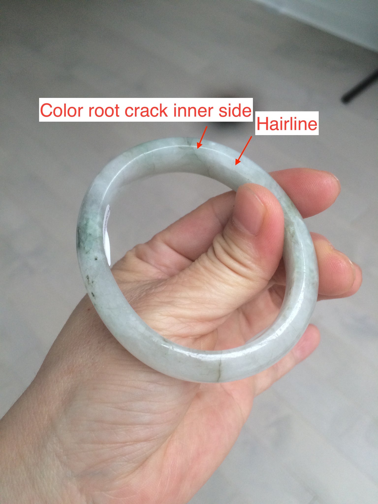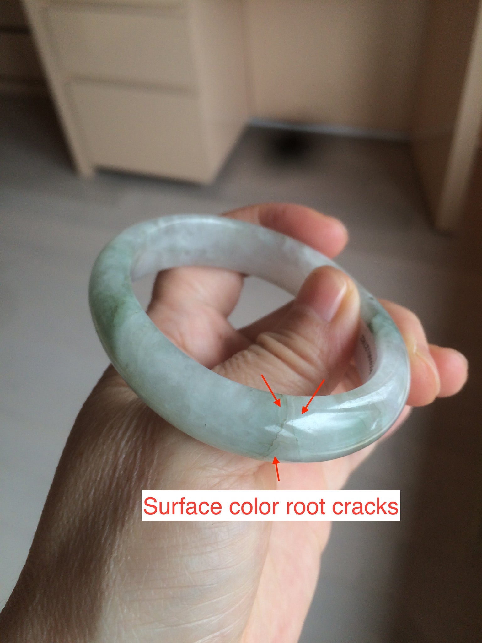 Flaws: Some color root cracks. Some hairlines, cotton lines, and cotton areas. Some mine pits. Some cotton areas and spots.