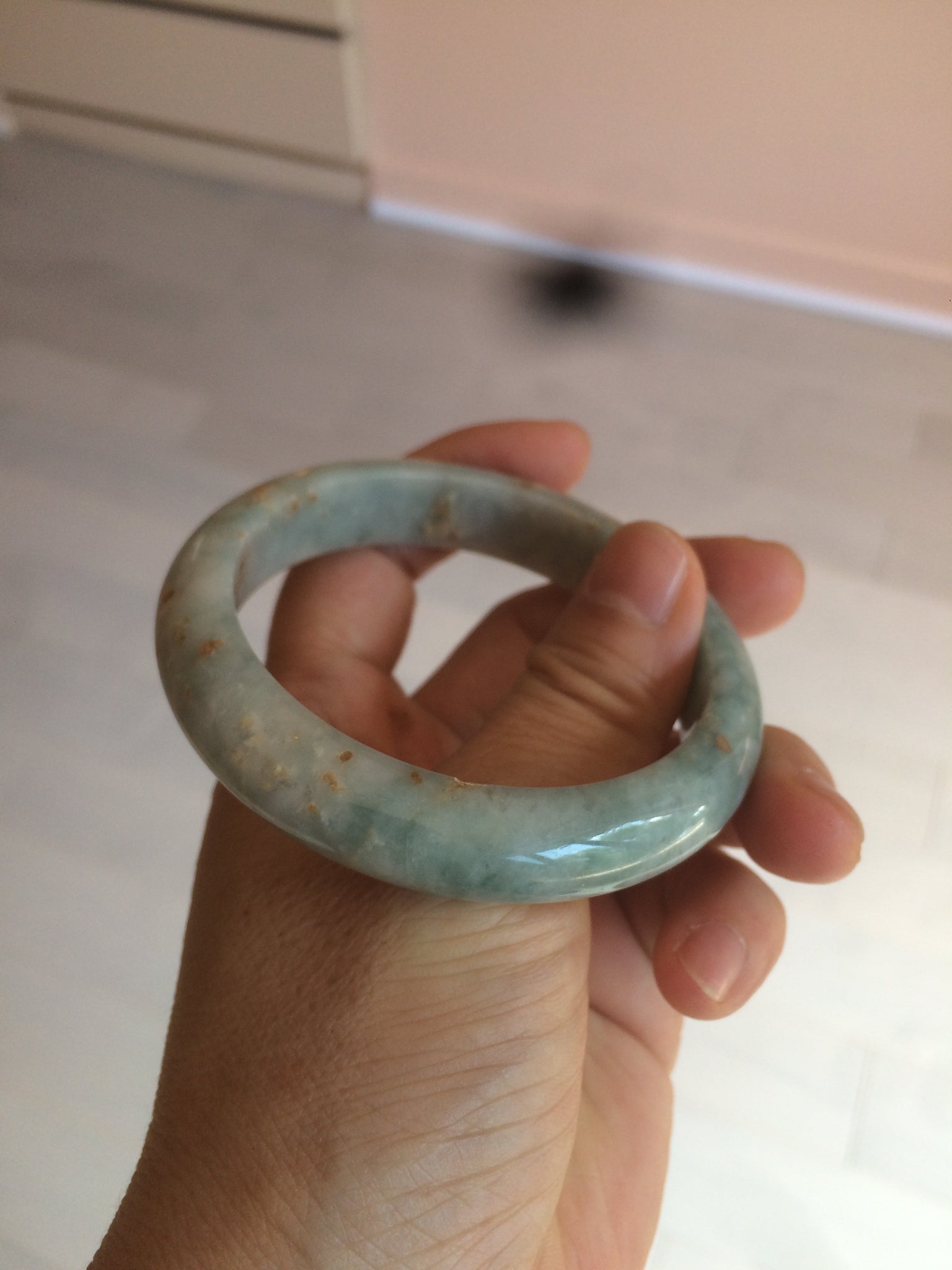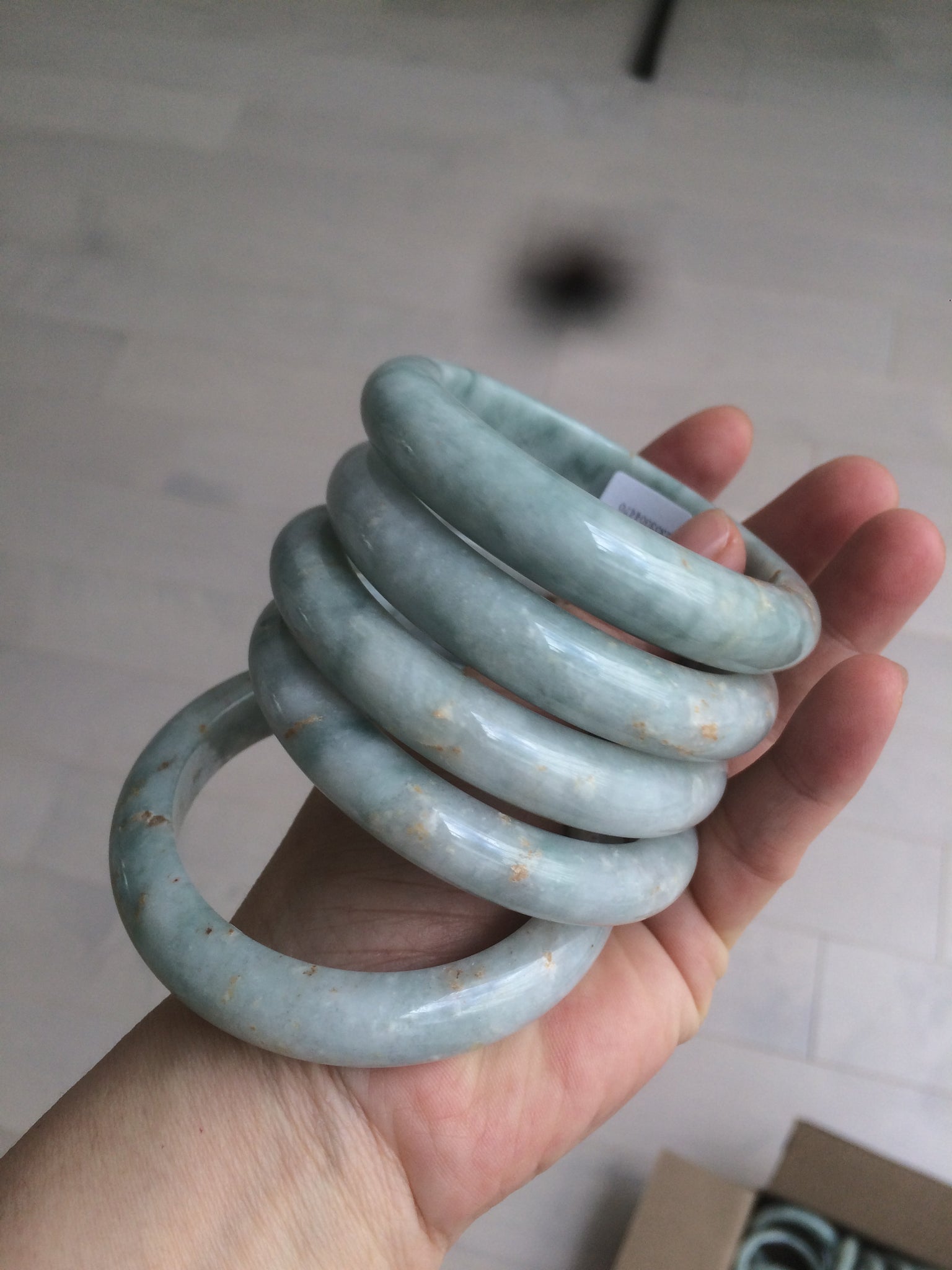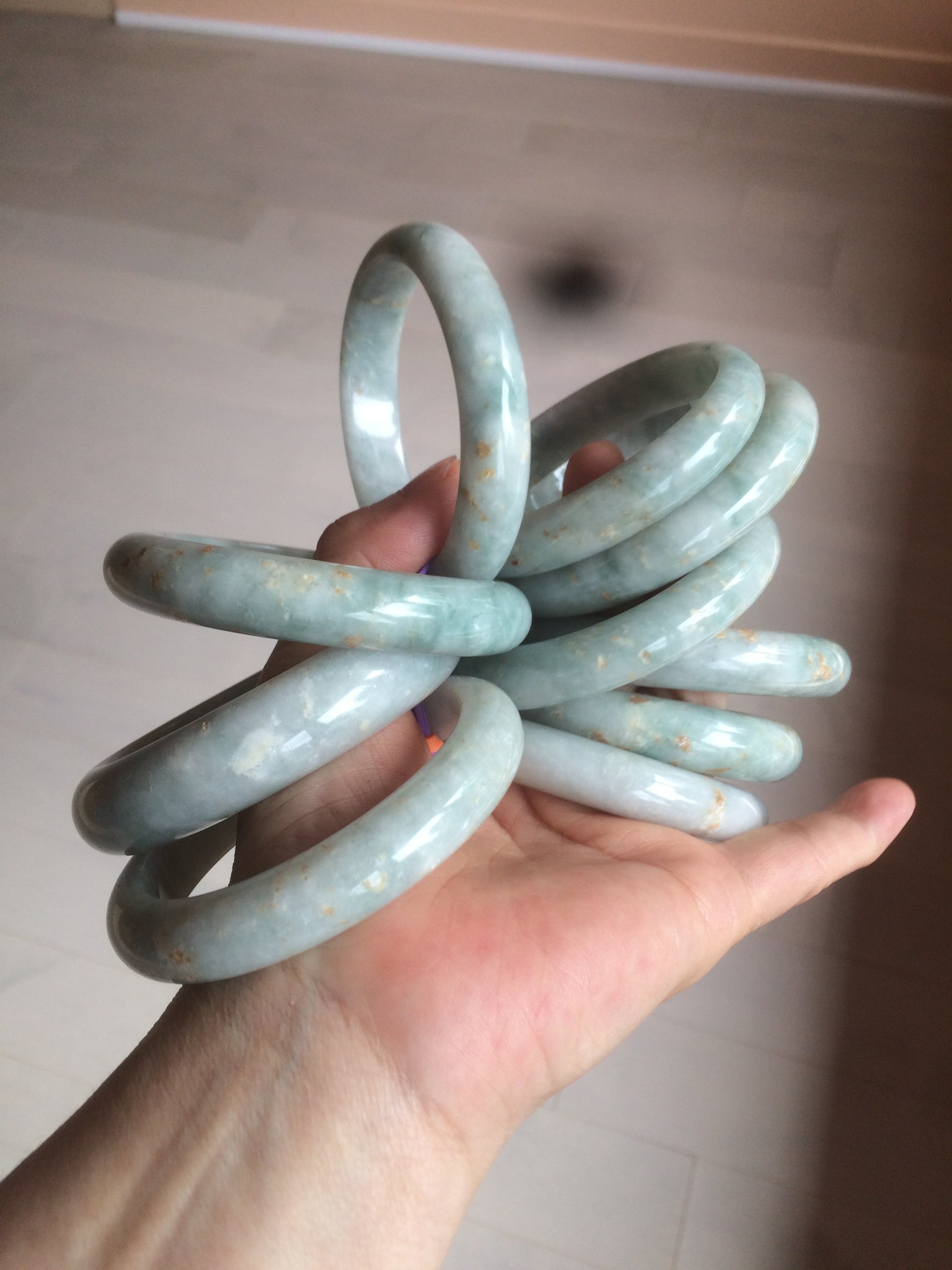 这批手镯都是一块石头开出来的,没有纹裂,就是有很多大小不一的红褐色氧化铁矿点,因为质地不同,所以有粗糙面,或者矿点掉了,有矿坑。抛光的时候因为用了有机腊,最后抛光平滑面的腊抹掉了,在不平滑面或者坑里,有相对多的腊残留。这样的腊在手镯表面,是可以接受,能开A货证书的。我也特意因此降价很多了,如果不喜欢腊,请不要买,谢谢。