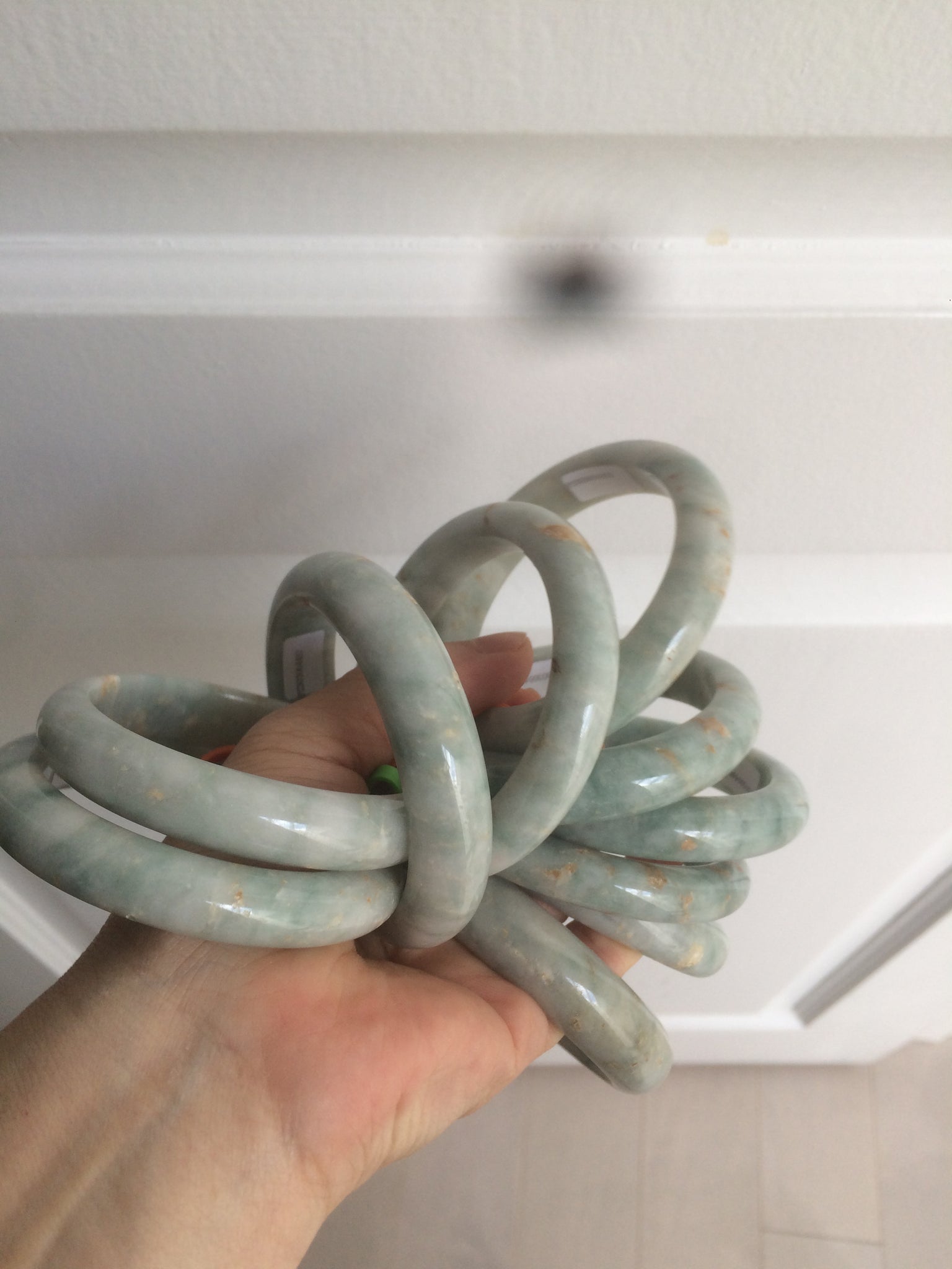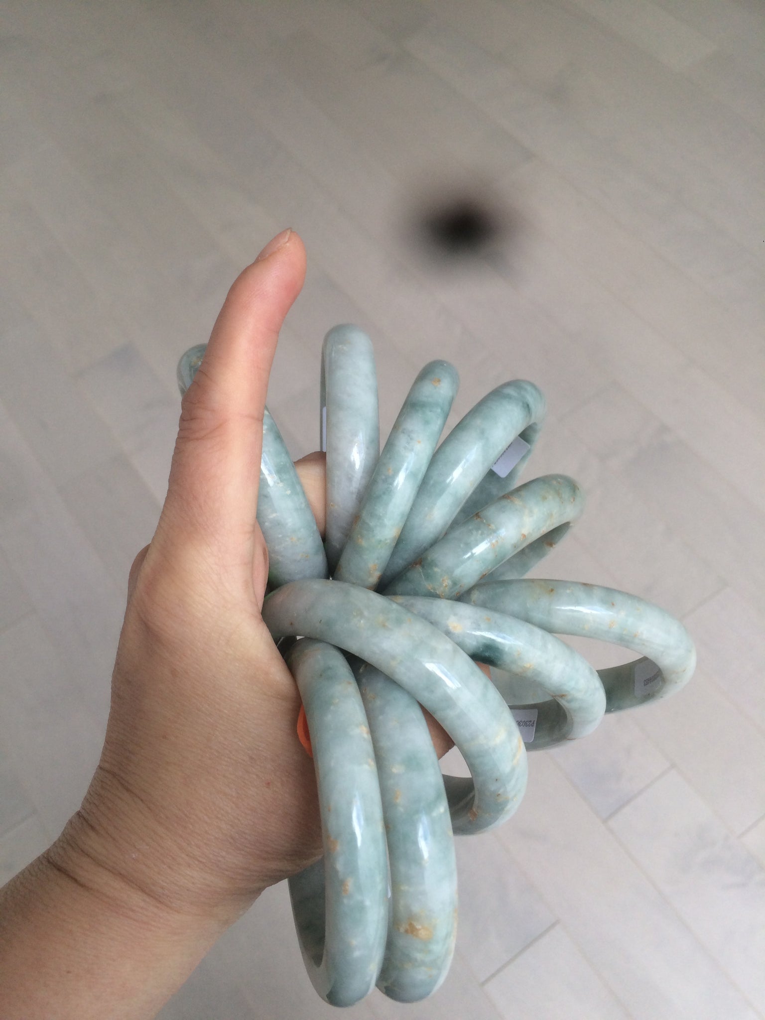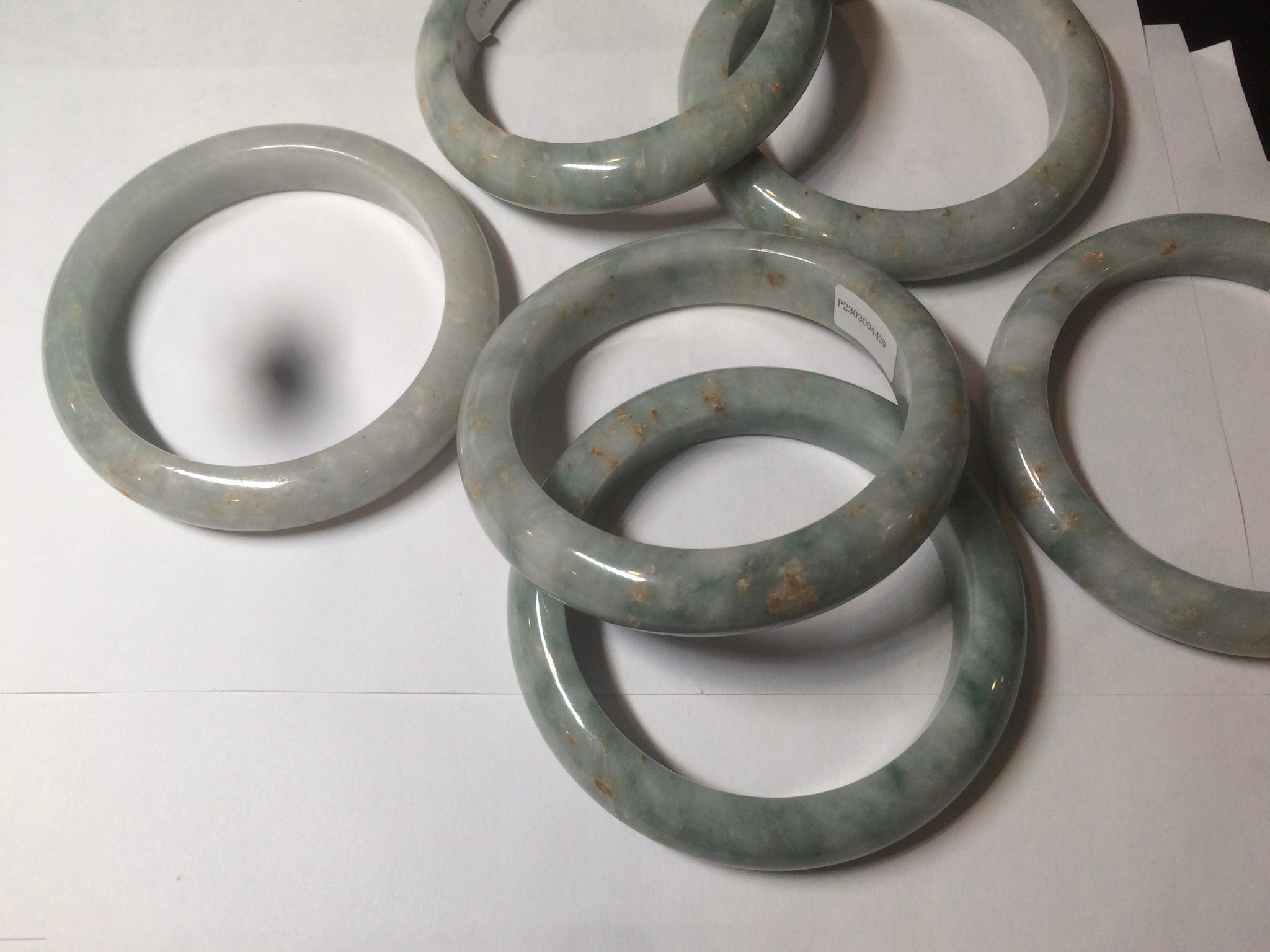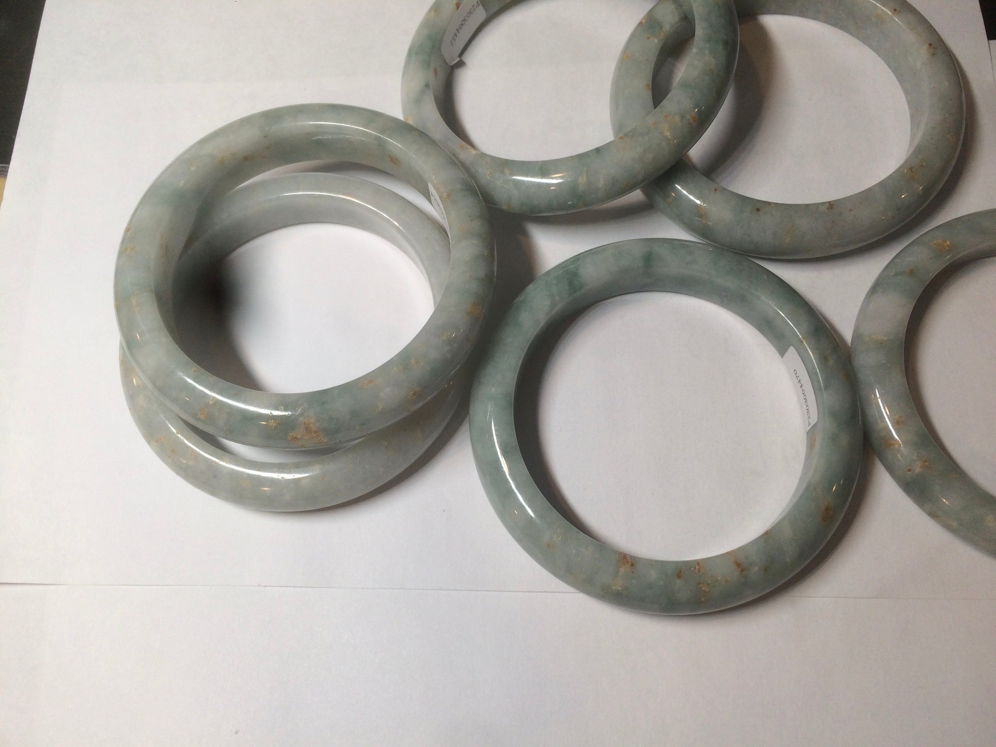 All have quite a lot of brown/yellow rough surfaces or mine pits due to the mineral difference. They can be bigger or smaller. All of them have medium amount of wax residue because the surfaces are not smooth or there are dents or pits. But all wax is just on the surface, not inside the bangles.